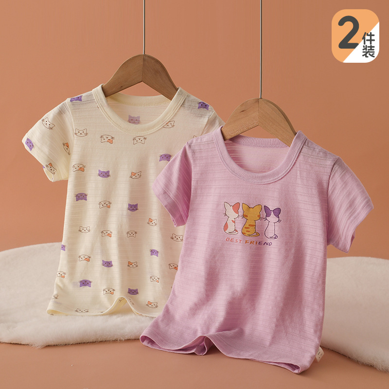 소년 소녀 반소매 티셔츠 코튼 여름 아기 반소매 탑 클래스 A 비형광베이스 셔츠 어린이 땀 흡수성 언더 셔츠스토어 가기