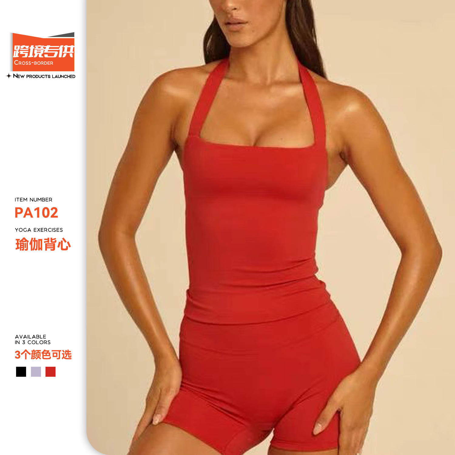 새로운 크로스-국경 섹시한 목 뷰티 백 요가 조끼 가슴 패드 스포츠 솔리드 컬러 섹시한 가슴 외관 착용 스포츠 여성