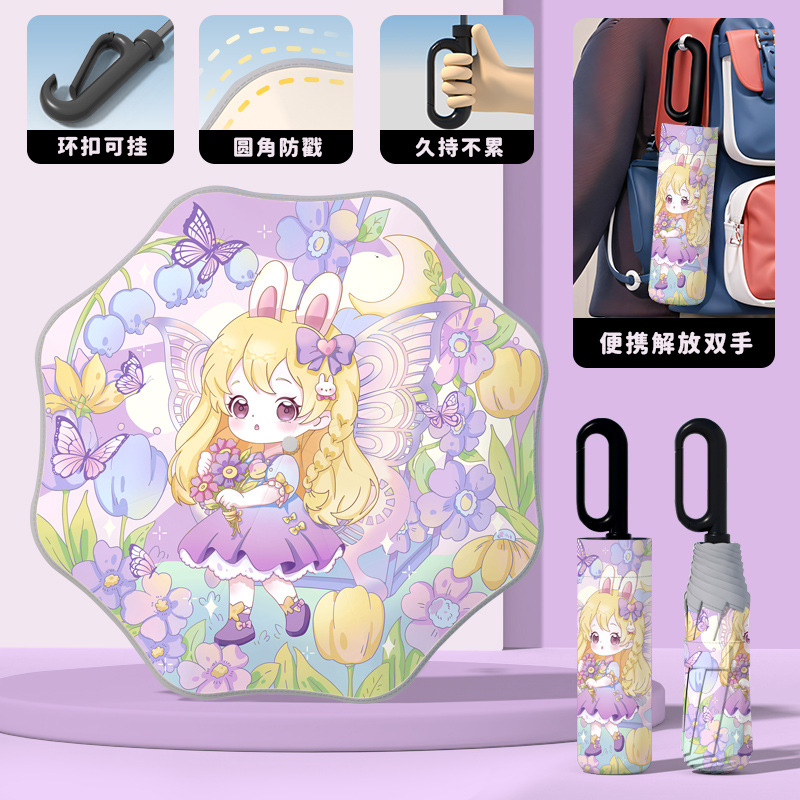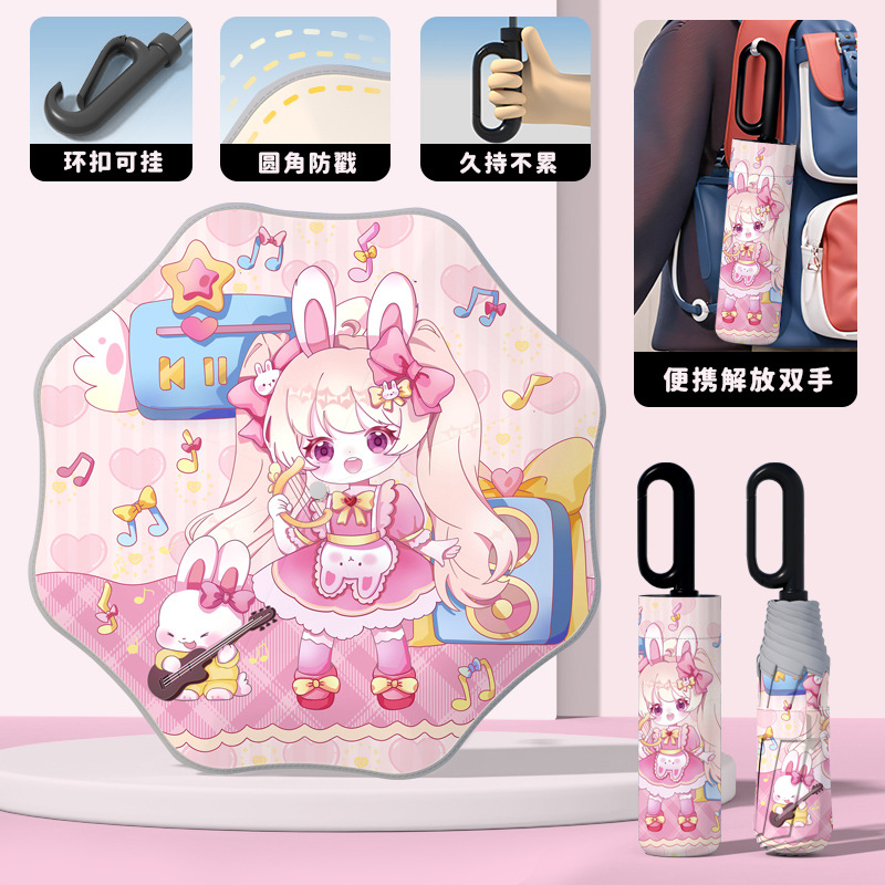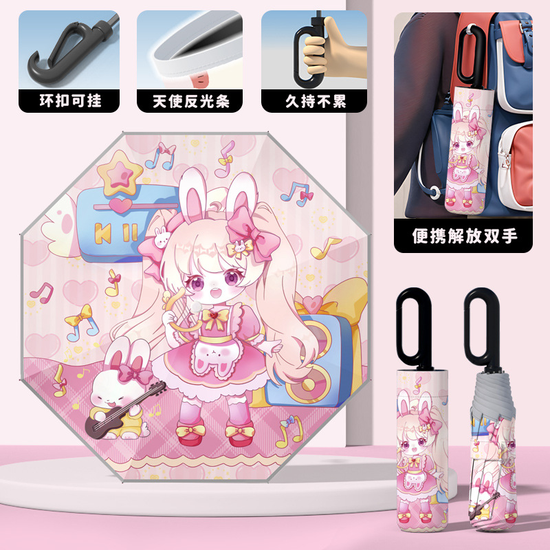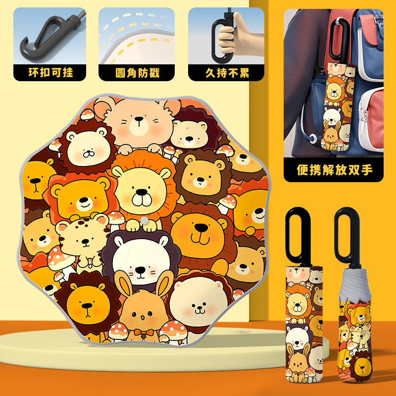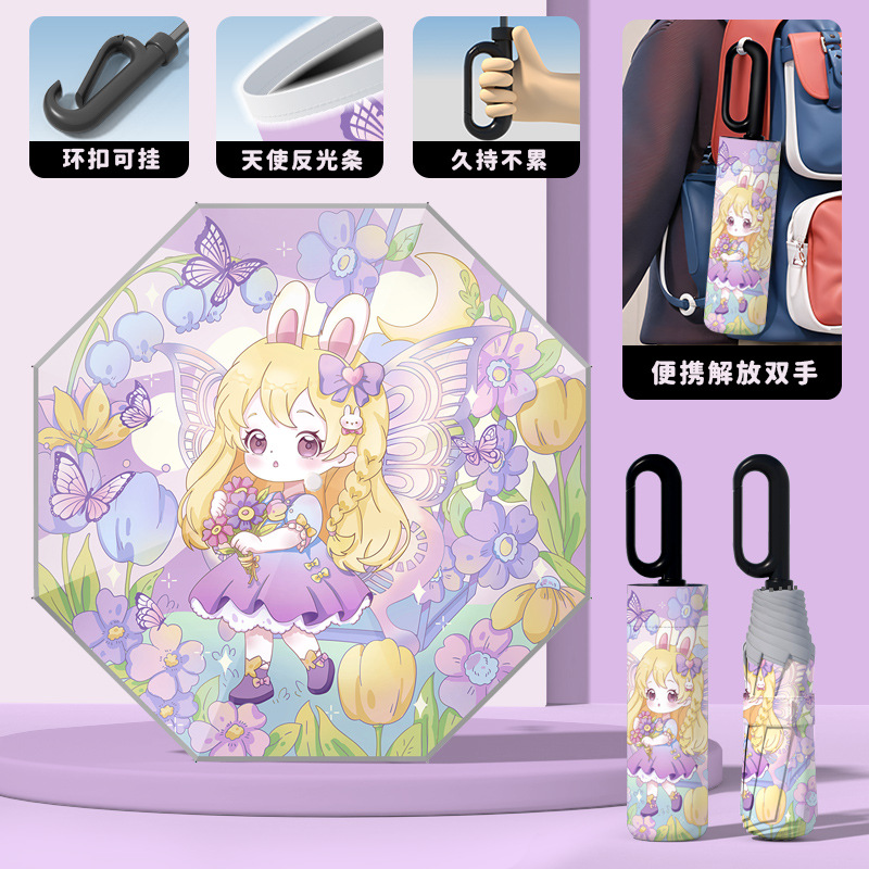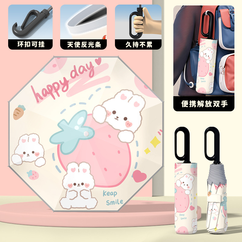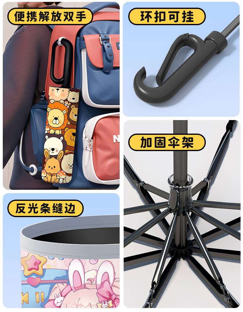 어린이 귀엽고 안전한 매뉴얼 남학생과 여학생 학교 휴대용 접이식 화창한 우산과 비오는 우산