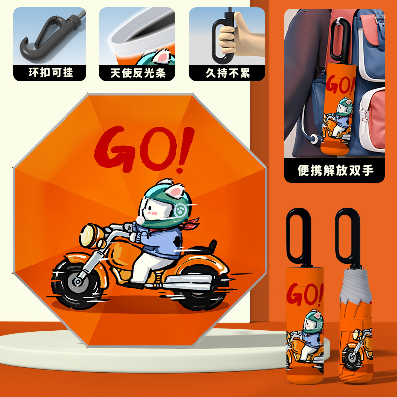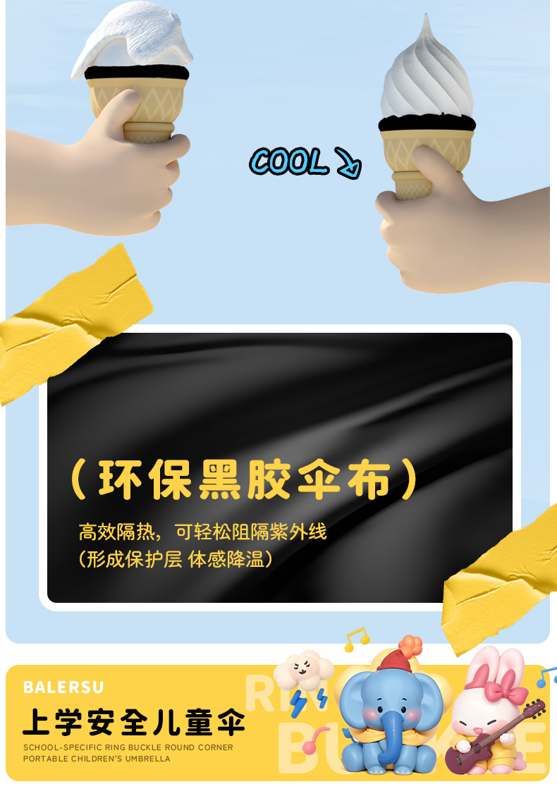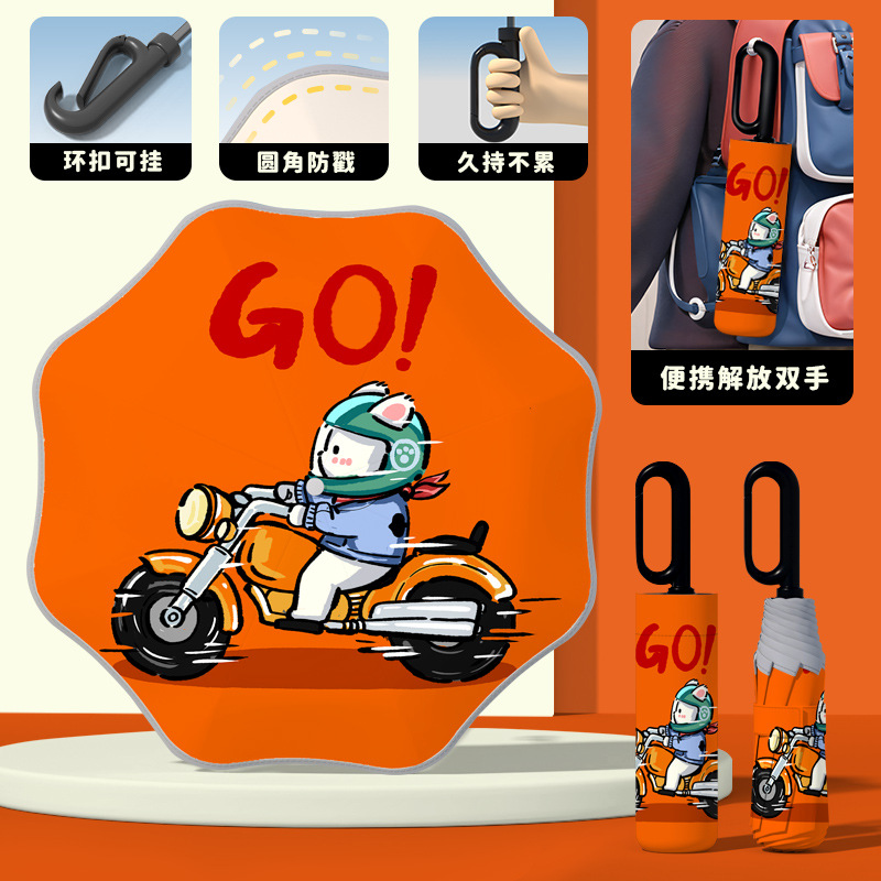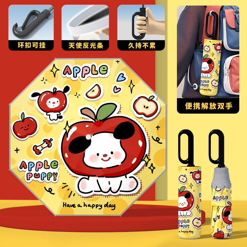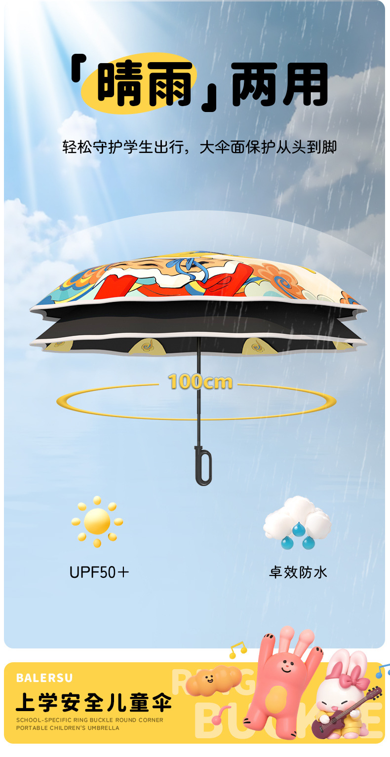 어린이 귀엽고 안전한 매뉴얼 남학생과 여학생 학교 휴대용 접이식 화창한 우산과 비오는 우산