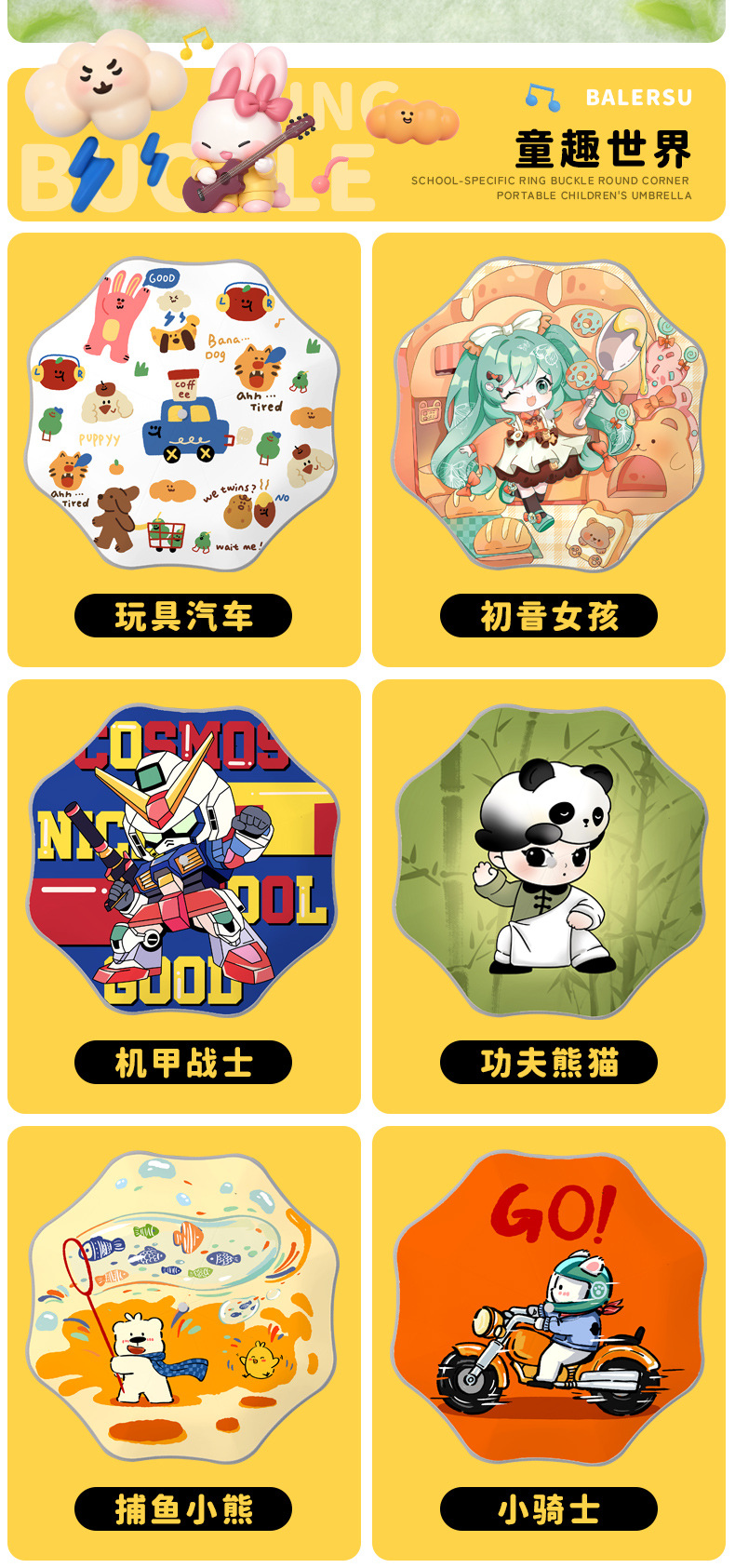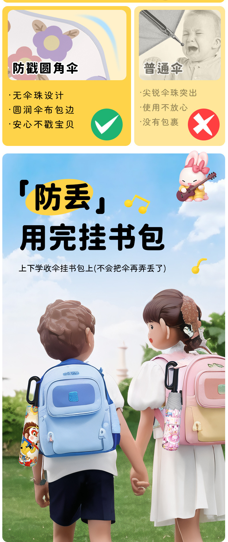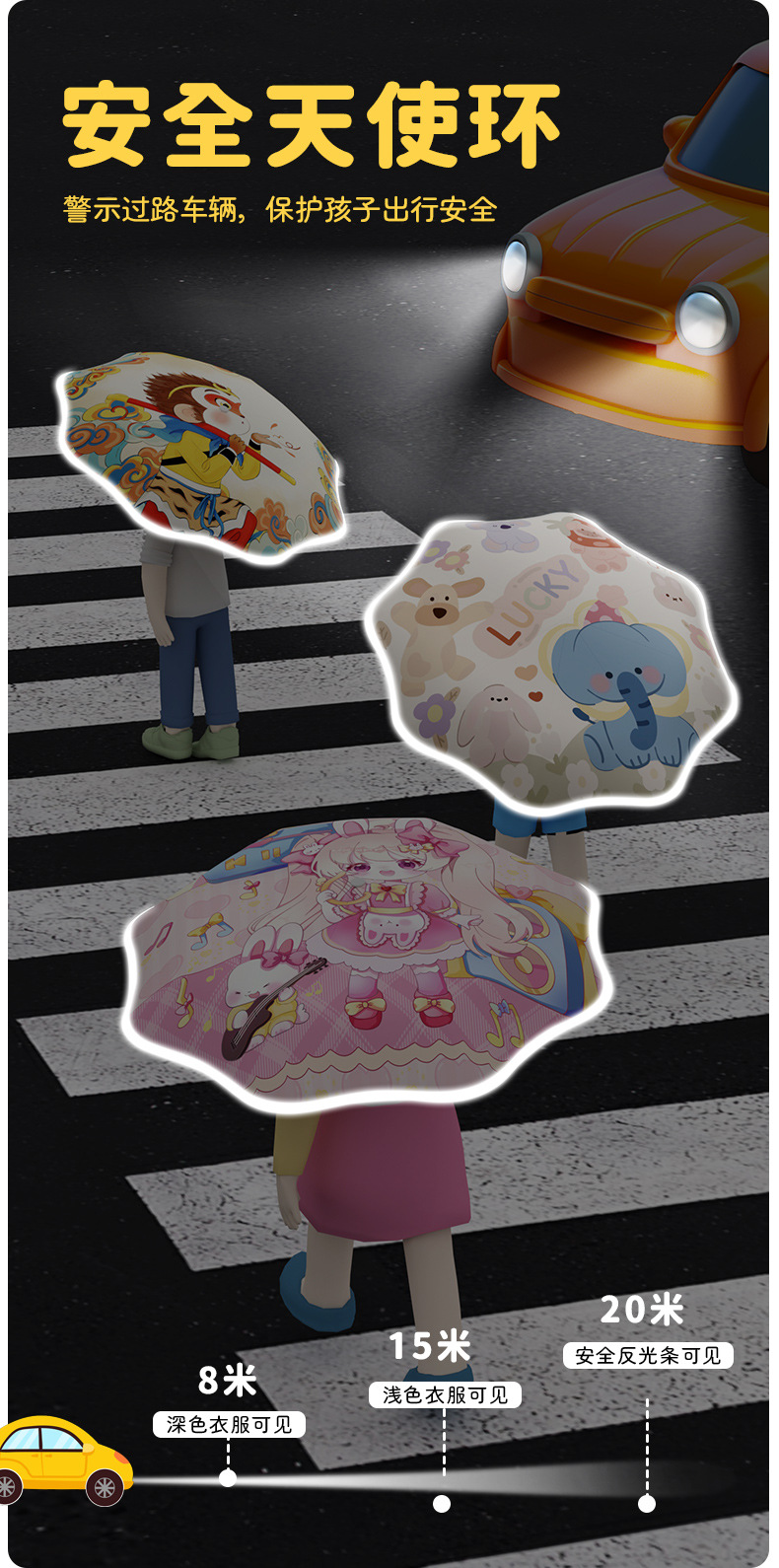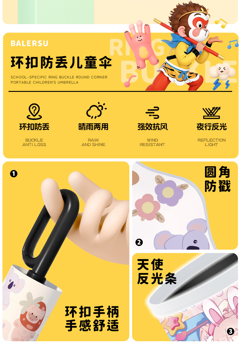 어린이 귀엽고 안전한 매뉴얼 남학생과 여학생 학교 휴대용 접이식 화창한 우산과 비오는 우산
