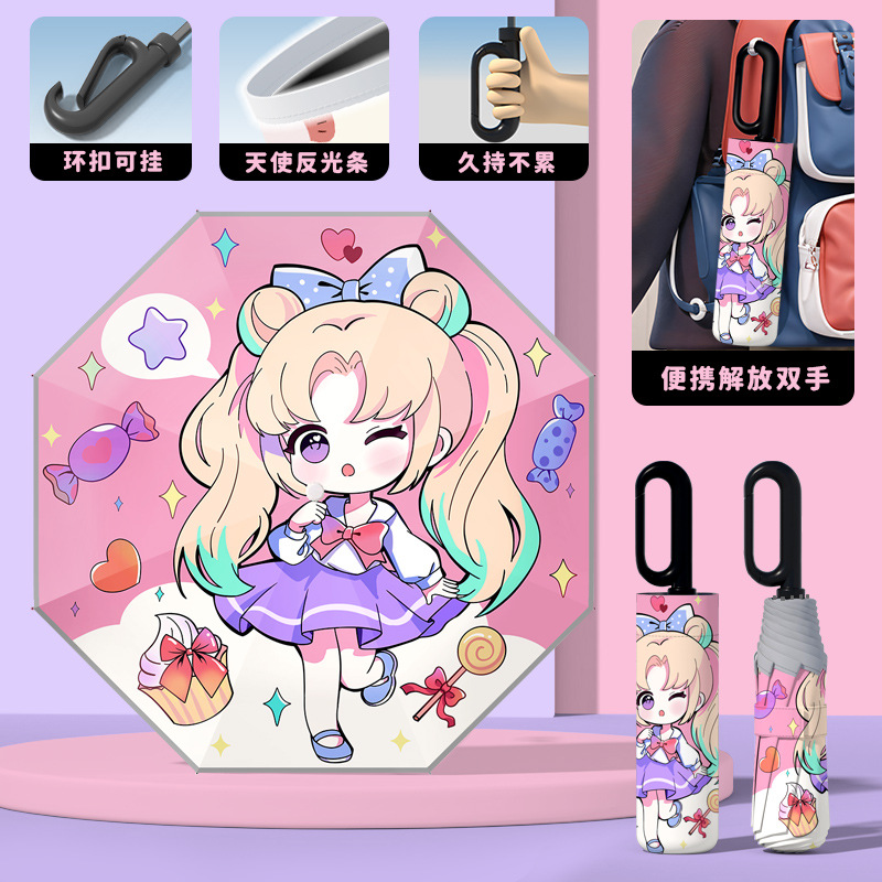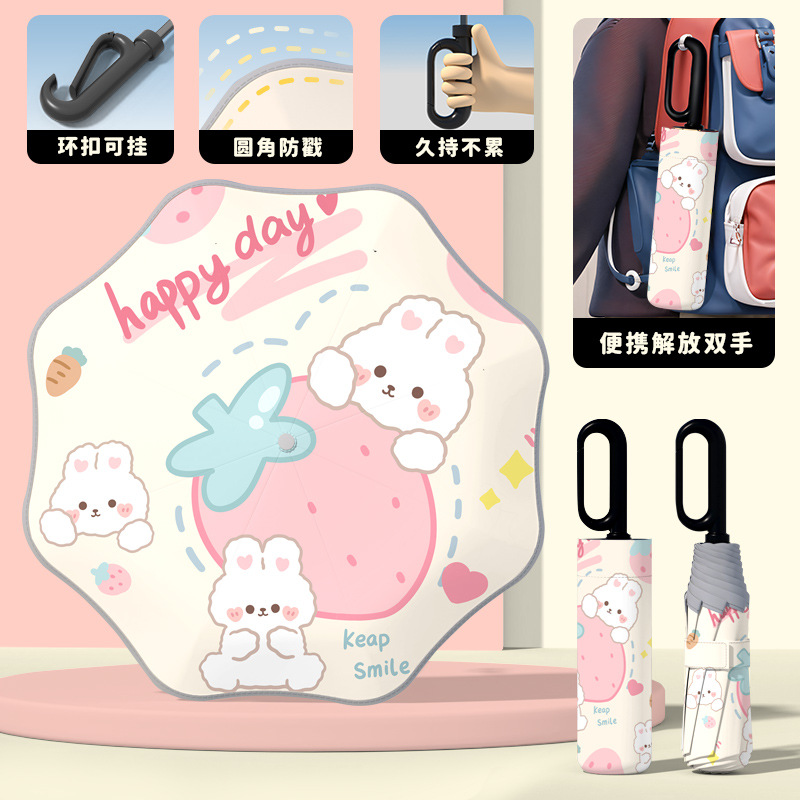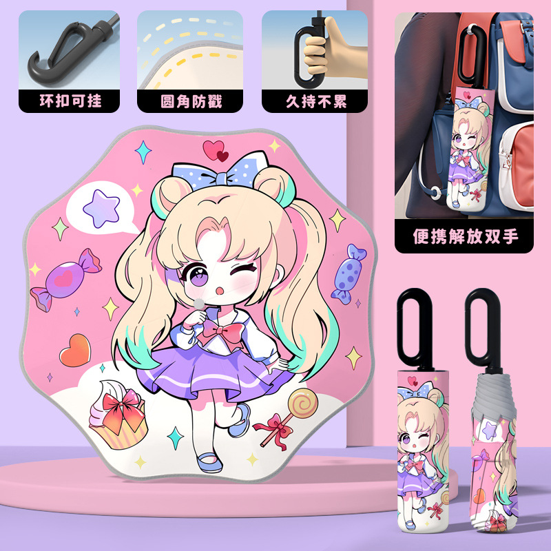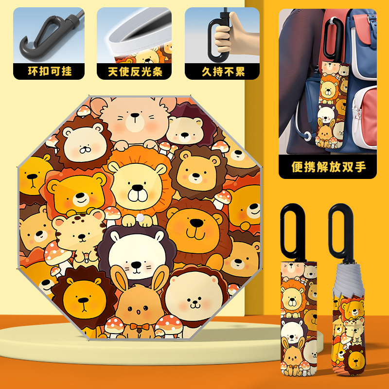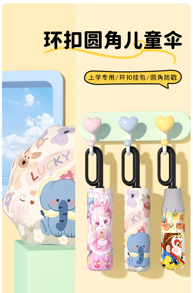 어린이 귀엽고 안전한 매뉴얼 남학생과 여학생 학교 휴대용 접이식 화창한 우산과 비오는 우산스토어 가기