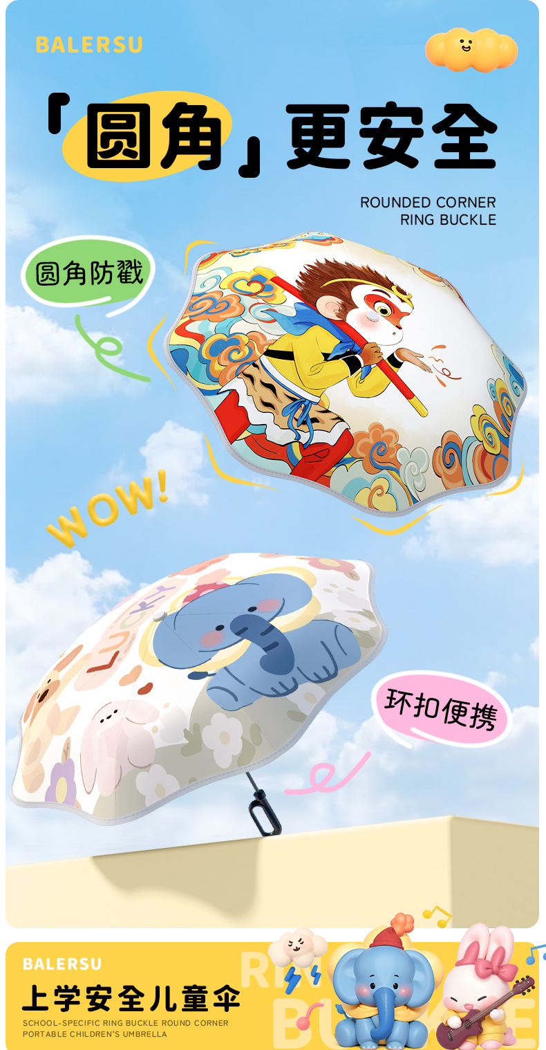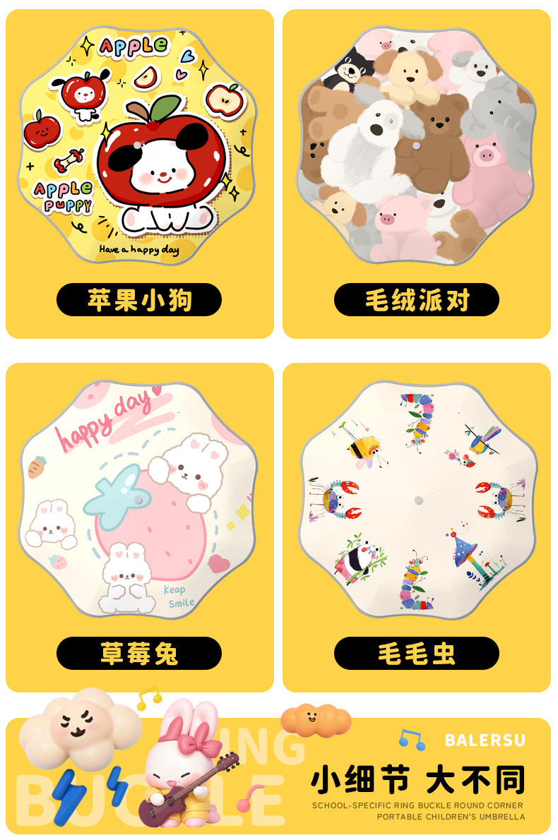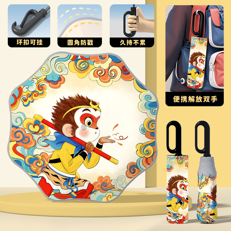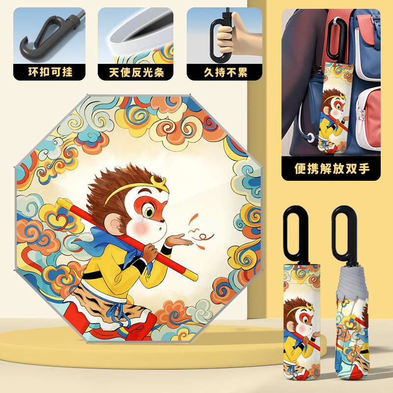 어린이 귀엽고 안전한 매뉴얼 남학생과 여학생 학교 휴대용 접이식 화창한 우산과 비오는 우산스토어 가기