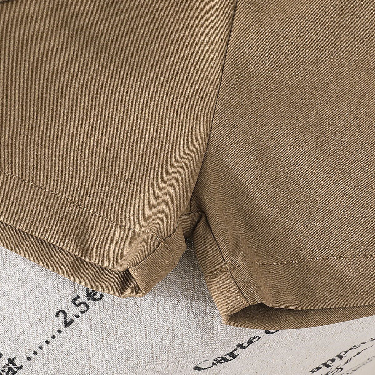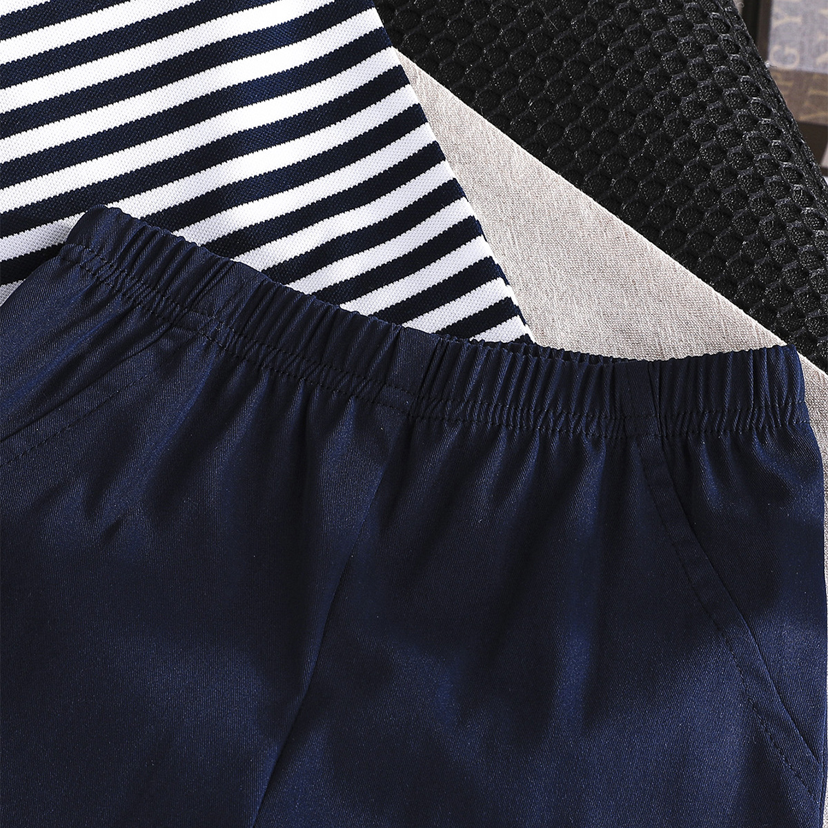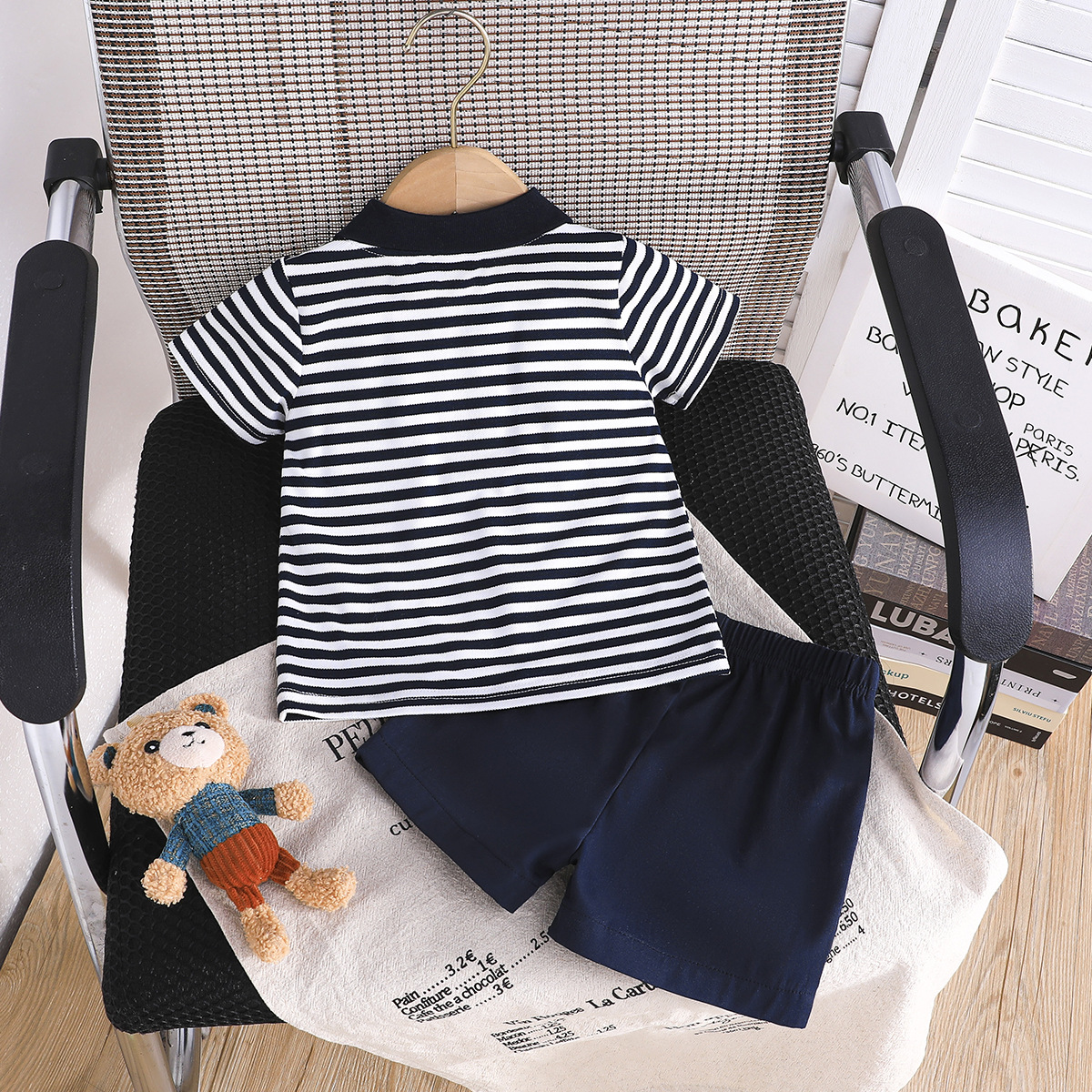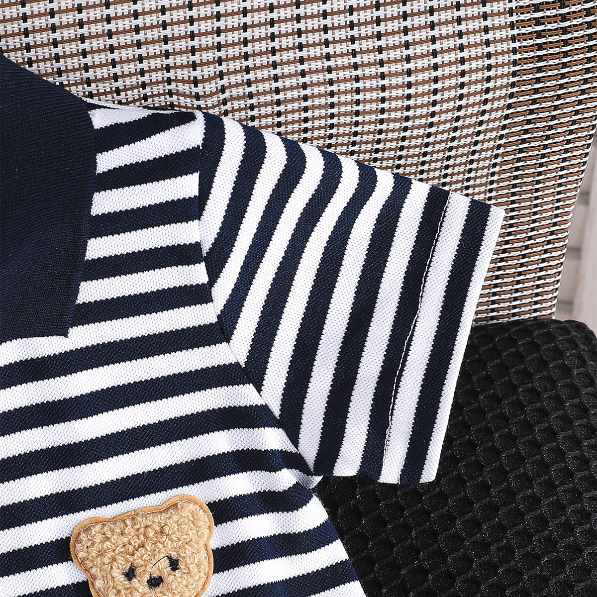 국경 2025 여름 간단한 패션 아기 남자의 새로운 곰 장지 줄무늬 랩 탑 반바지 세트