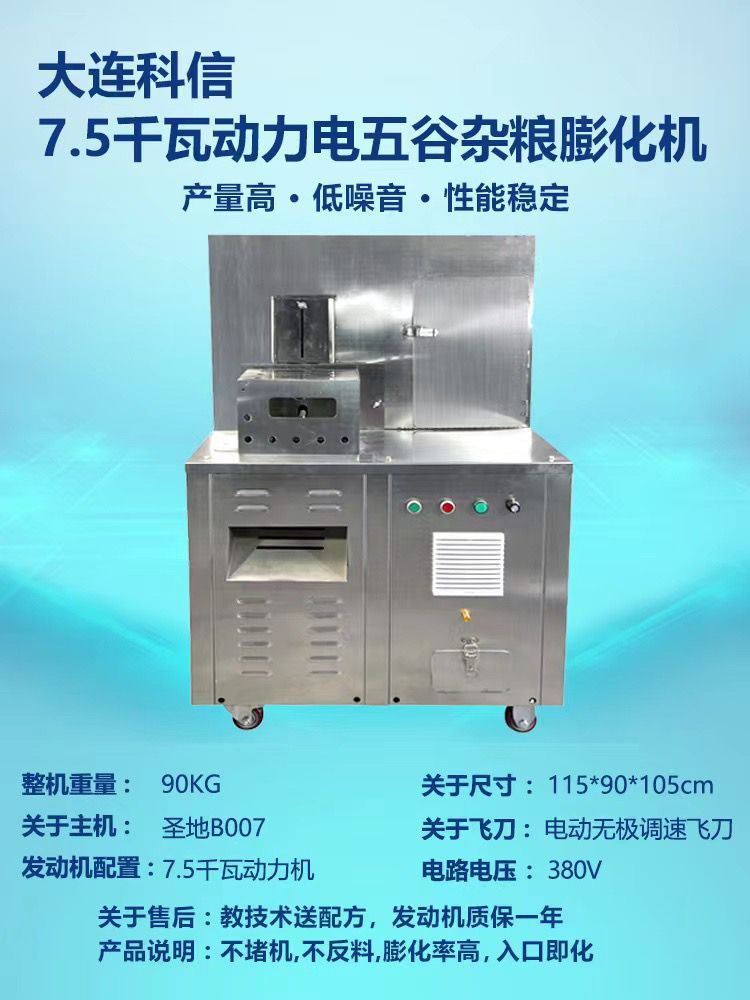 다롄 Kexin 다기능 7.5 kW 380V 전력 퍼핑 기계 콜레고 작은 팝콘 기계 상업
