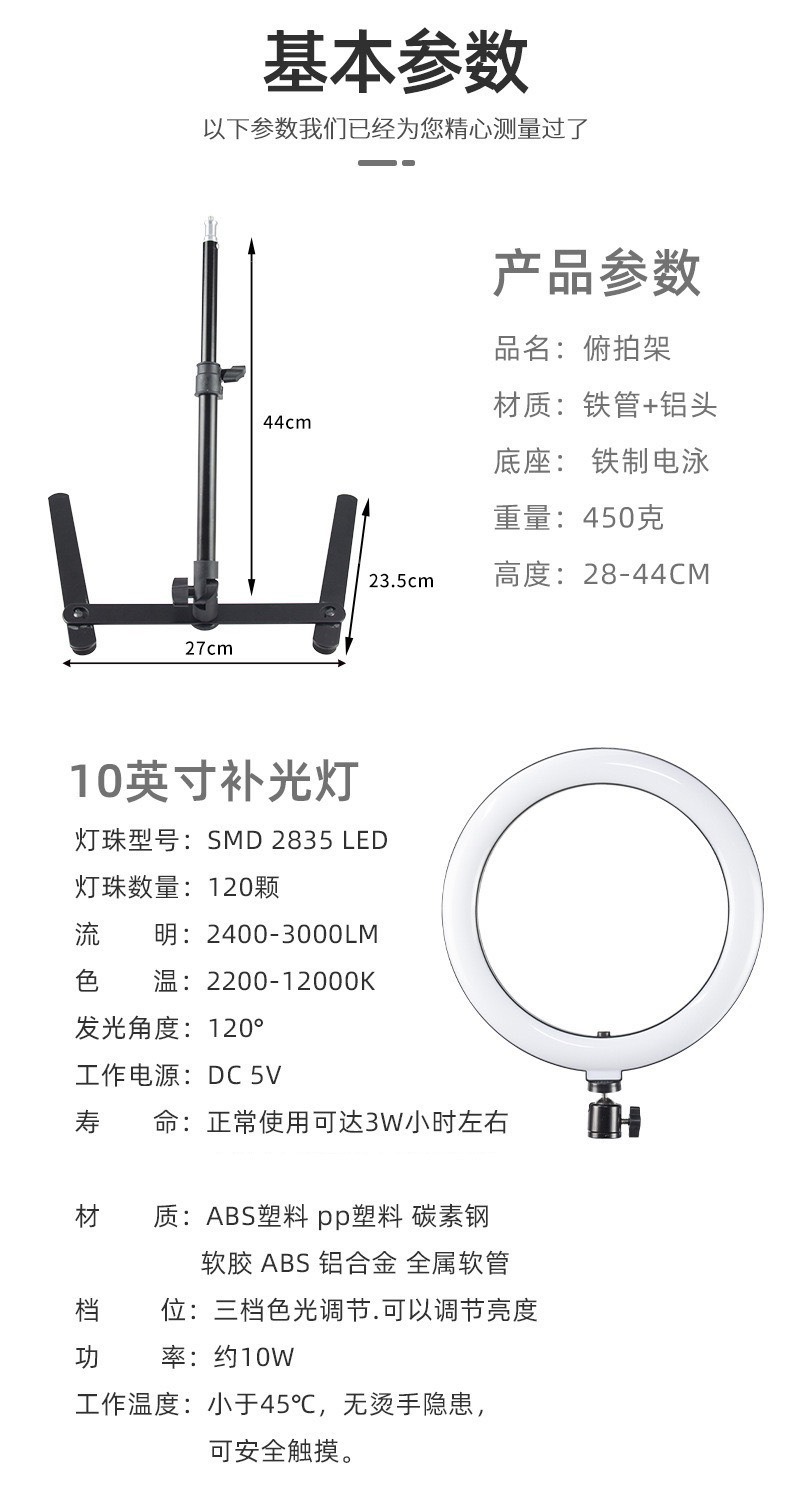 데스크탑 휴대폰 오버헤드 촬영 스탠드, 뷰티 촬영, 보석 및 의류 촬영, 보조광, 링 라이트, 조명 램프, 라이브 방송 스탠드