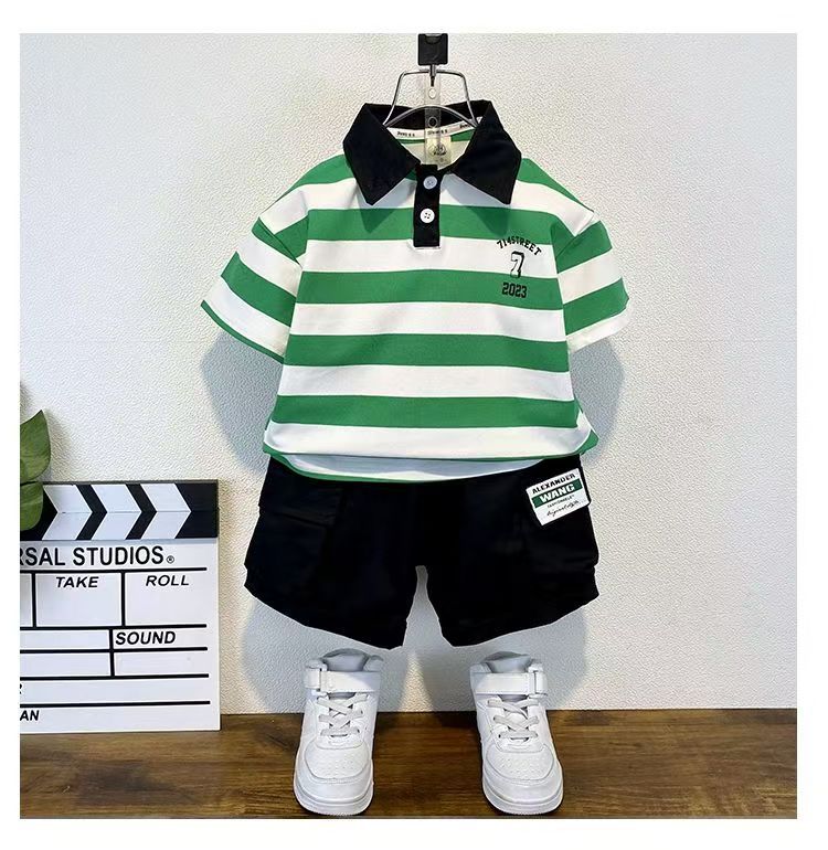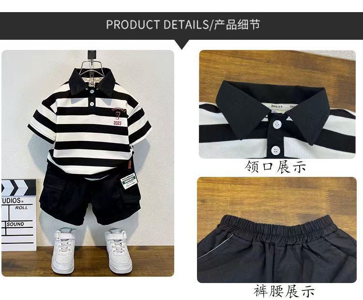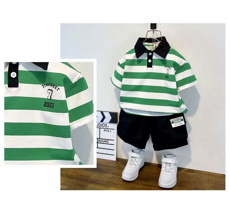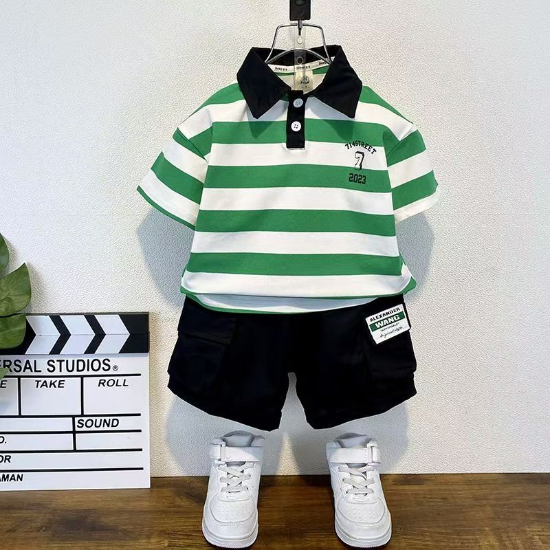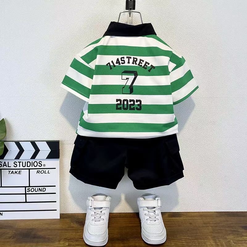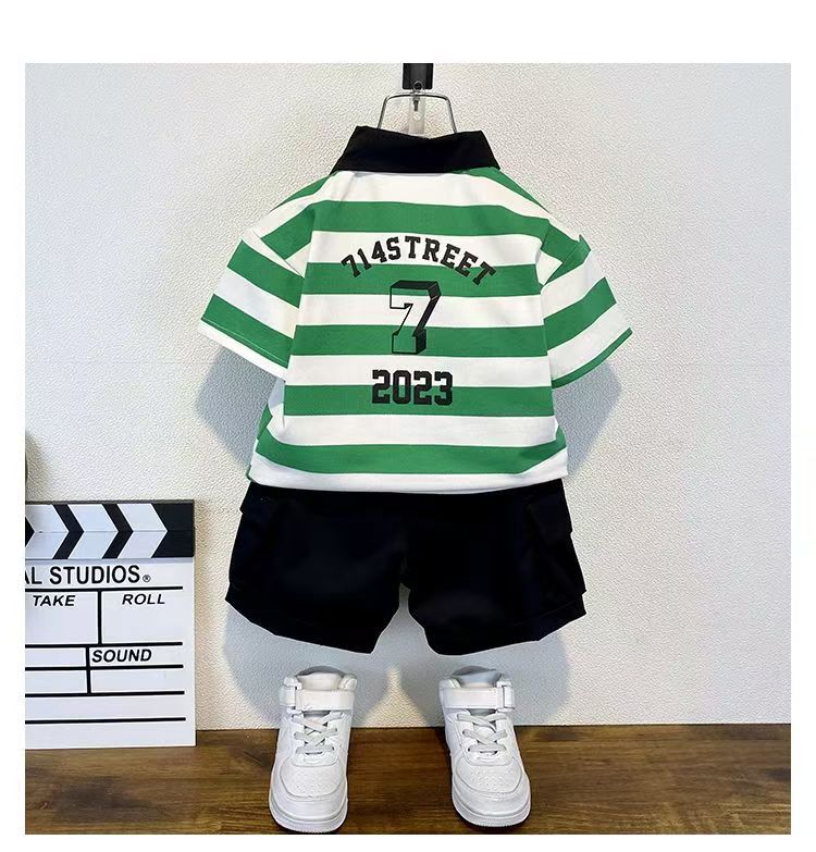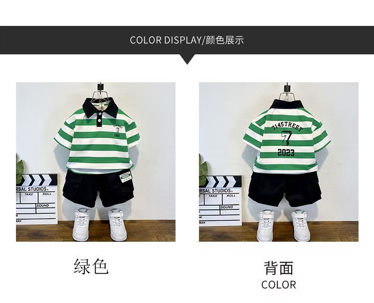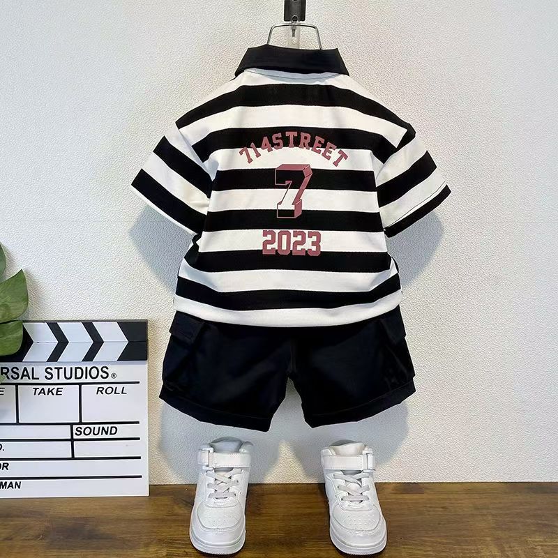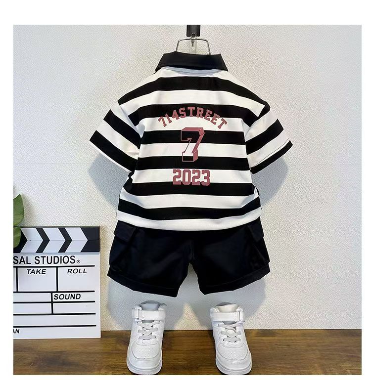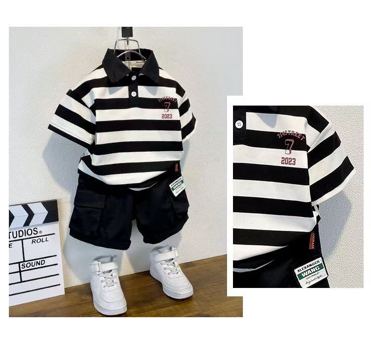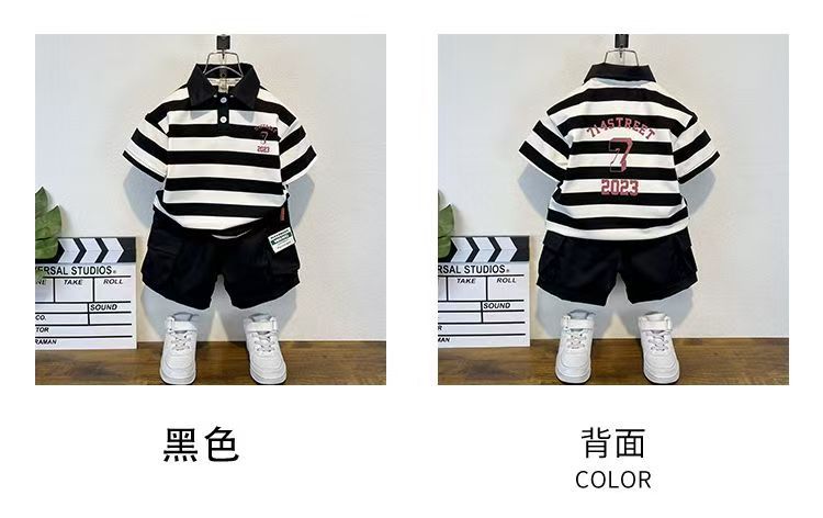 2025 새로운 어린이 반팔 세트 만화 소녀와 소년 티셔츠 여름 서양식 유피 잘 생긴 줄무늬 한국 아동복스토어 가기