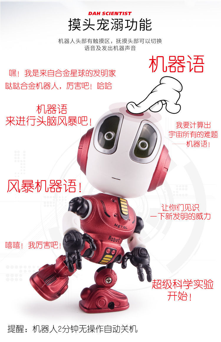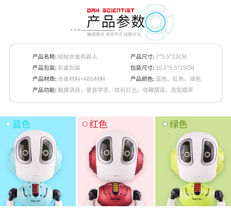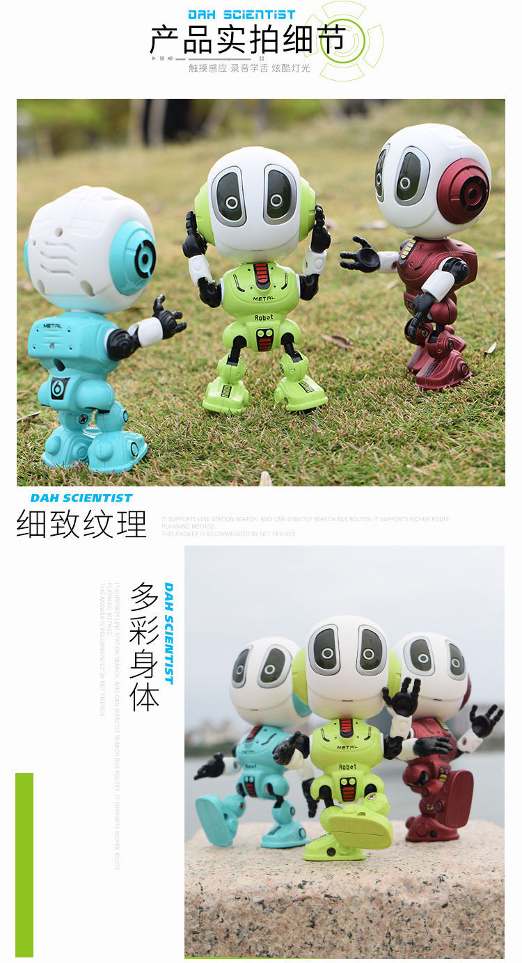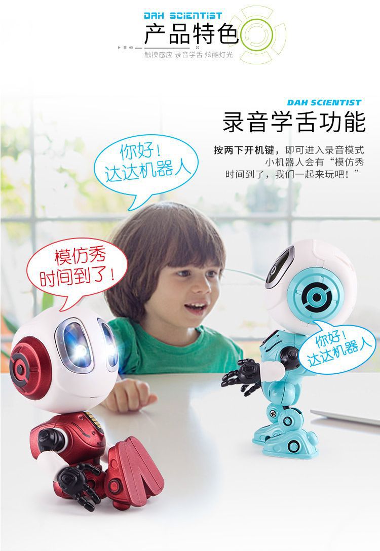 지능형 로봇 Q 버전 다 다 다 합금 장난감 터치 음악 조명은 어린이 교육 국경 도매를 기록 할 수 있습니다.스토어 가기