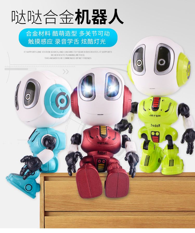 지능형 로봇 Q 버전 다 다 다 합금 장난감 터치 음악 조명은 어린이 교육 국경 도매를 기록 할 수 있습니다.