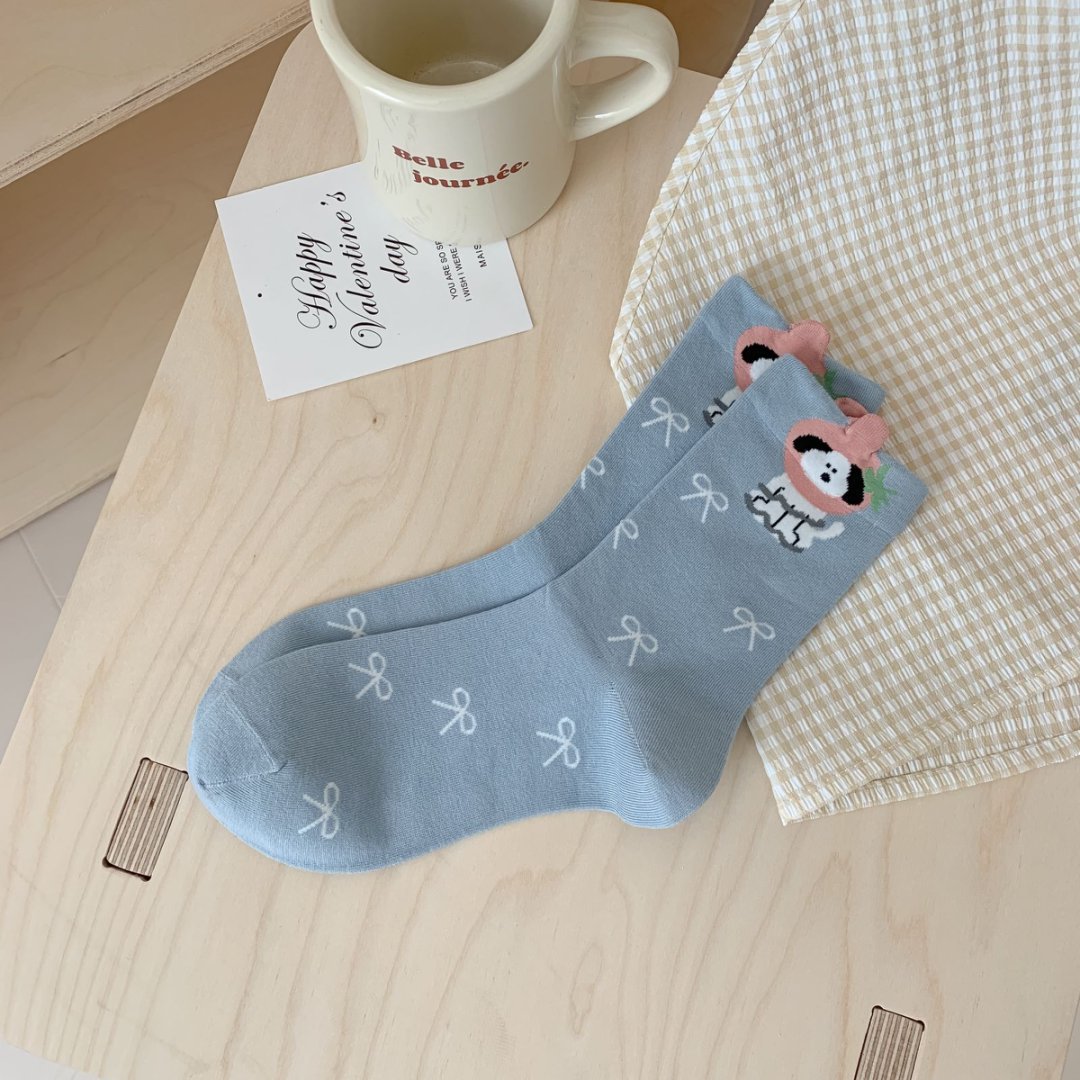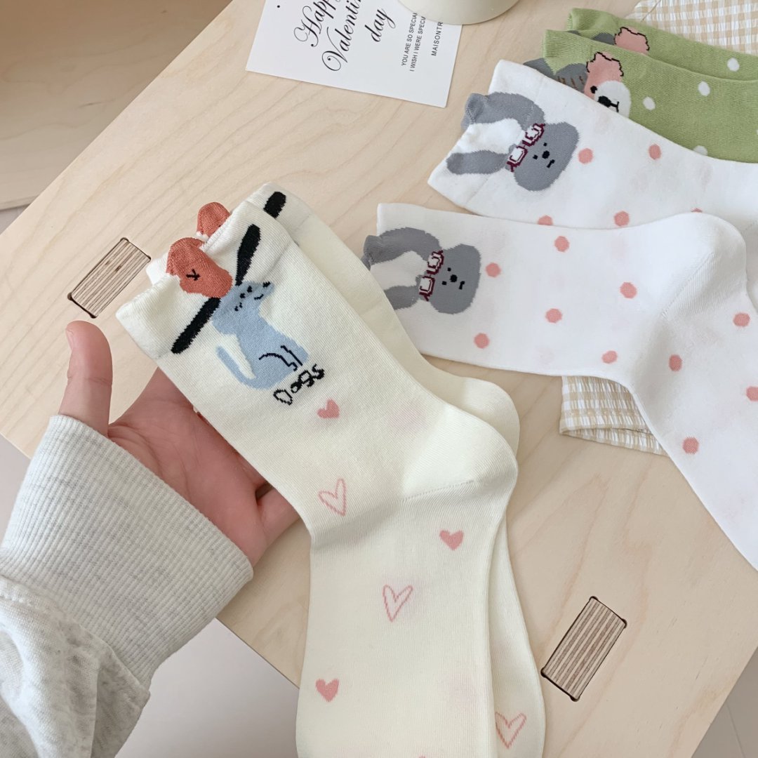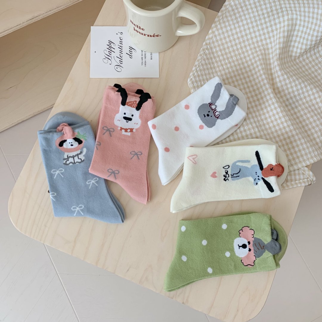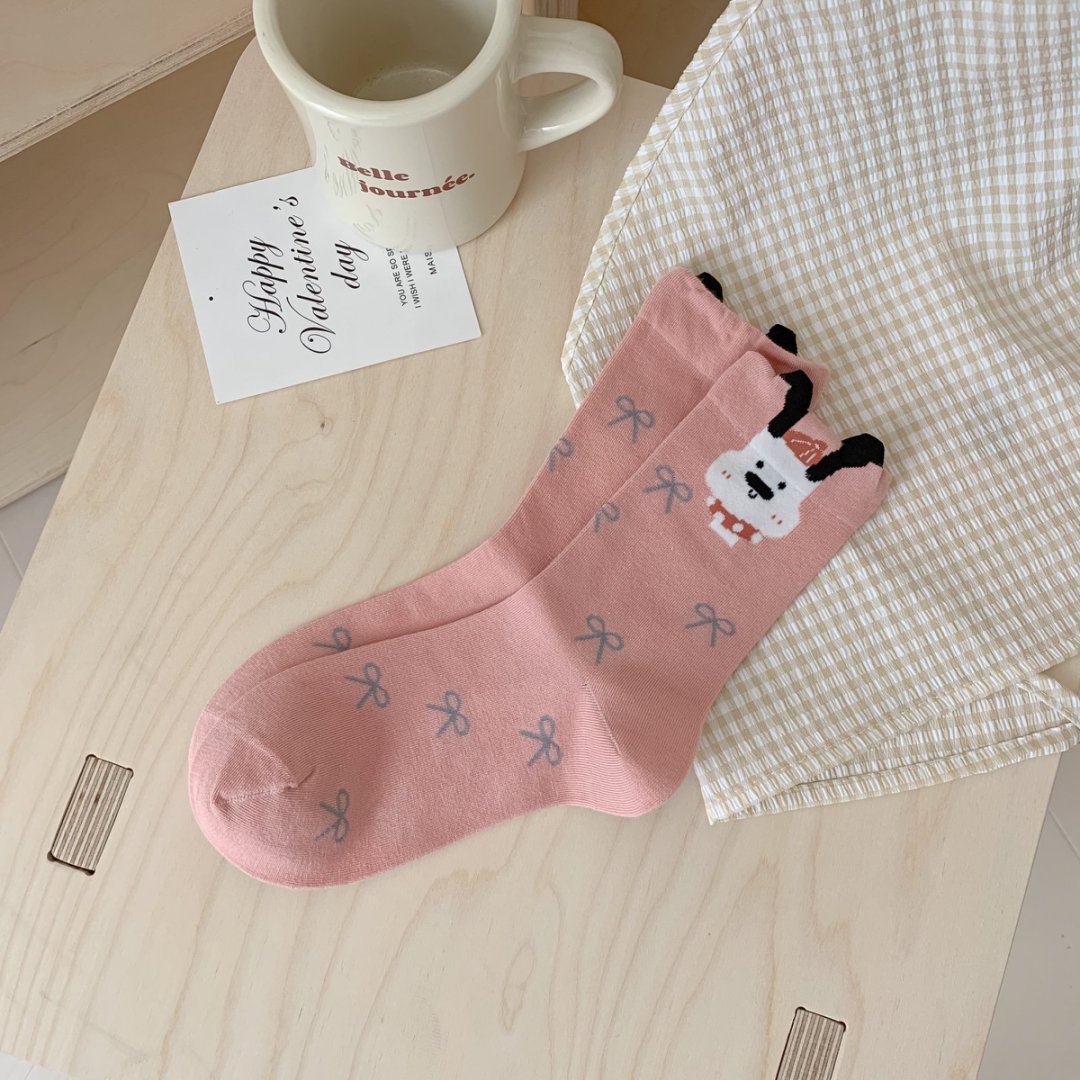 25 여성용 양말 봄 여름 입체 강아지 양말 중목 양말 귀여운 일본풍 만화 캐릭터 ins 트렌드 여름 롱삭스