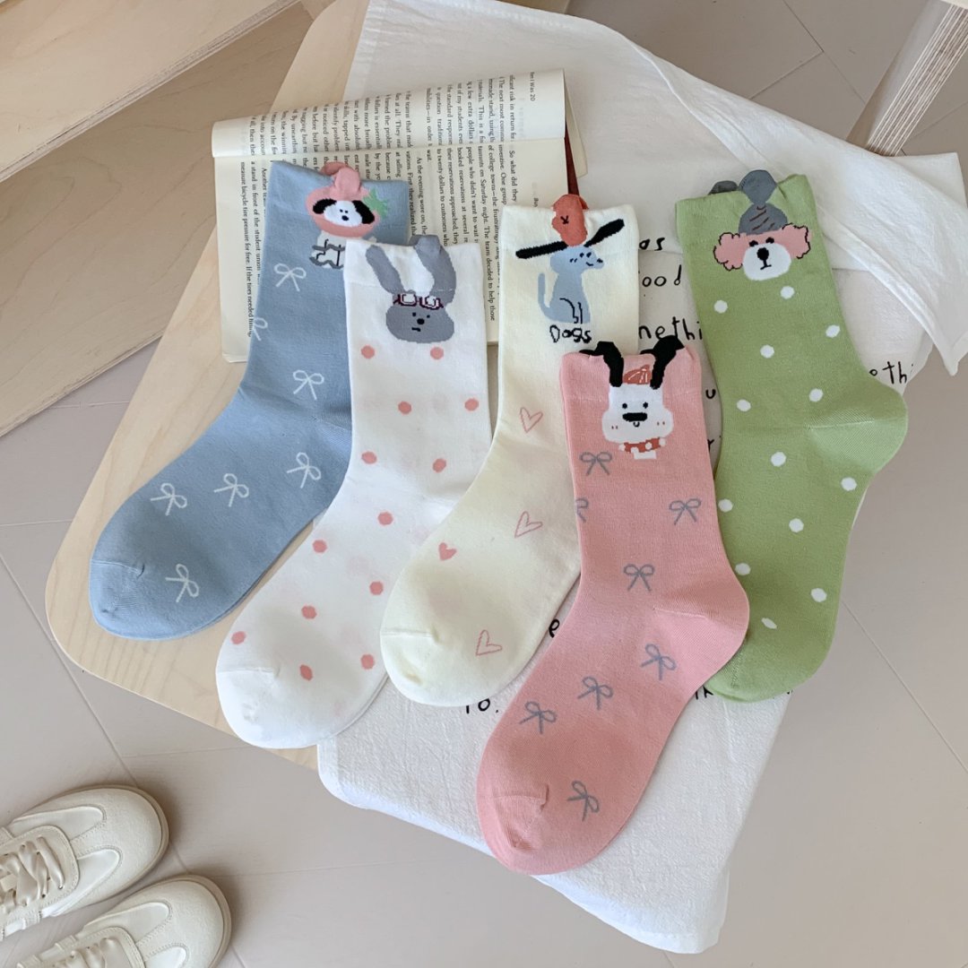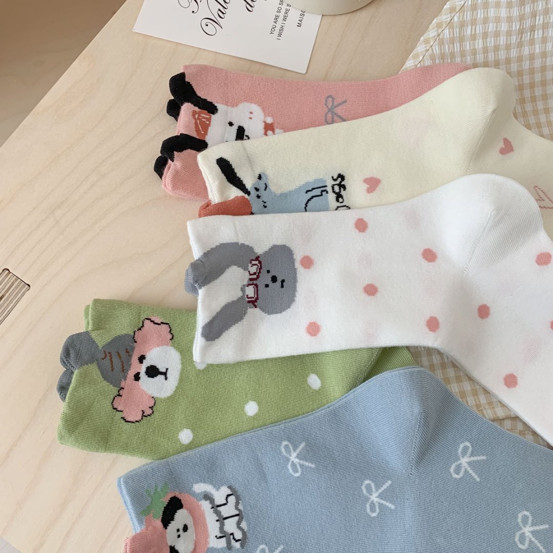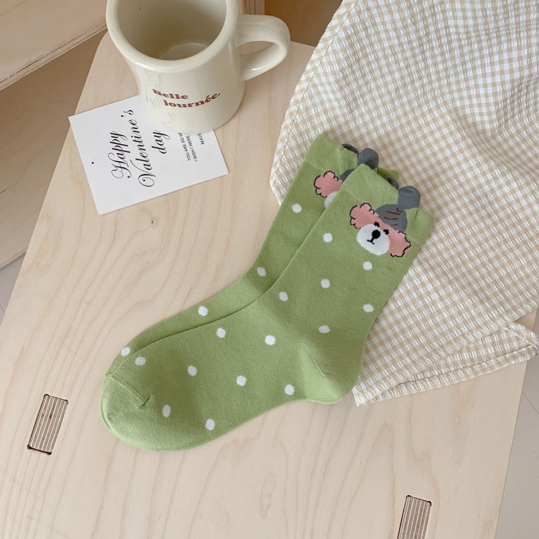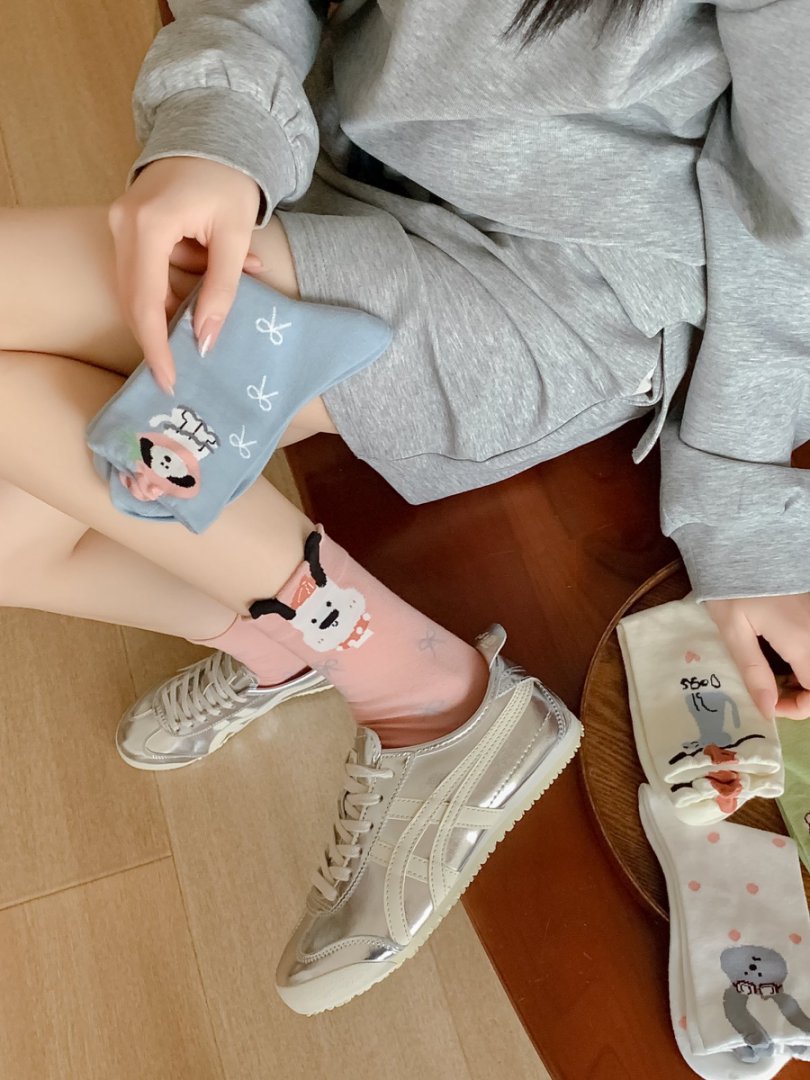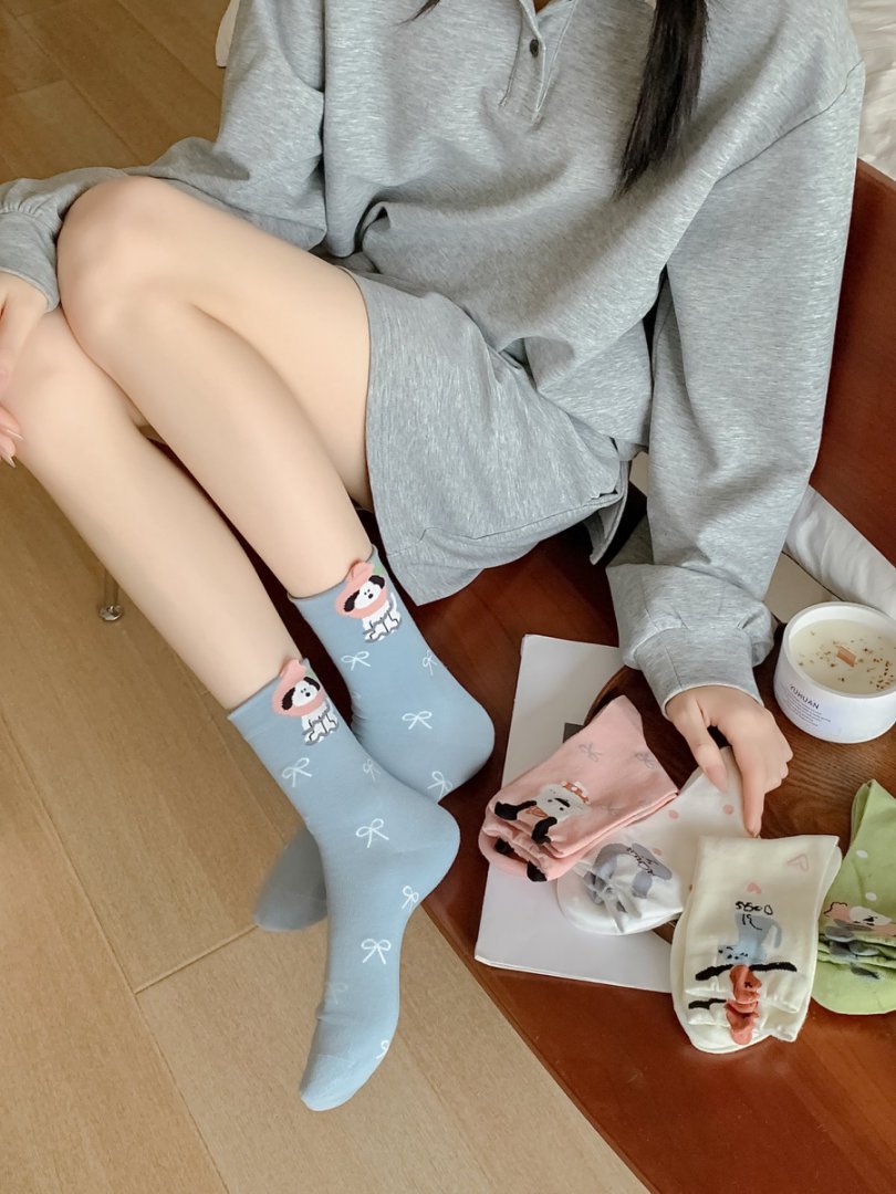 25 여성용 양말 봄 여름 입체 강아지 양말 중목 양말 귀여운 일본풍 만화 캐릭터 ins 트렌드 여름 롱삭스