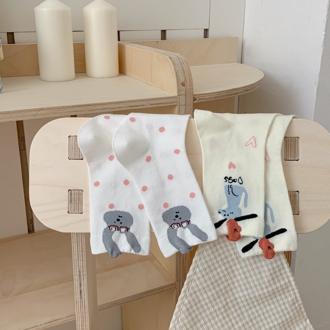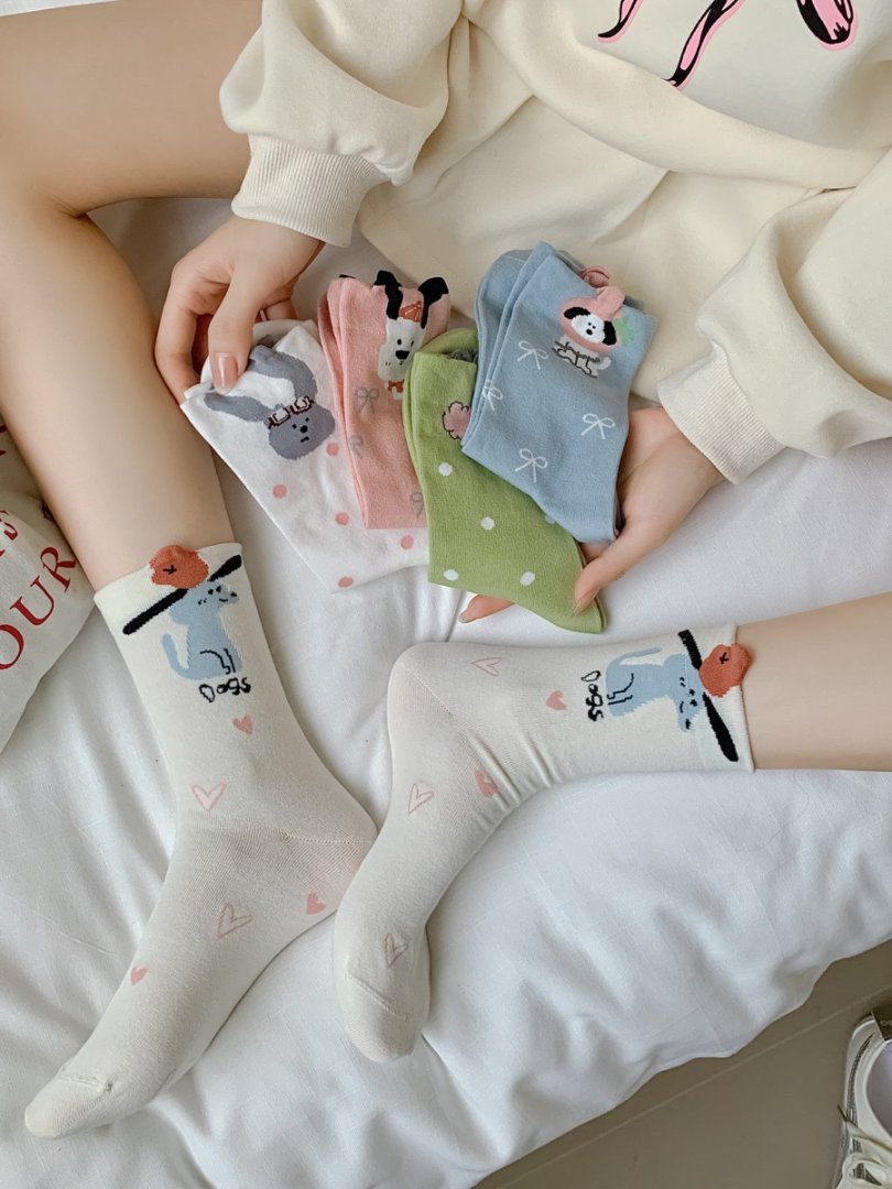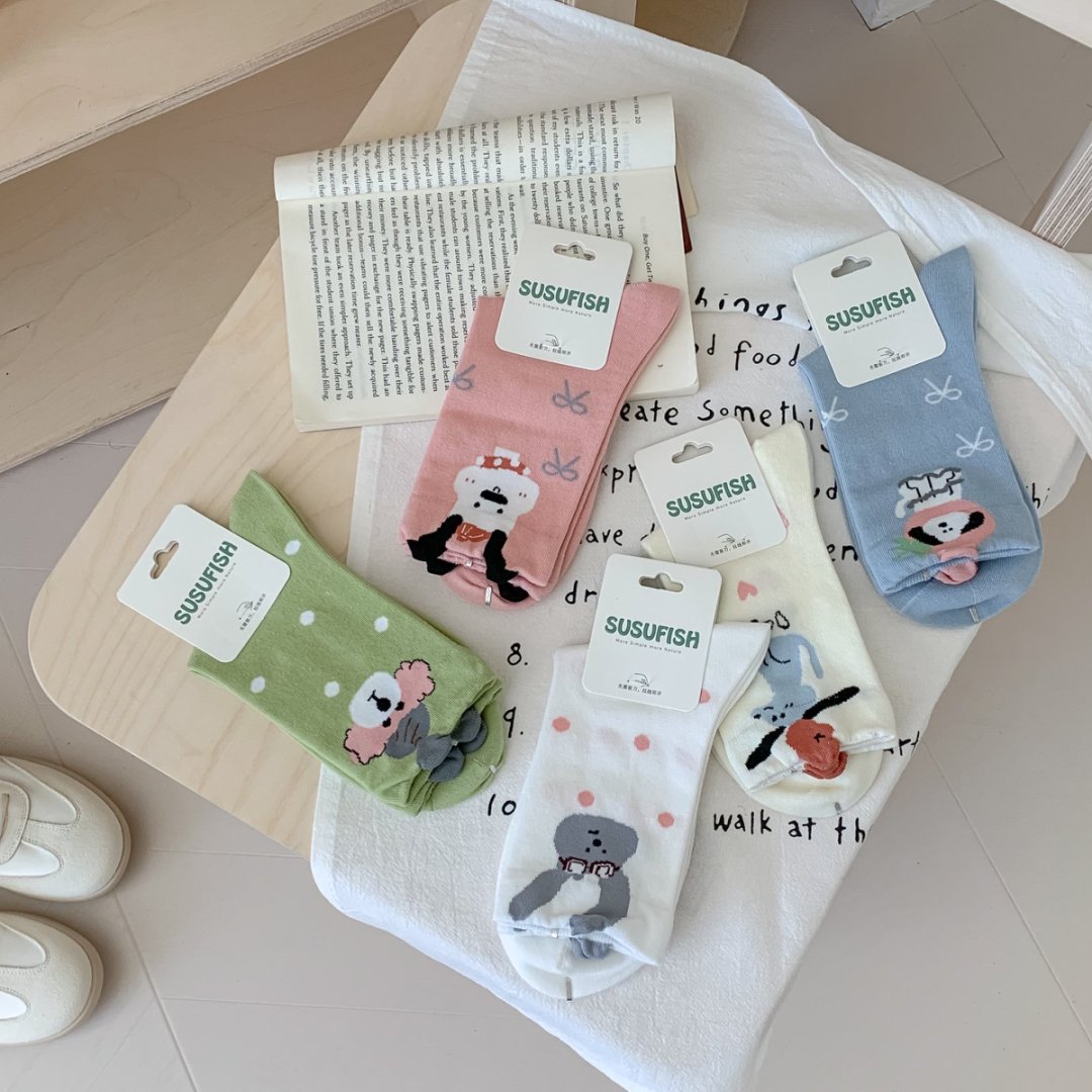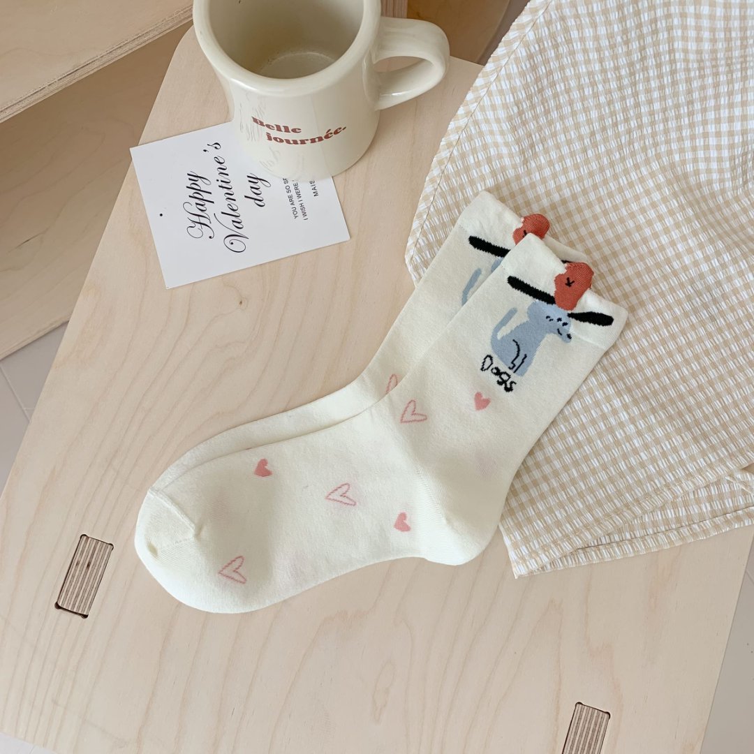 25 여성용 양말 봄 여름 입체 강아지 양말 중목 양말 귀여운 일본풍 만화 캐릭터 ins 트렌드 여름 롱삭스
