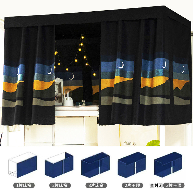 전체 음영 학생 기숙사 침대 커튼 상단 및 하단 침실 두꺼운 브래킷 상단 슈퍼 두꺼운 침대 커튼 간단한 침대 벽