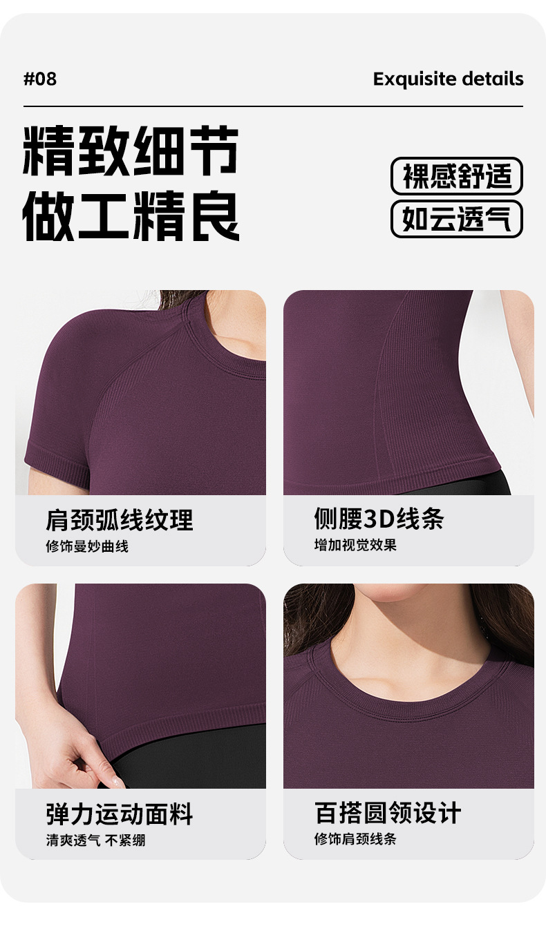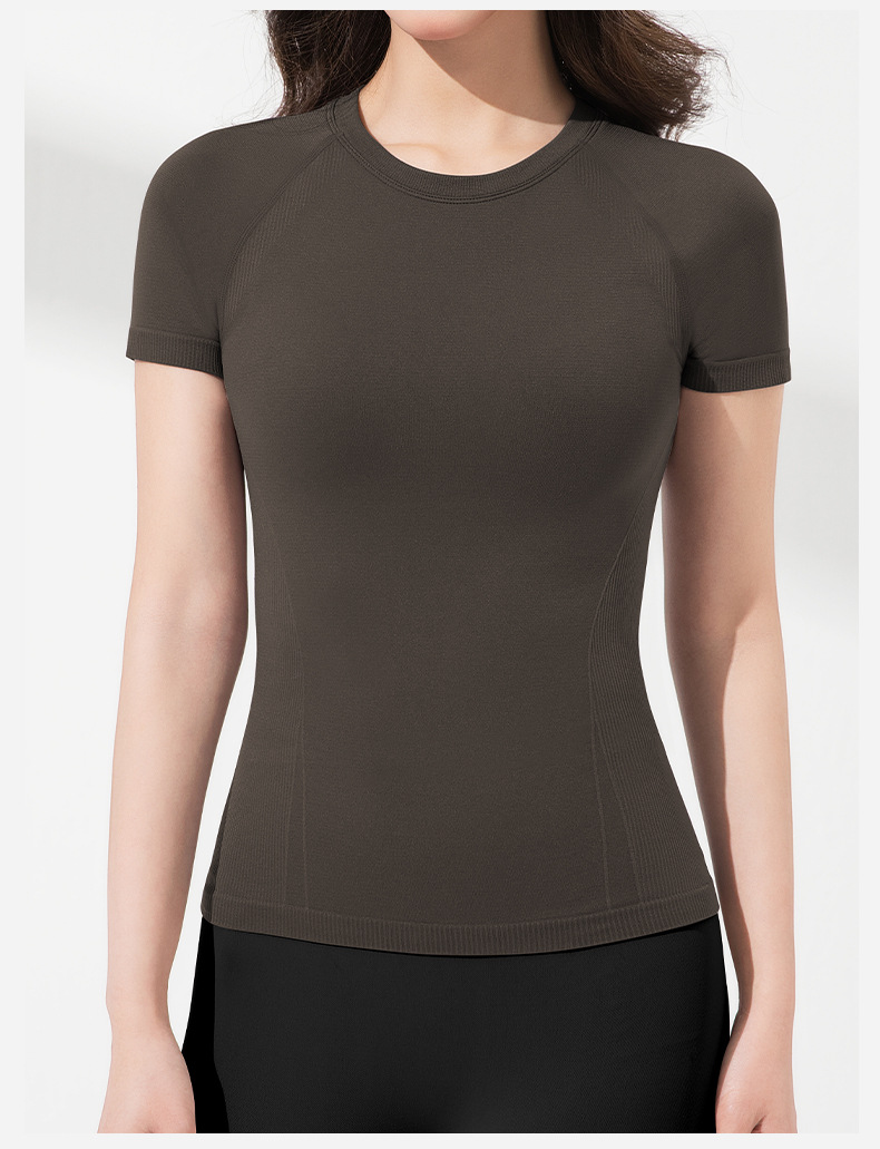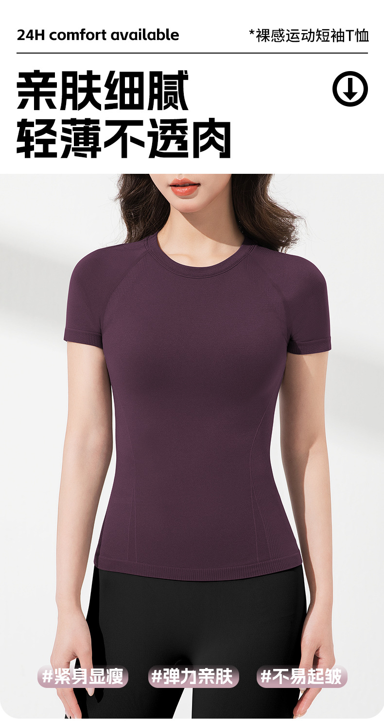 스포츠 반팔 라운드 넥 티셔츠 여성 봄과 여름 새로운 달리기 피트니스 슬림 핏 슬림 호흡 가능한 요가 옷 반팔 탑