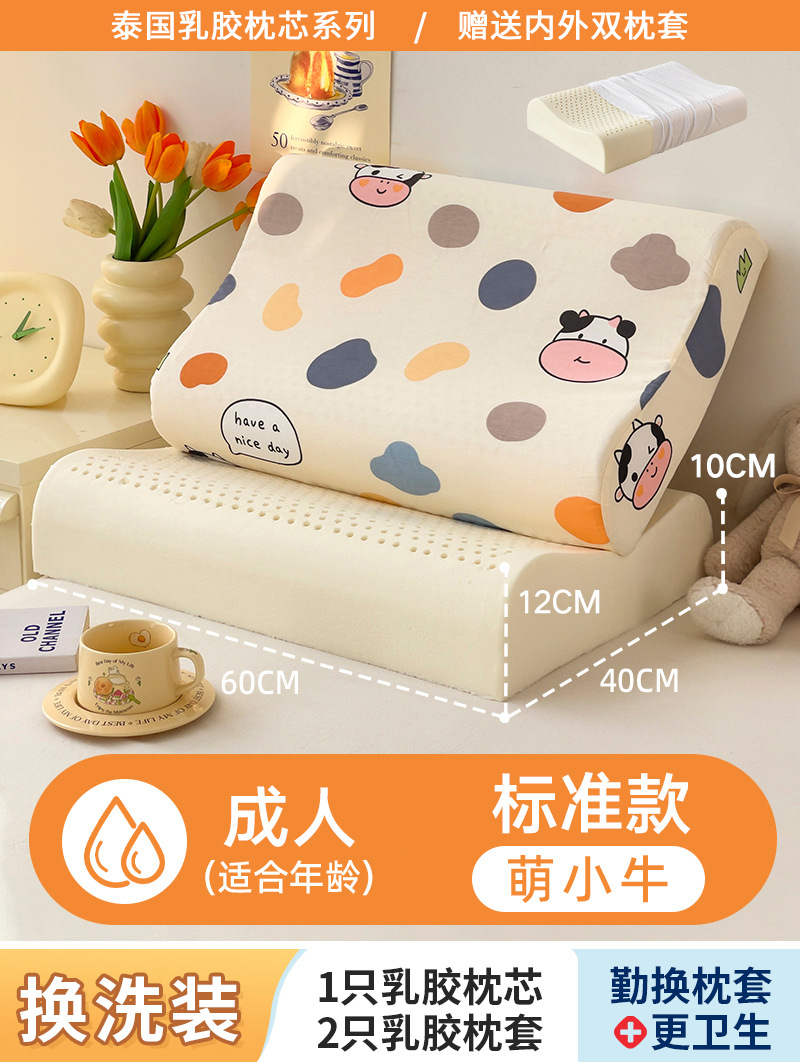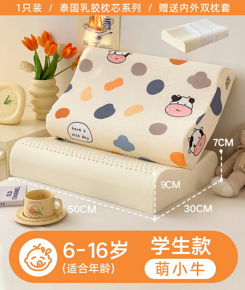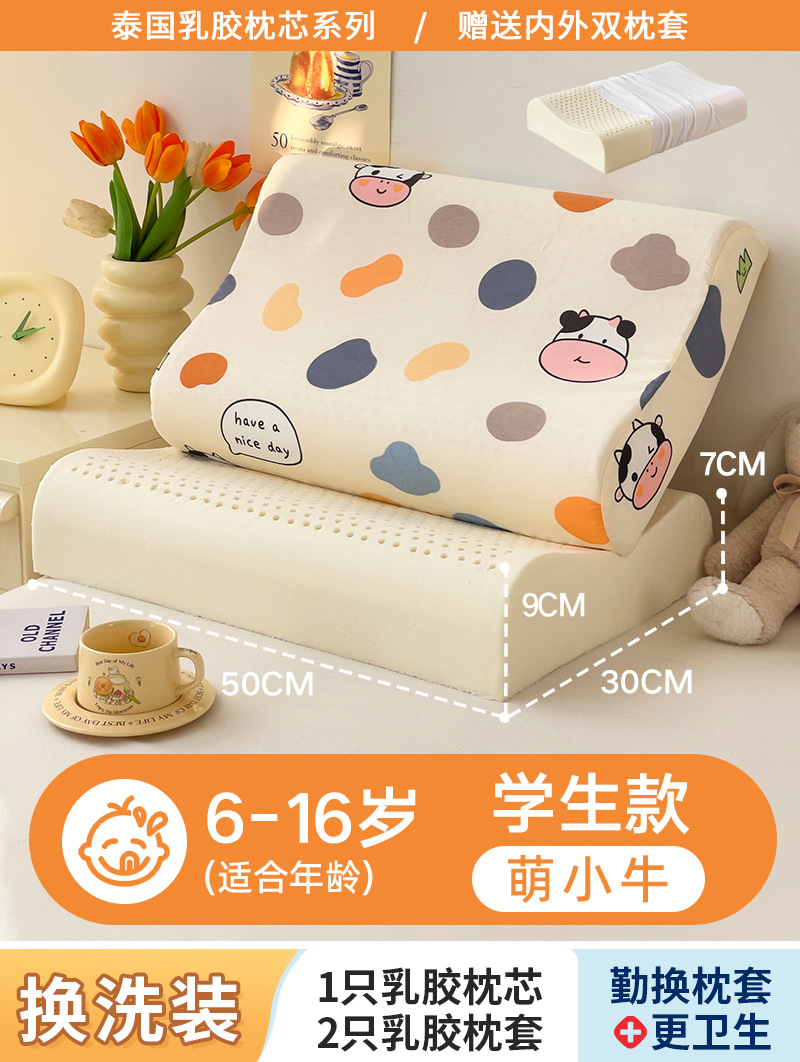 • ✅[교체] 학생모델 : 6-16세/귀여운 송아지 30X50cm [라텍스 베개심 1개 + 같은 스타일의 라텍스 베개커버 2개]
