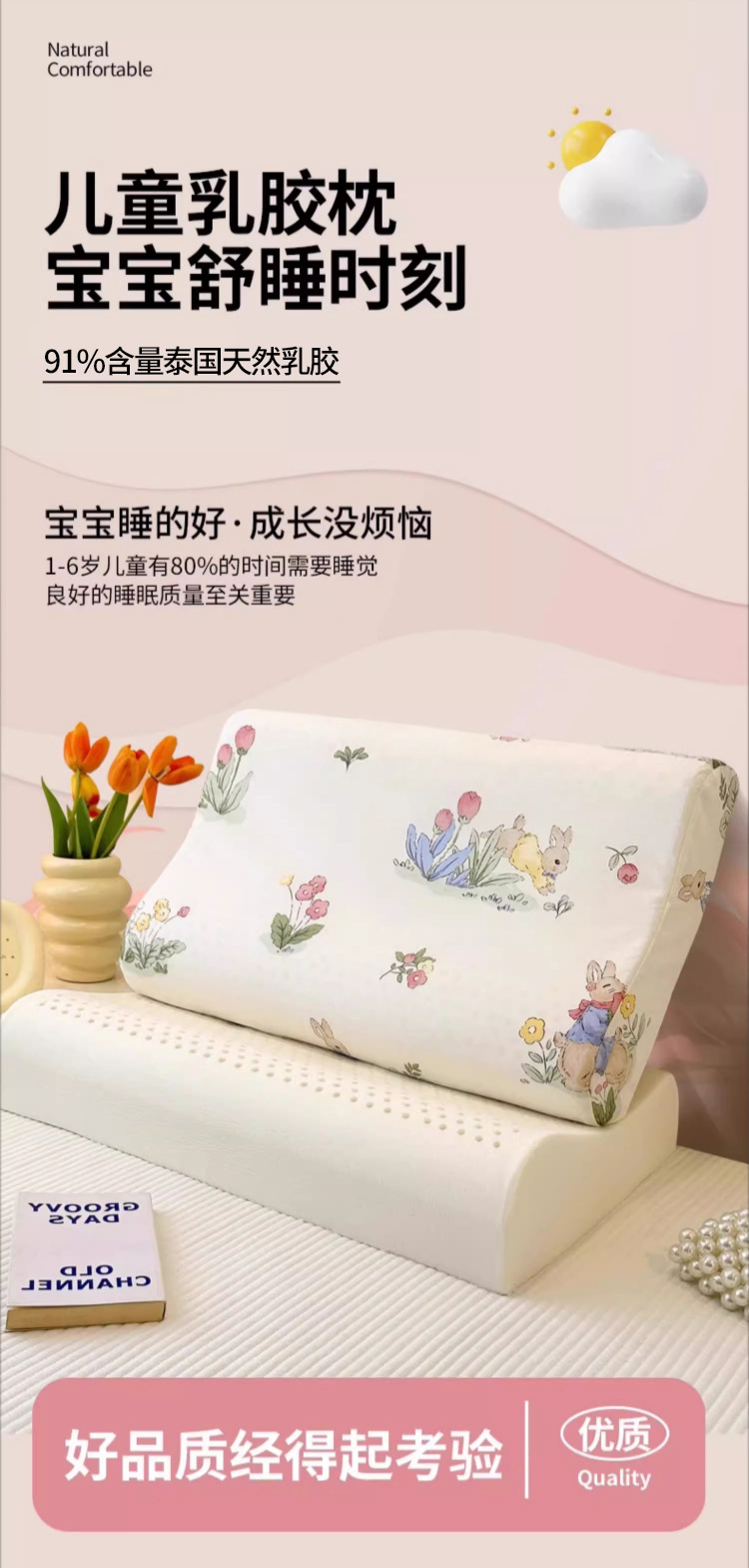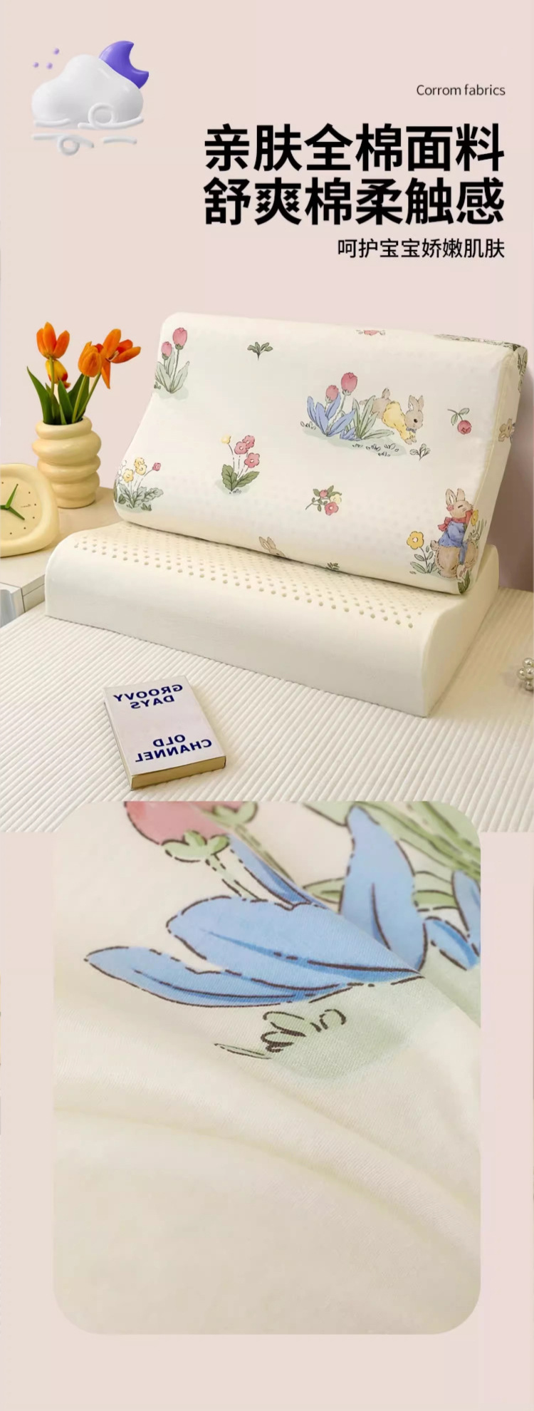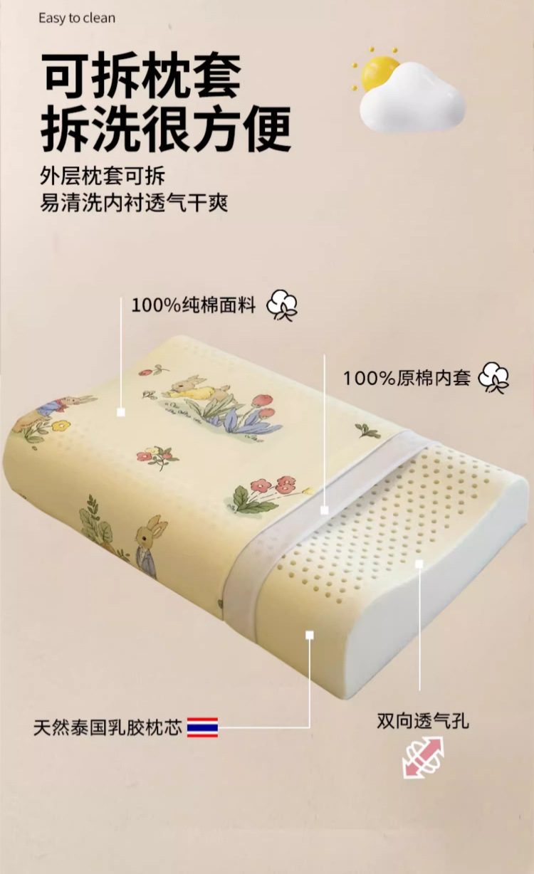 • ✅[옷 갈아입기] 학생모델 : 6-16세 / 페이페이 토끼 30X50cm [라텍스 베개심 1개 + 같은 스타일의 라텍스 베개커버 2개]