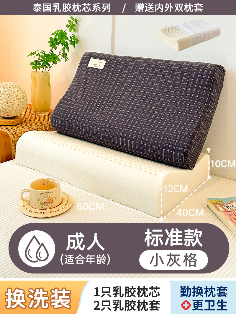 • ✅[교체] 표준 모델: 성인에게 적합/작은 회색 격자 40x60cm [라텍스 베개 코어 1개 + 동일한 라텍스 베개 커버 2개]