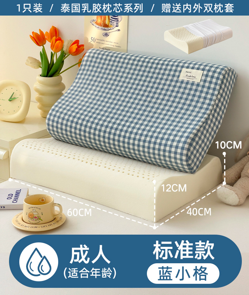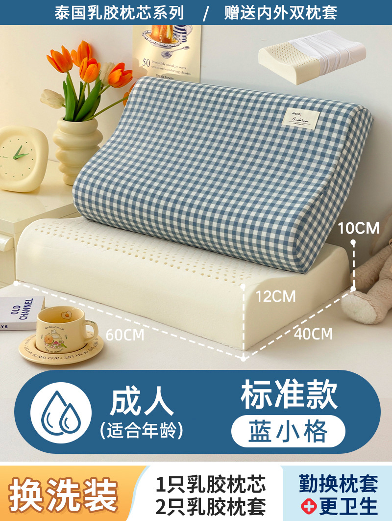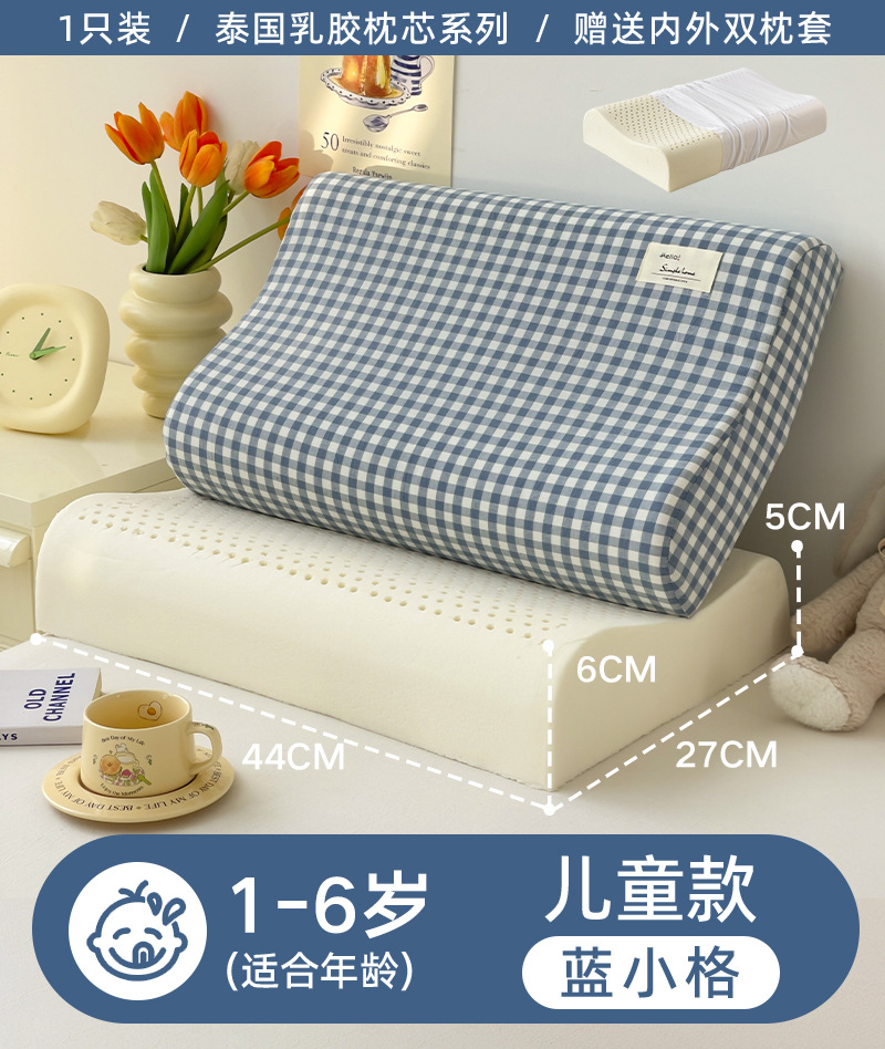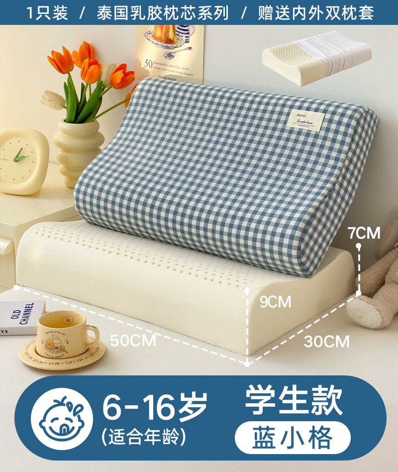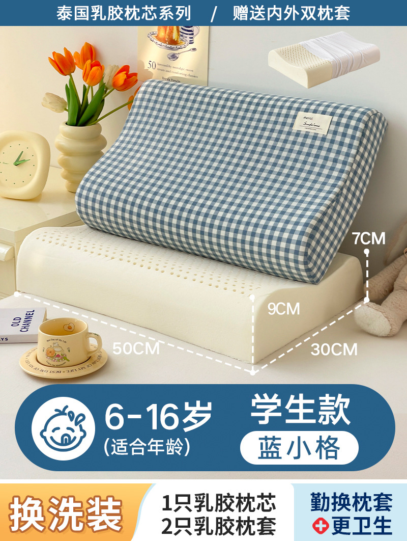 • ✅[옷 갈아입기] 학생 모델: 6-16세/블루 그리드 30X50cm [라텍스 베개 코어 1개 + 같은 스타일의 라텍스 베개 커버 2개]