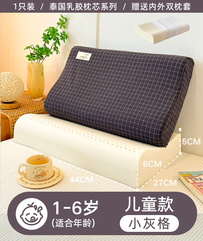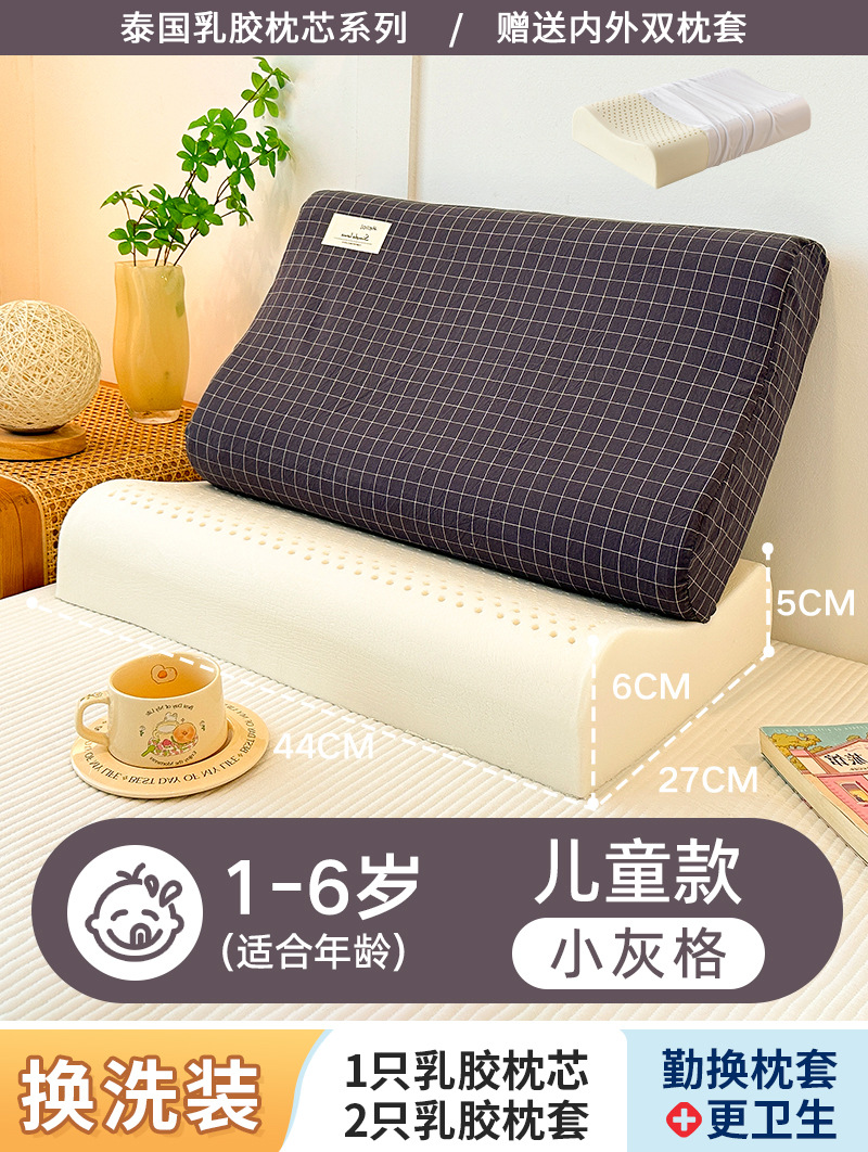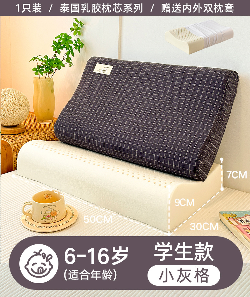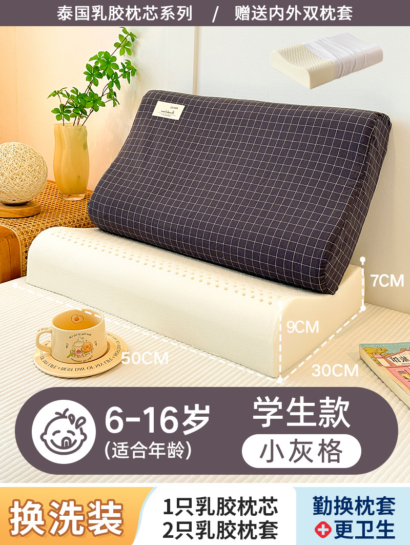 • ✅[교체] 학생 모델: 6-16세/작은 회색 격자 30X50cm [라텍스 베개 코어 1개 + 같은 스타일의 라텍스 베개 커버 2개]
