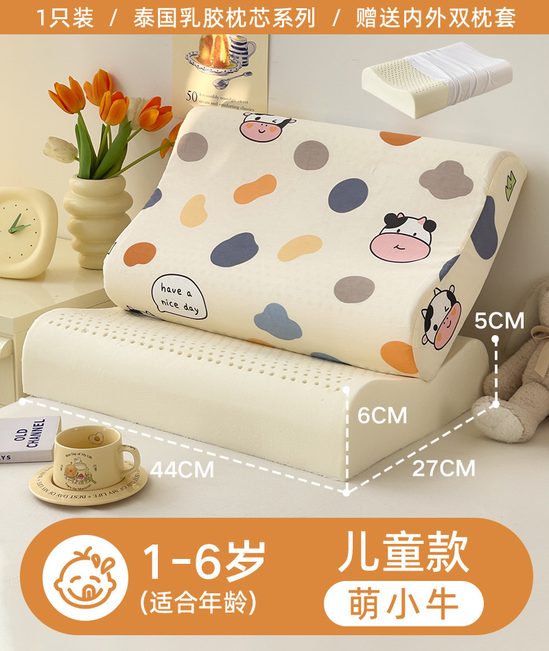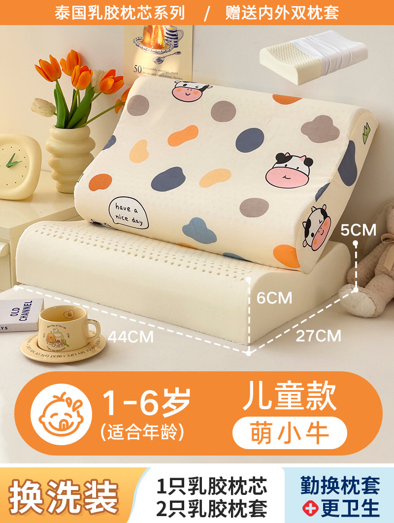 • ✅[옷 갈아입기] 어린이 모델: 1-6세/귀여운 송아지 27x44cm [라텍스 베개 코어 1개 + 같은 스타일의 라텍스 베개 커버 2개]