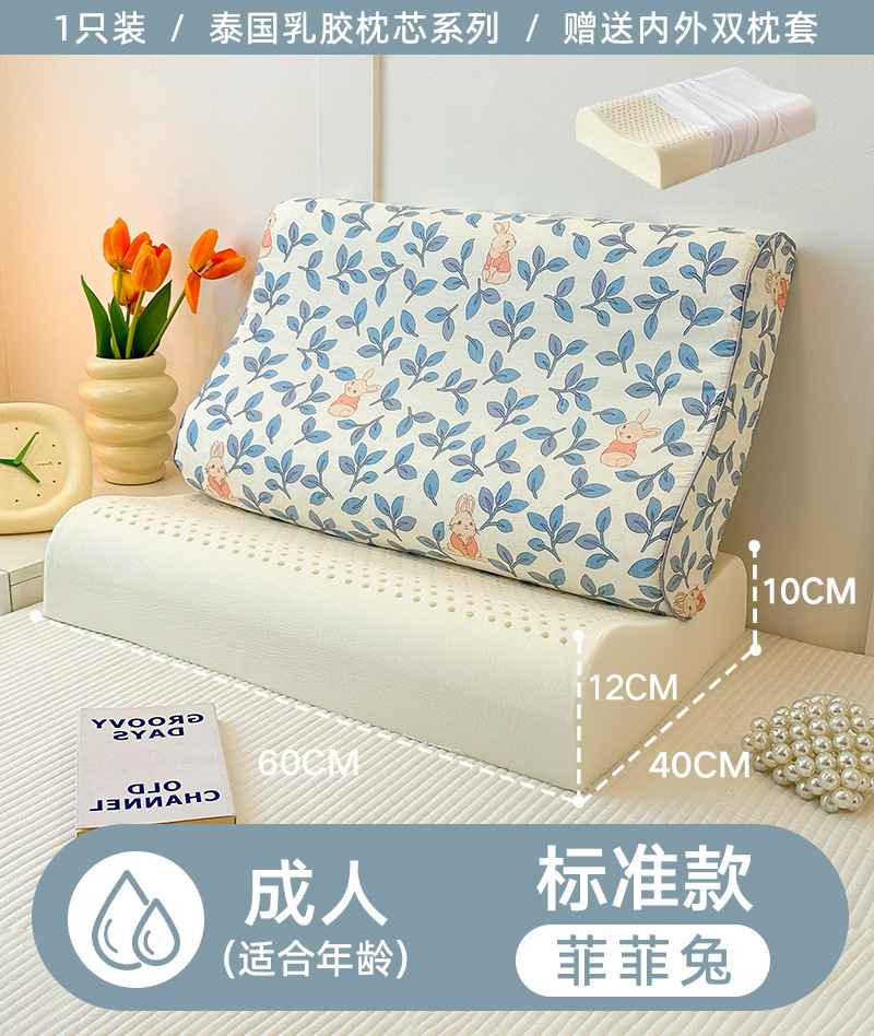 • ✅[교체] 표준 모델: 성인에게 적합/Feifei Rabbit 40x60cm [라텍스 베개 코어 1개 + 동일한 라텍스 베개 커버 2개]