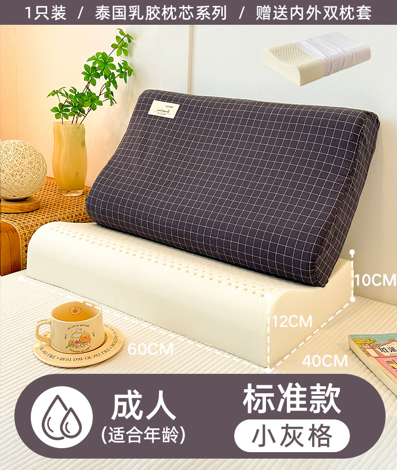 • 표준 모델: 성인에게 적합/작은 회색 그리드 40x60cm [라텍스 베개 코어 1개 + 라텍스 베갯잇 1개]