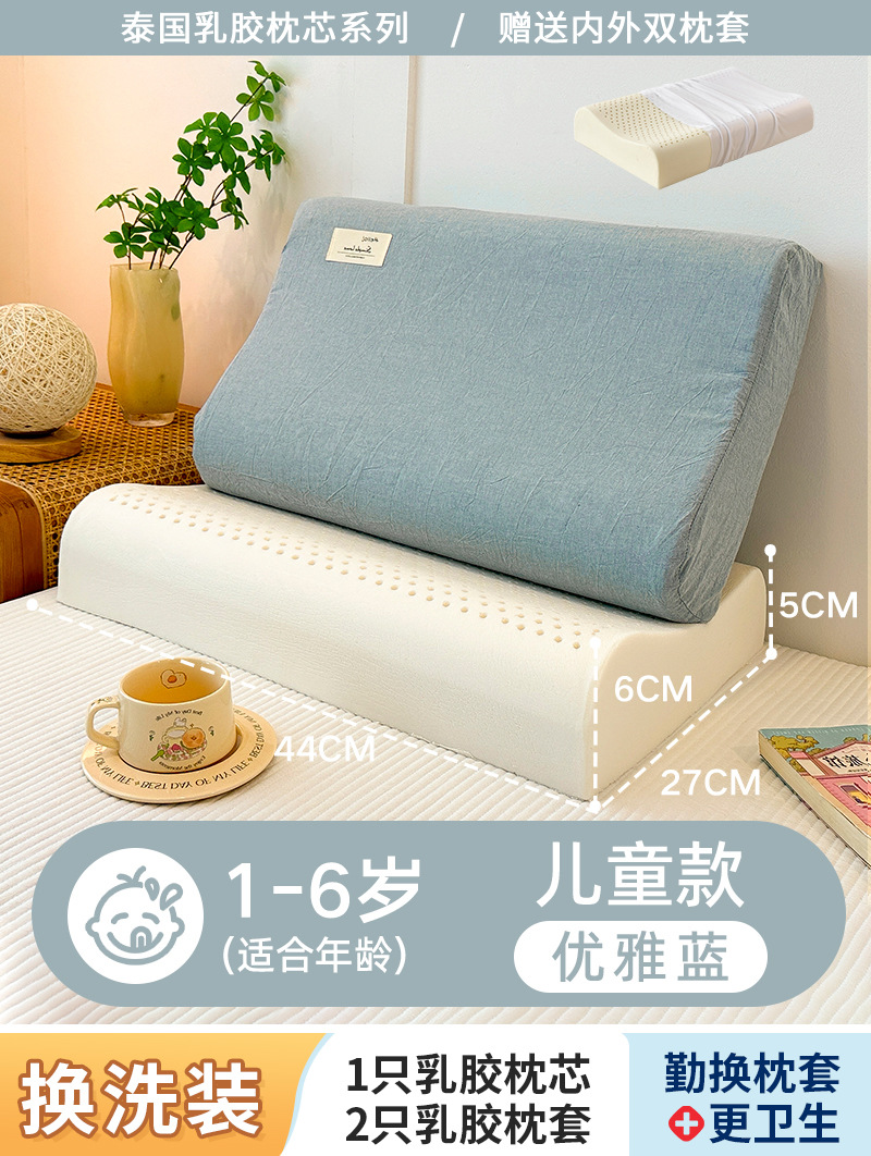 • ✅[옷 갈아입기] 아동용 모델: 1-6세/우아한 파란색 27x44cm [라텍스 베개 코어 1개 + 같은 스타일의 라텍스 베개 커버 2개]