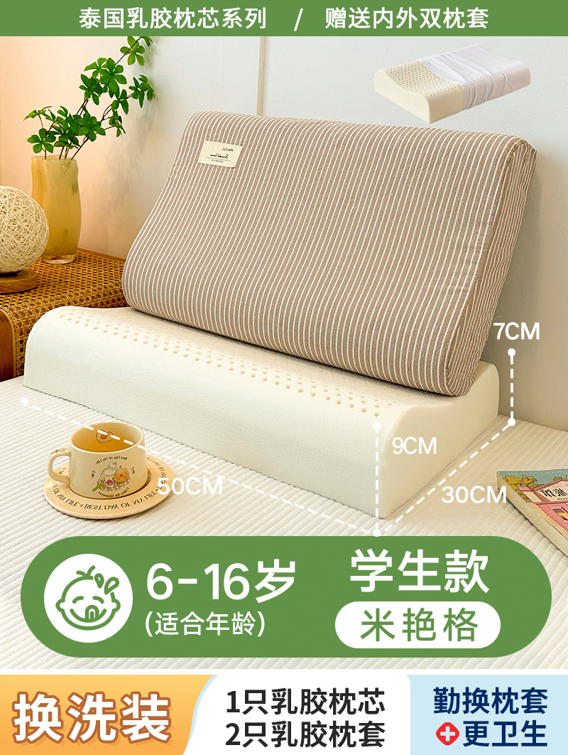 • ✅[옷 갈아입기] 학생 모델: 6-16세/Mi Yan 스트립 30X50cm [라텍스 베개 코어 1개 + 같은 스타일의 라텍스 베개 커버 2개]