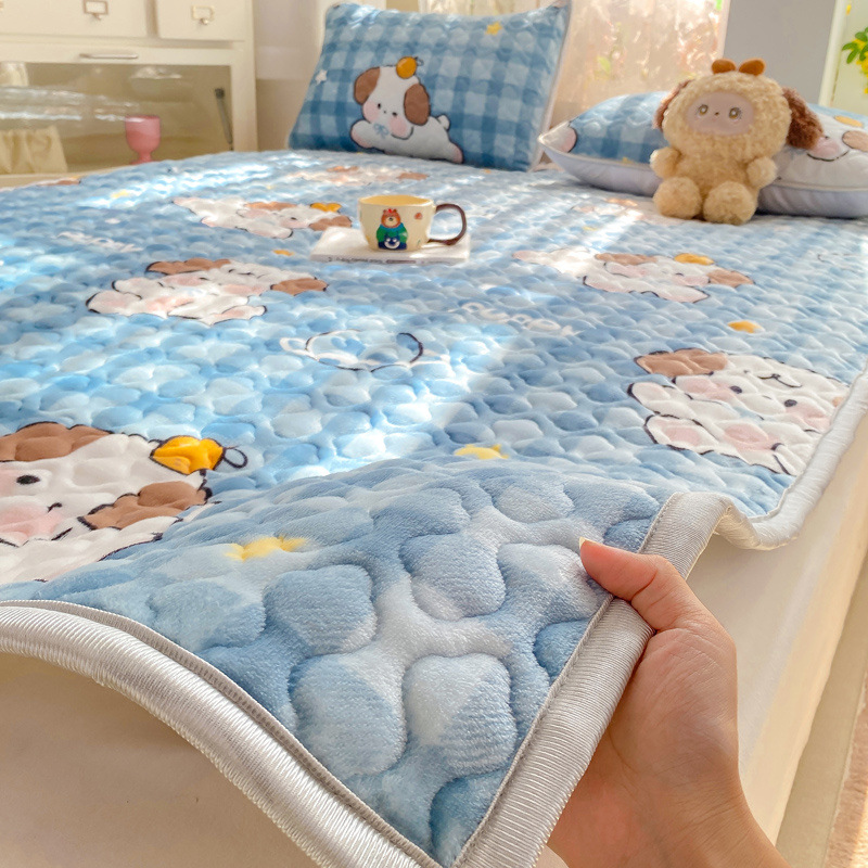겨울 우유 벨벳 매트리스 가정용 패드 학생 기숙사 단일 두꺼운 따뜻한 매트리스 플란넬 쿠션 침대 시트