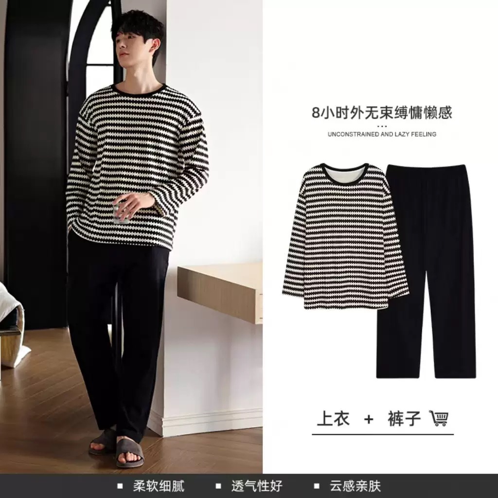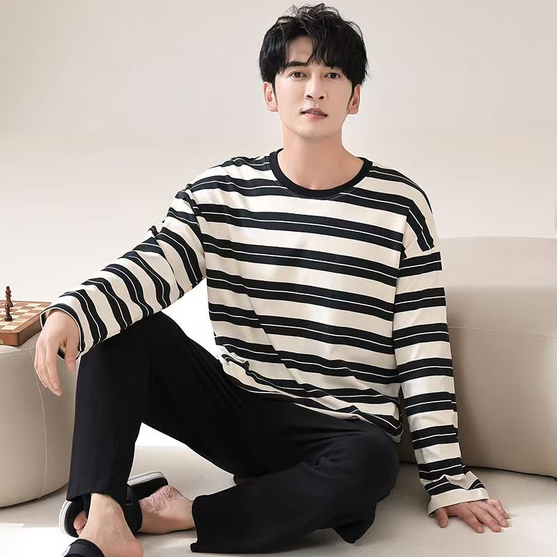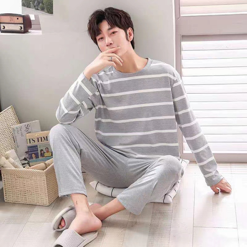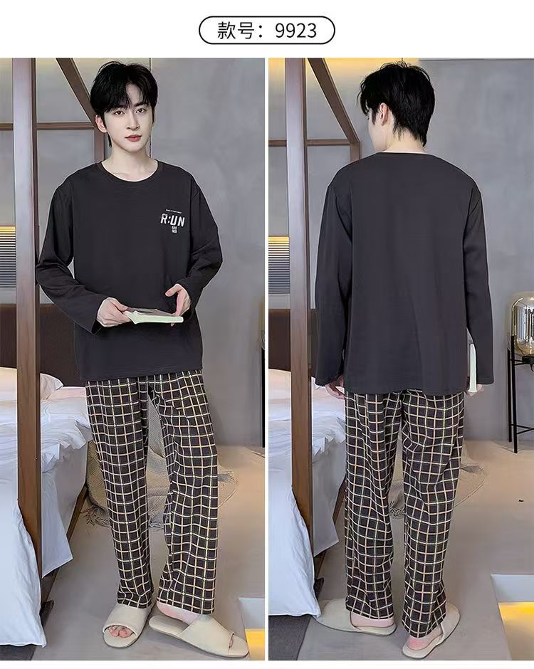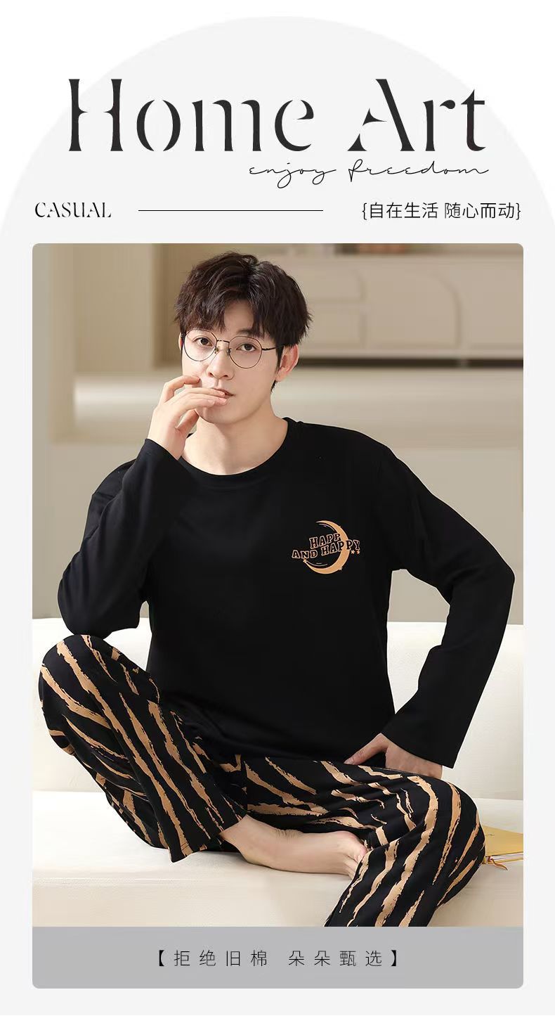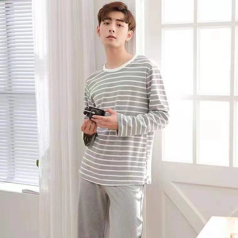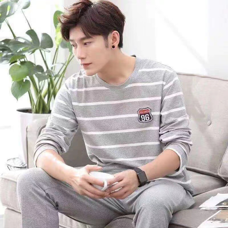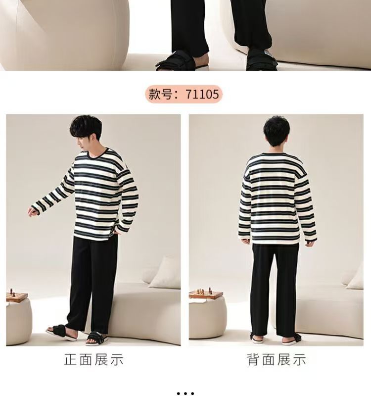 재고 남성 잠옷 긴 소매 봄과 가을 홈 의류 남성 가을과 겨울 젊은 중년 얇은 겨울 세트 도매스토어 가기