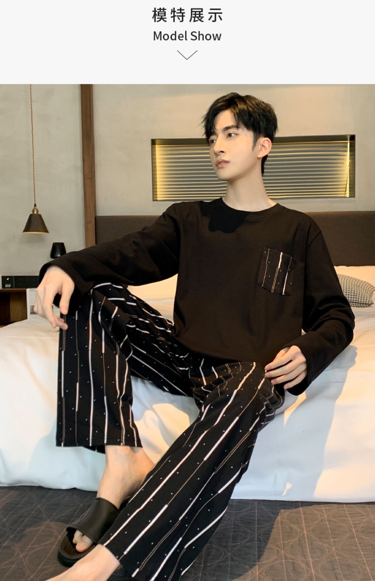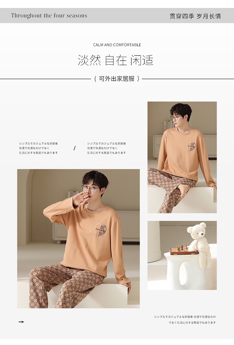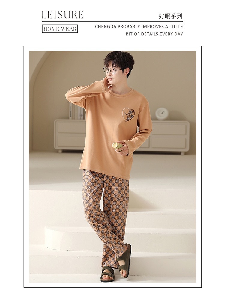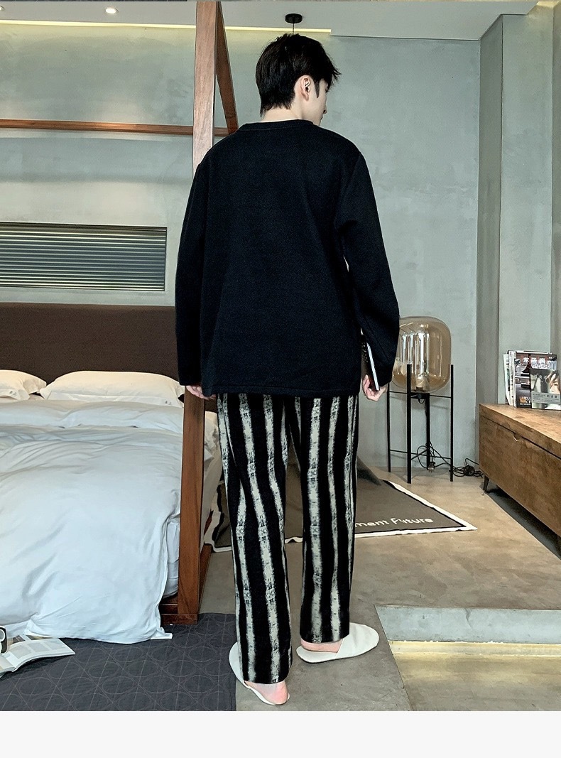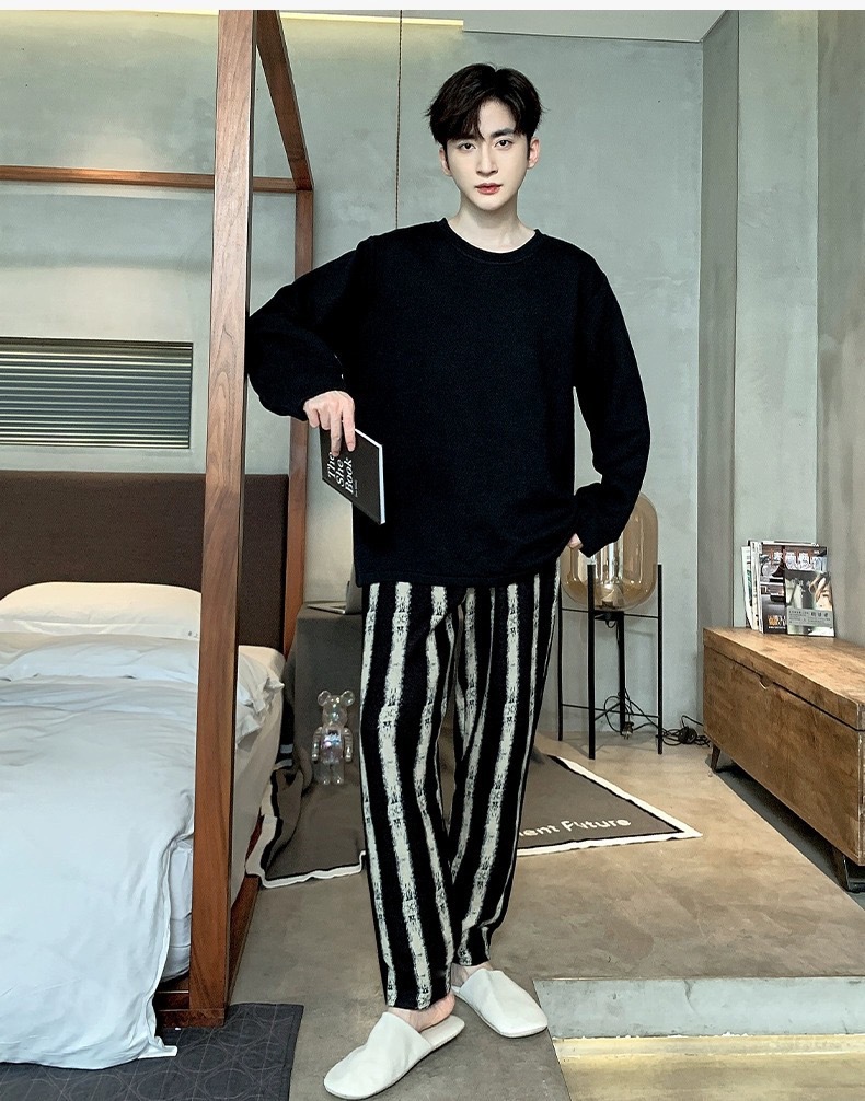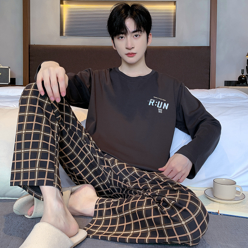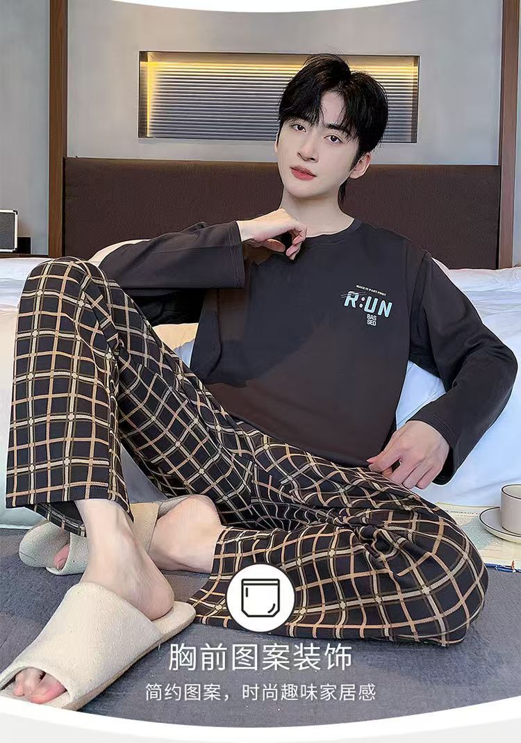 재고 남성 잠옷 긴 소매 봄과 가을 홈 의류 남성 가을과 겨울 젊은 중년 얇은 겨울 세트 도매스토어 가기