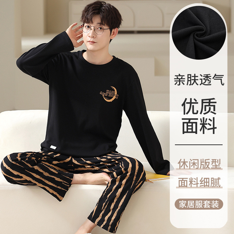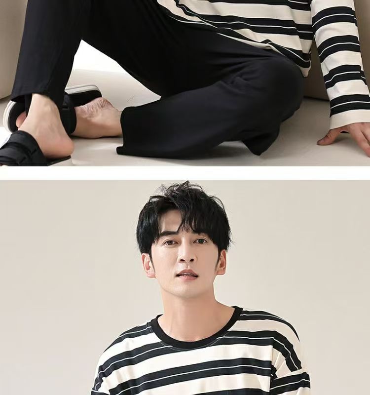 재고 남성 잠옷 긴 소매 봄과 가을 홈 의류 남성 가을과 겨울 젊은 중년 얇은 겨울 세트 도매
