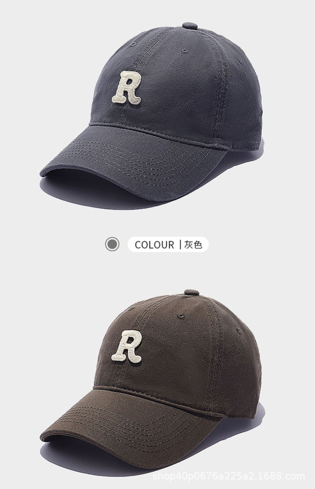 • R 로고 야구 모자-그레이