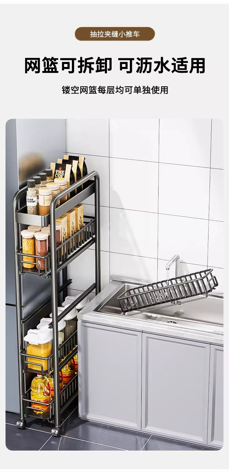 갭 스토리지 랙 주방 냉장고 사이드 좁은 갭 드로잉 스토리지 캐비닛 서랍 바구니 욕실 매우 좁은 사이드 트롤리