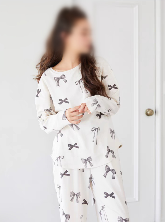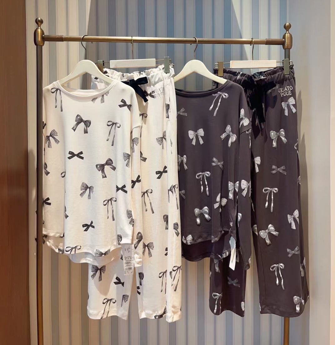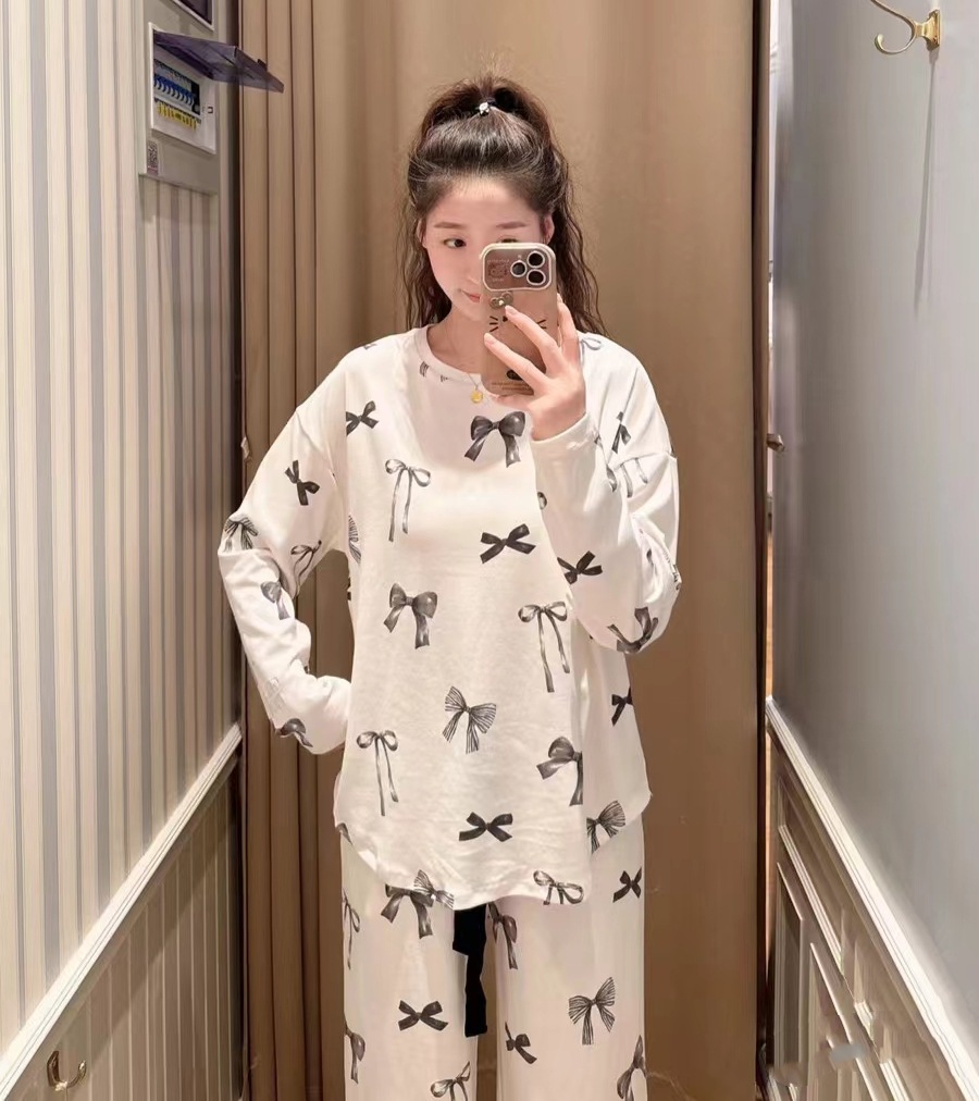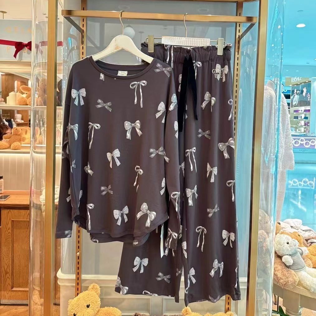 gp 무지 오리지널 부드러운 아이스크림 코튼 프린트 소프트 라운드넥 나비 긴팔 긴바지 파자마 여성 홈웨어스토어 가기