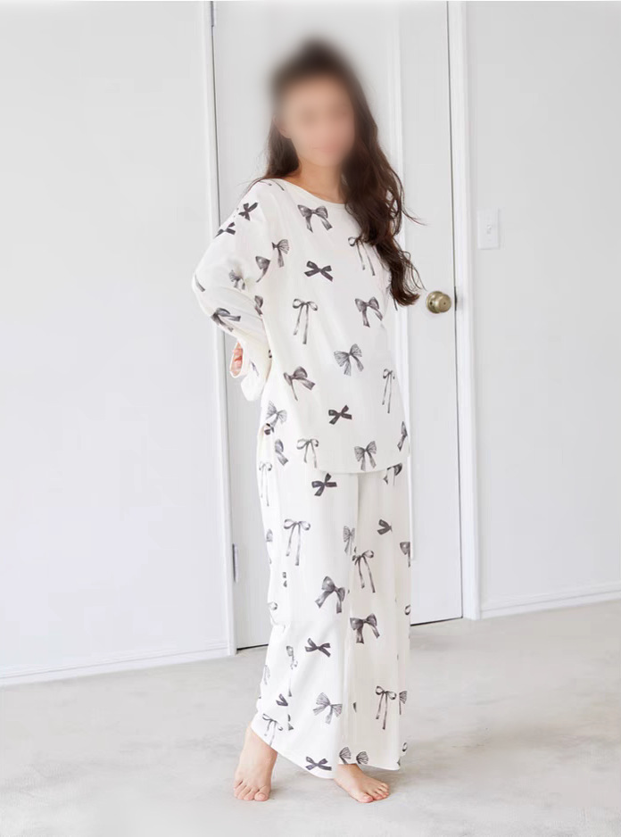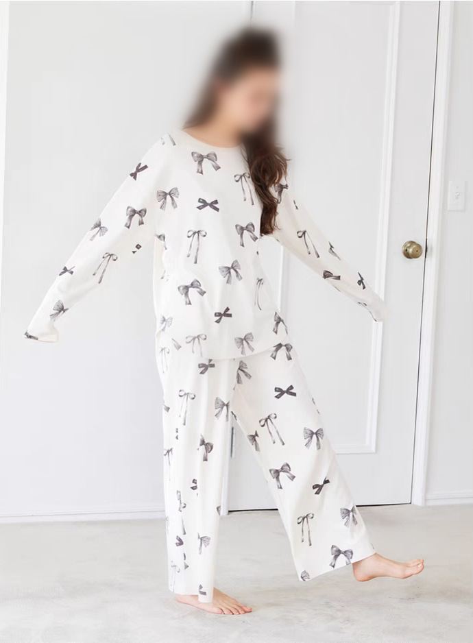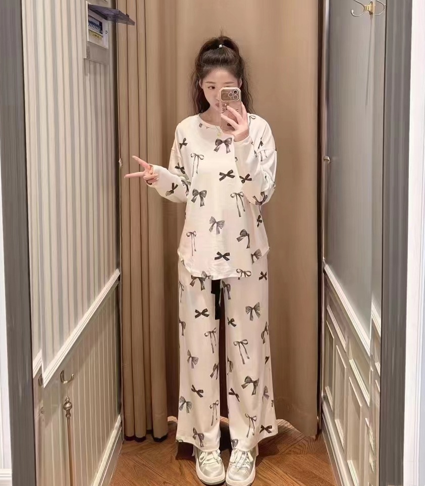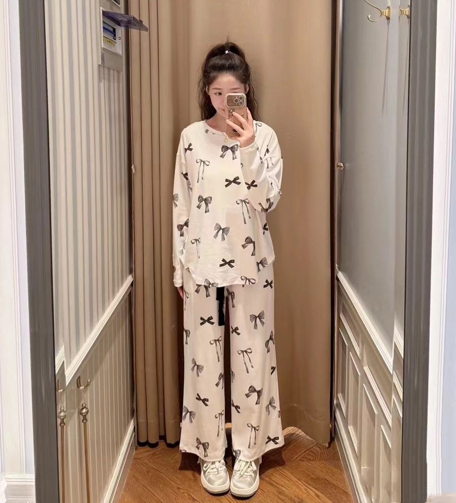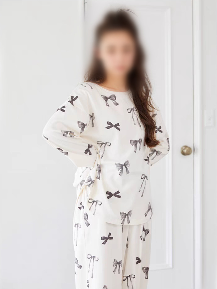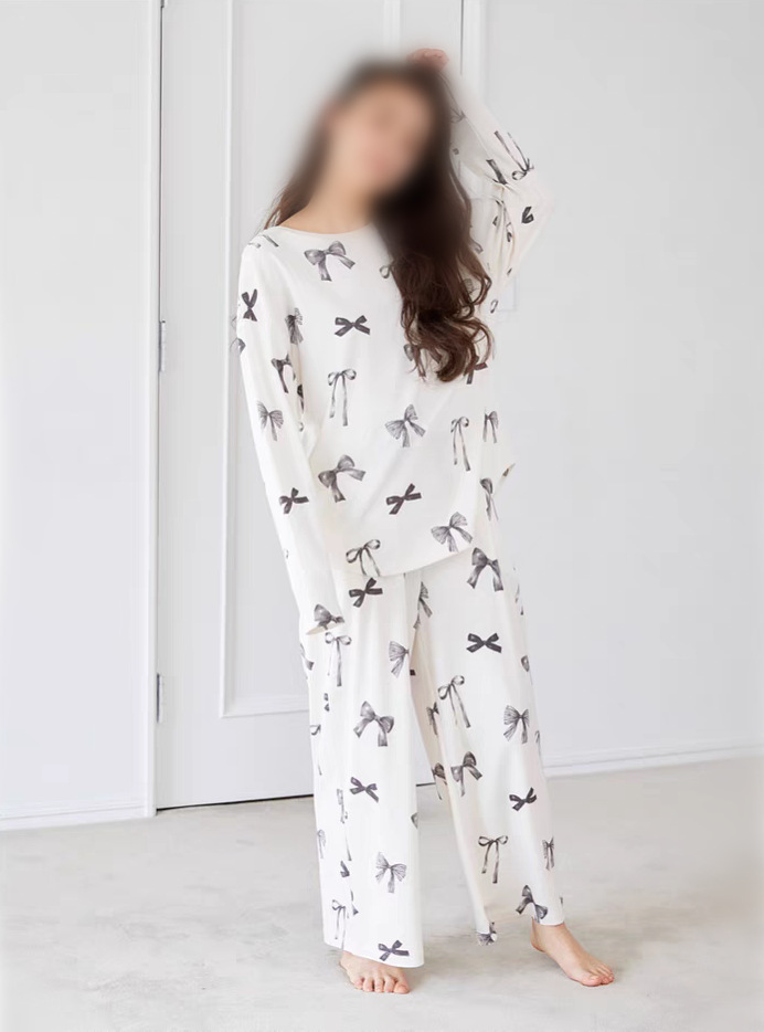 gp 무지 오리지널 부드러운 아이스크림 코튼 프린트 소프트 라운드넥 나비 긴팔 긴바지 파자마 여성 홈웨어스토어 가기