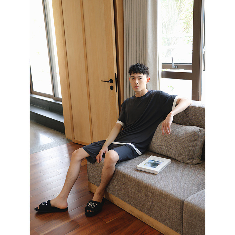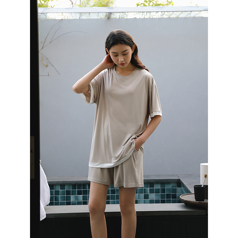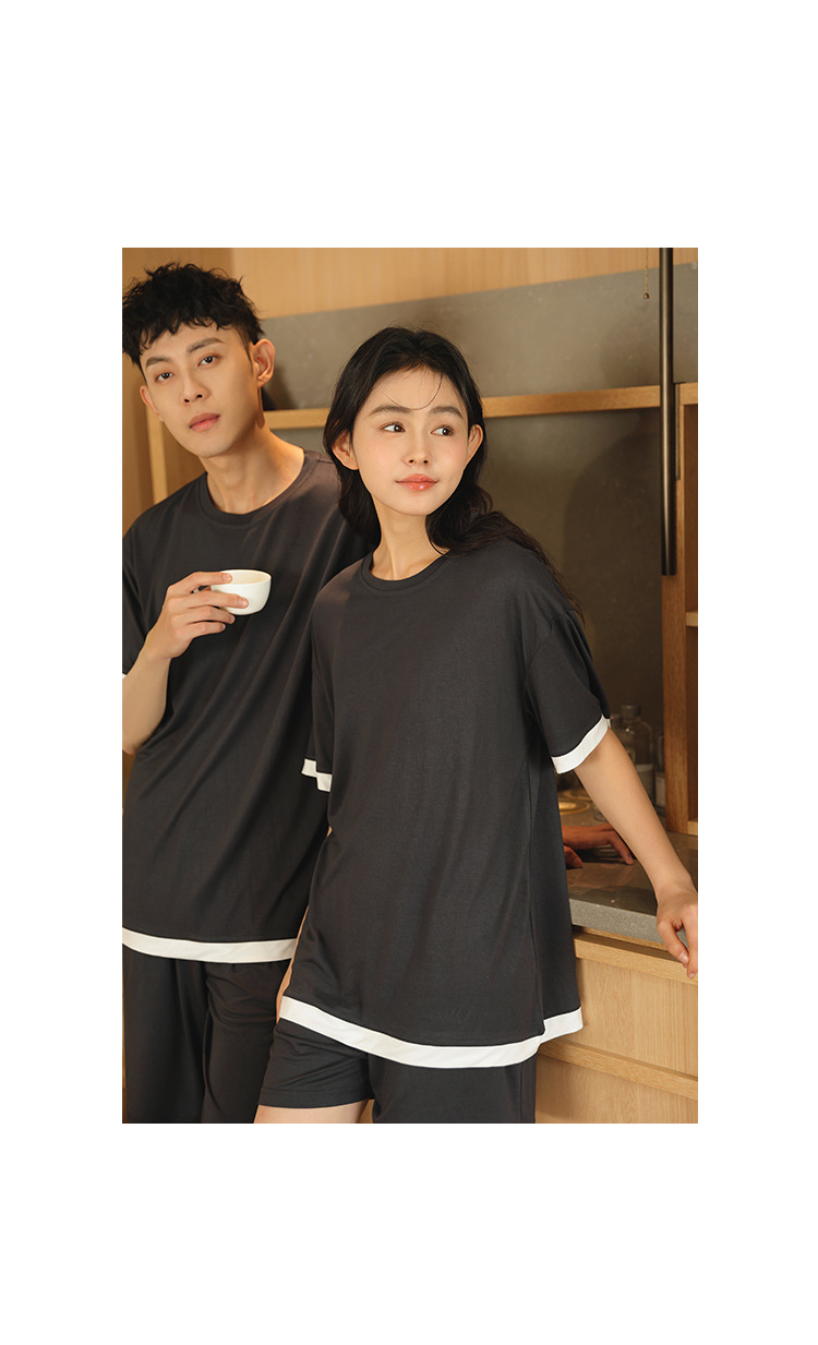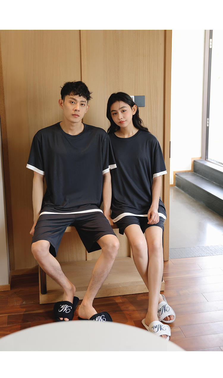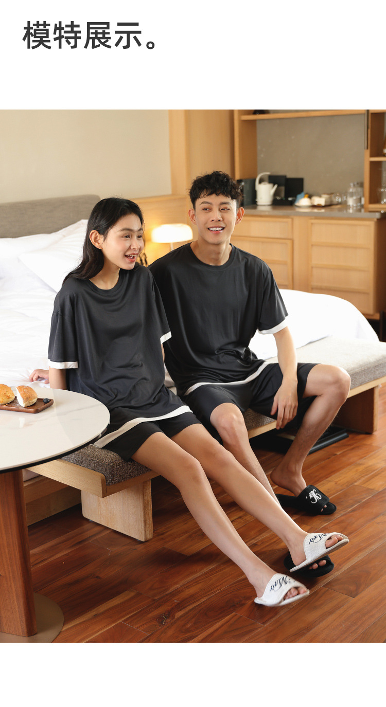 [쿨] 모달 커플 파자마 여성 여름 얇은 아이스 실크 짧은 소매 의류 남성용 캐주얼 홈 의류스토어 가기