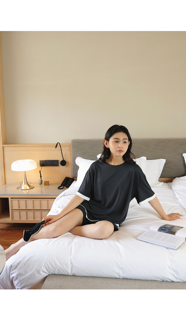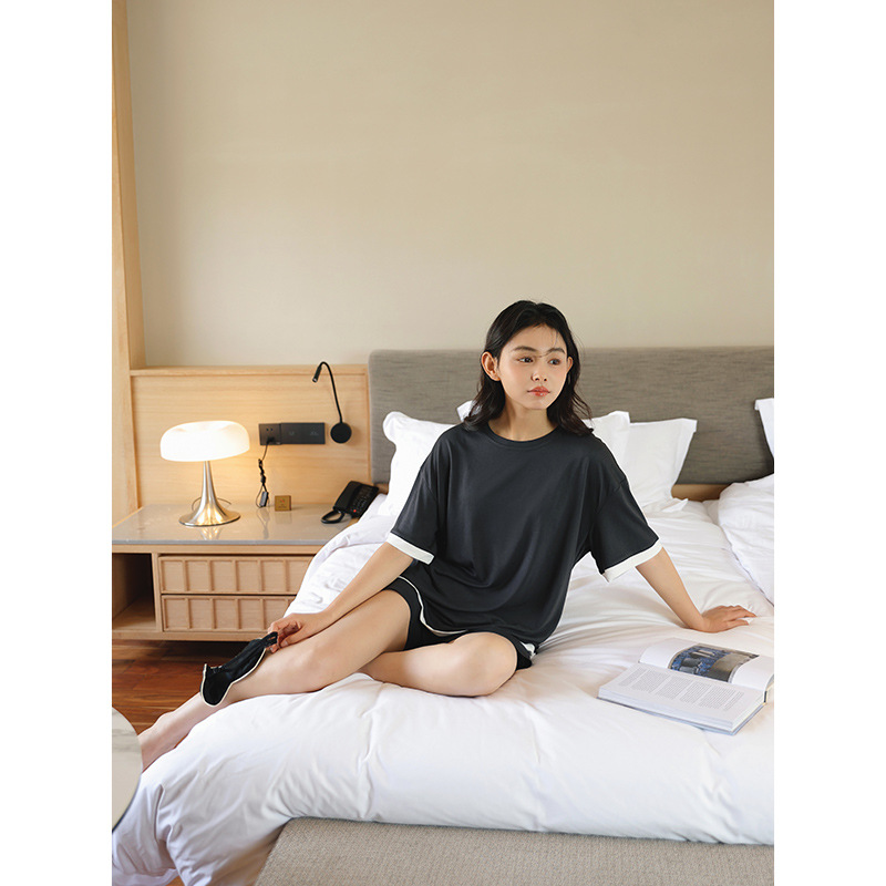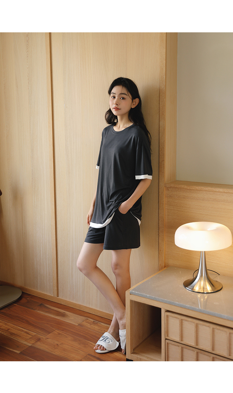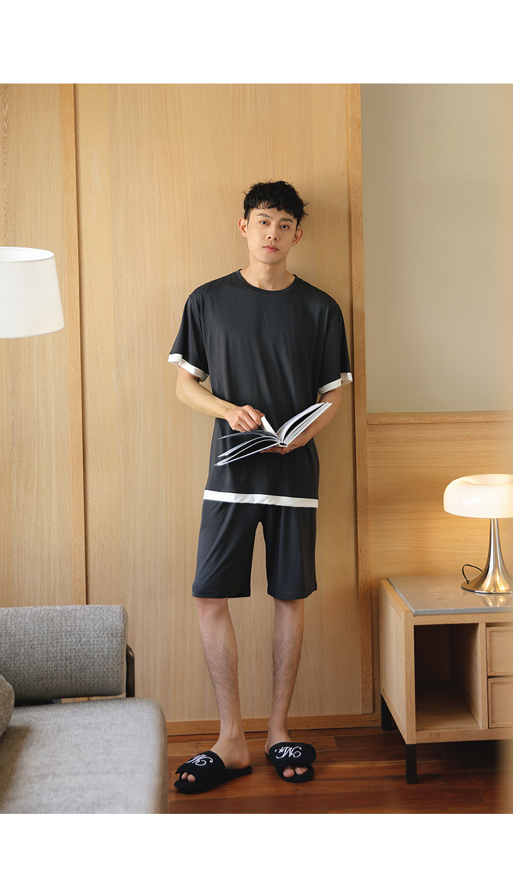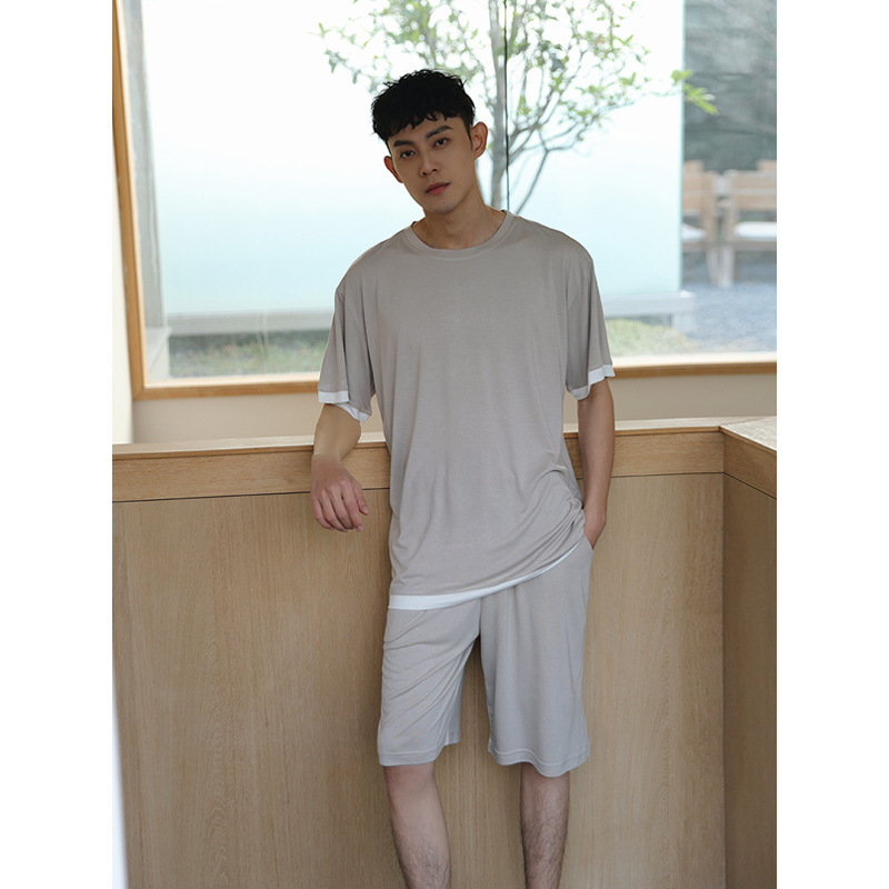 [쿨] 모달 커플 파자마 여성 여름 얇은 아이스 실크 짧은 소매 의류 남성용 캐주얼 홈 의류스토어 가기
