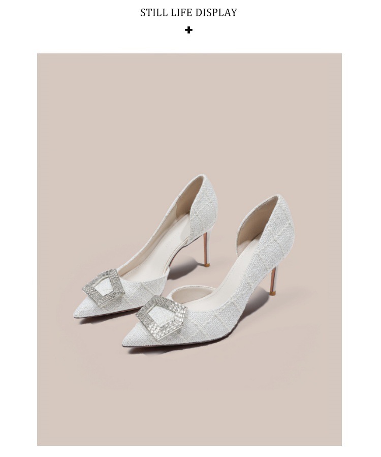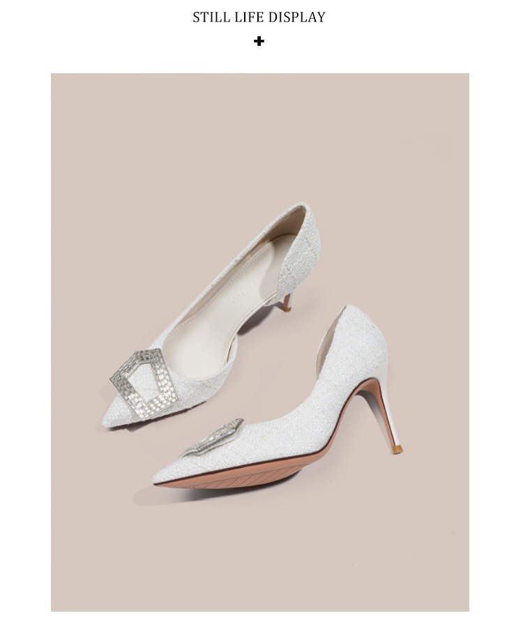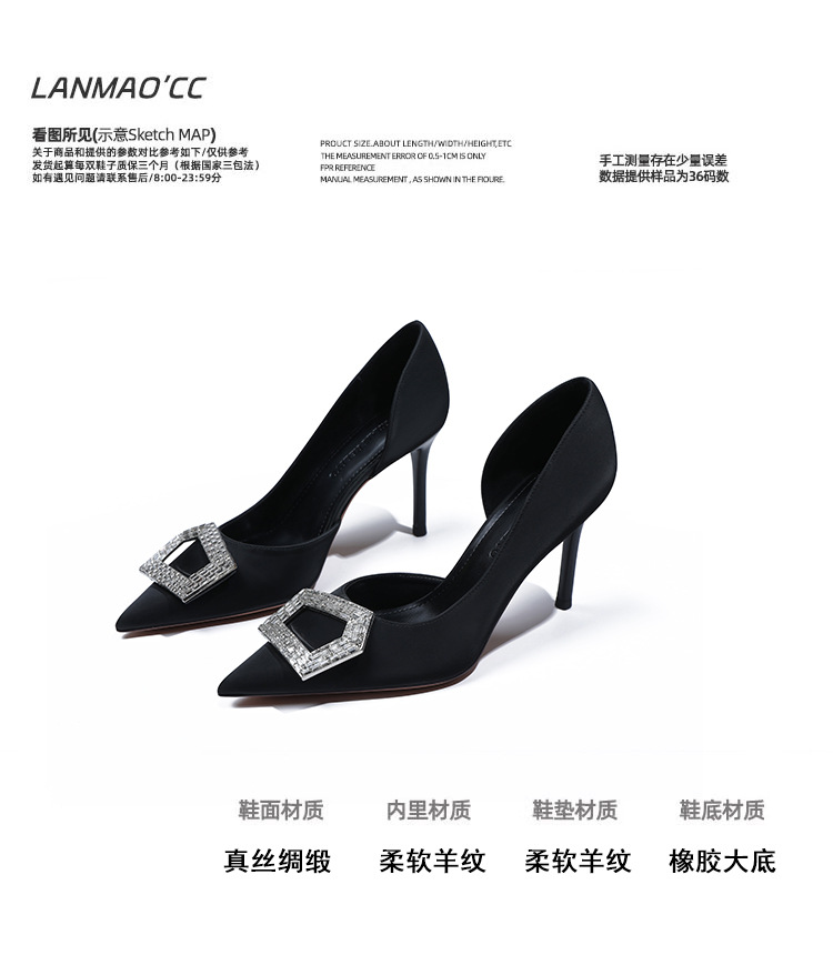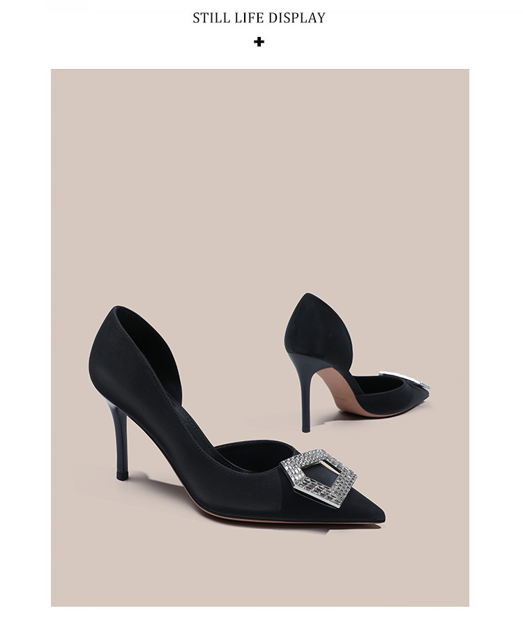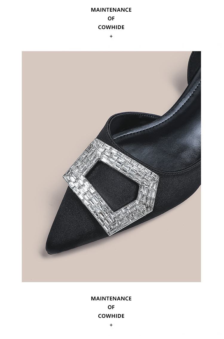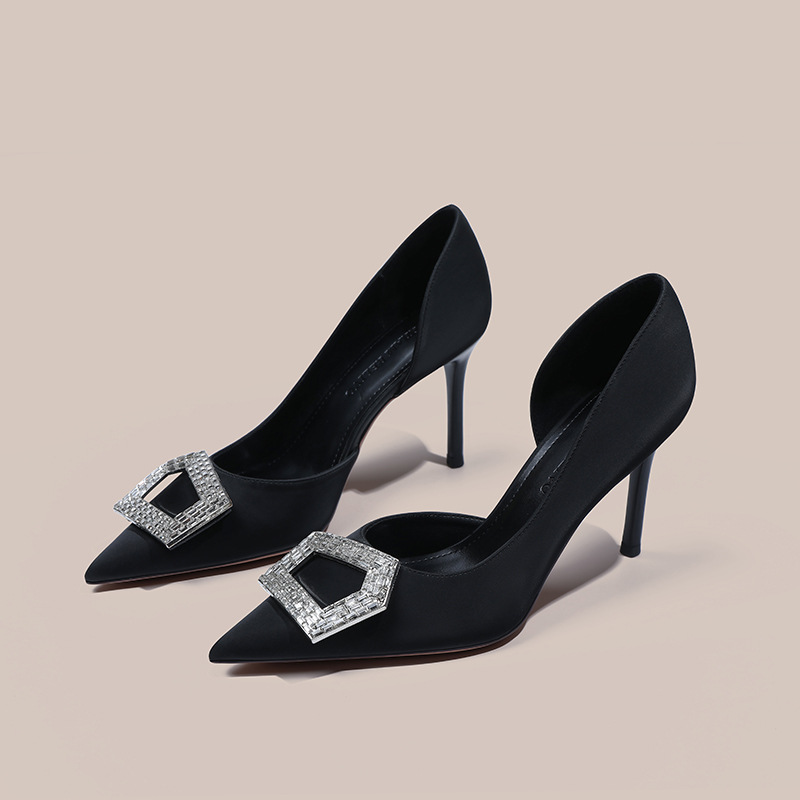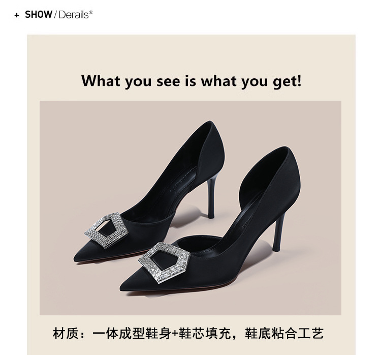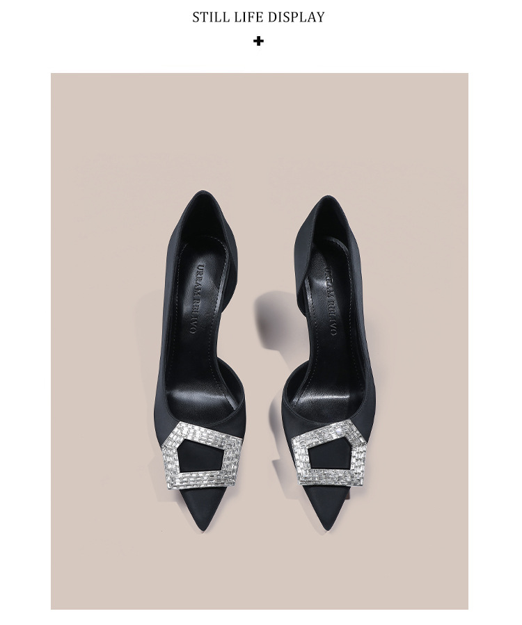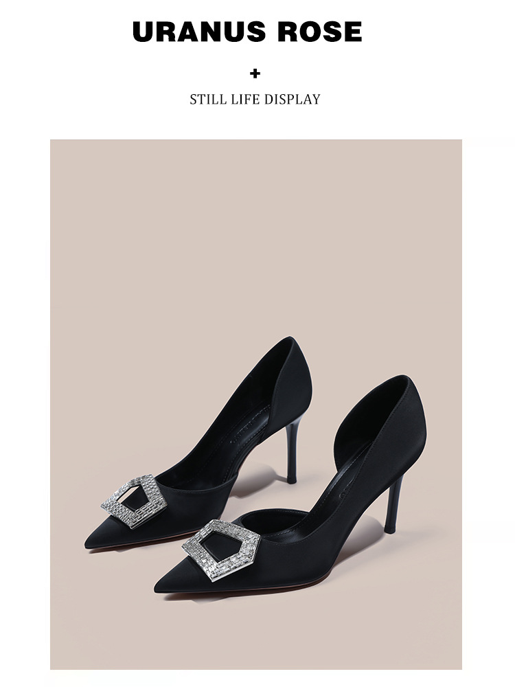 URANUS ROSE 여성용 포인팅 싱글 레이어 신발 다이아몬드 버클 2025 이른 봄 새로운 패션 올매치 우아한 하이힐스토어 가기
