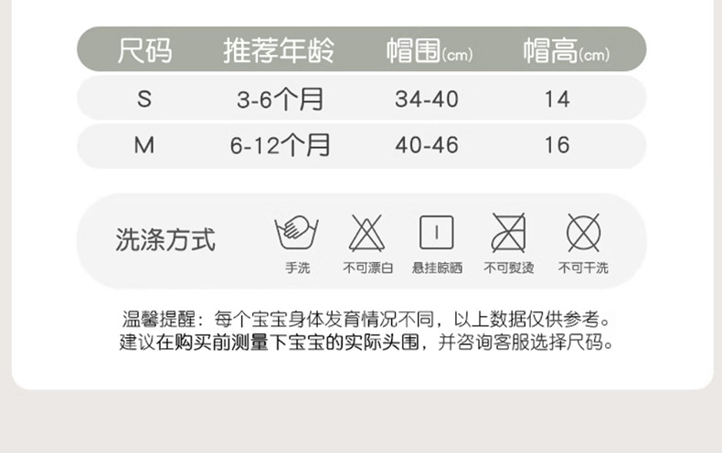 • S 사이즈 (0~6개월, 머리둘레 34~42cm)