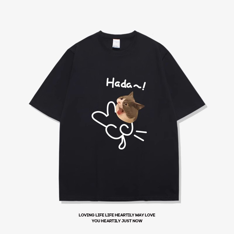 • 반팔 검정색hada 고양이 흰색