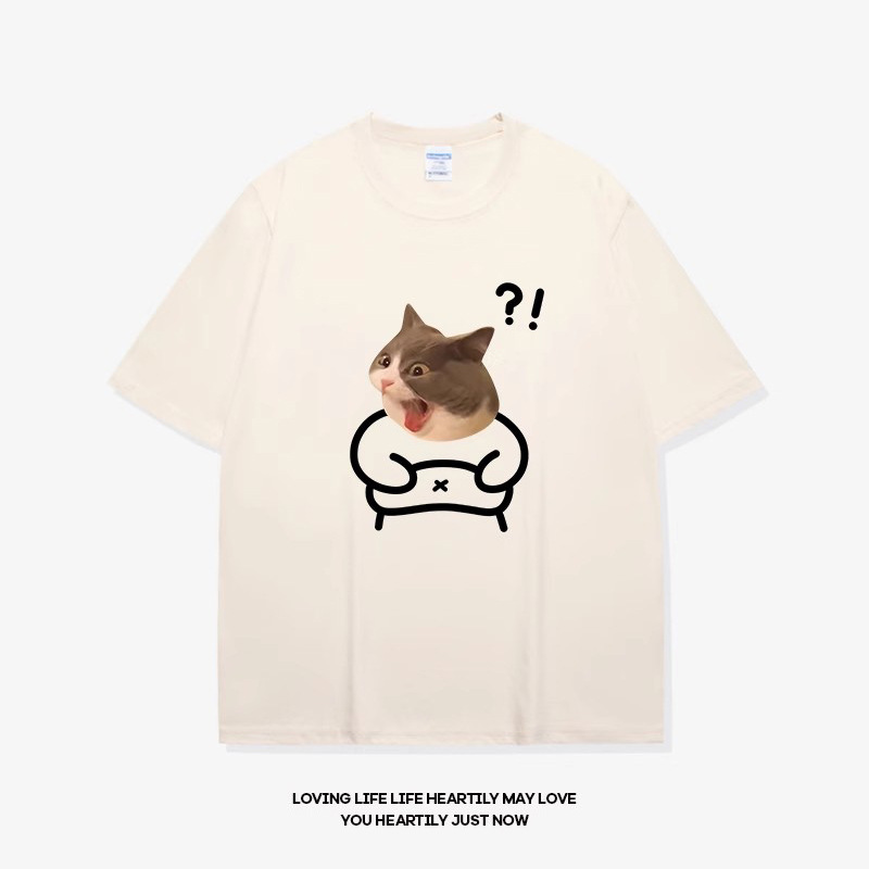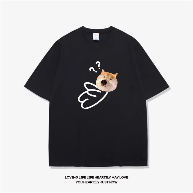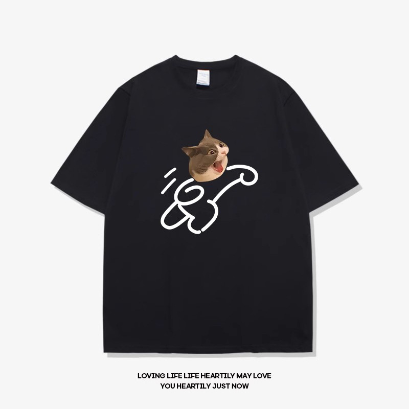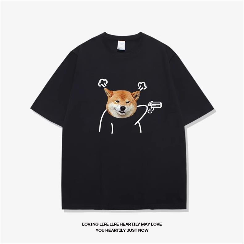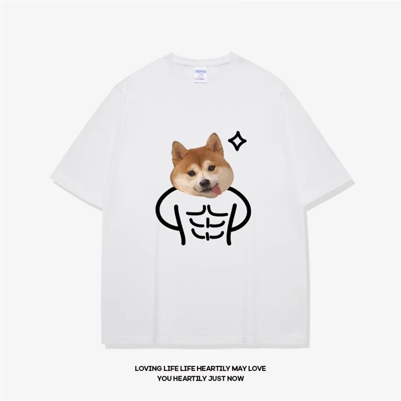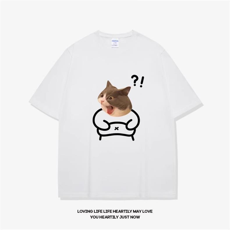 고양이와 개 창조적 인 재미있는 디자인 재미있는 커플 짧은 소매 여름 새로운 느슨한 티셔츠 남자의 반 소매