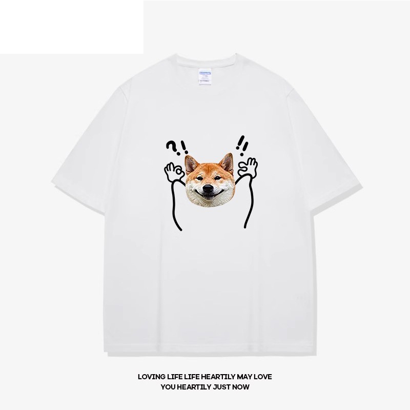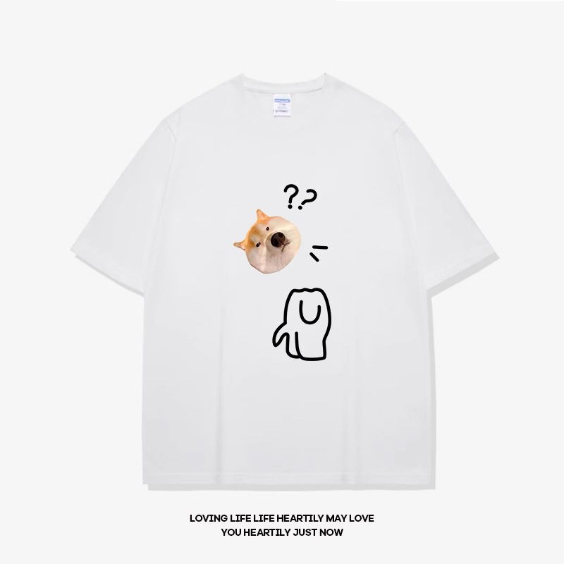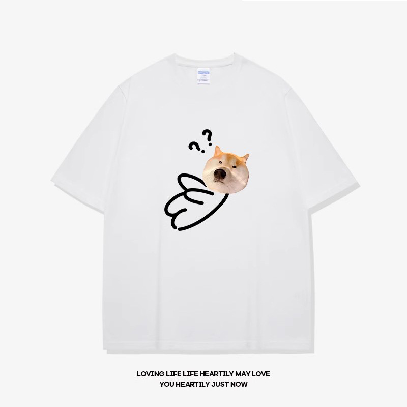 • 반팔 흰색 물음표 개 머리 검정색