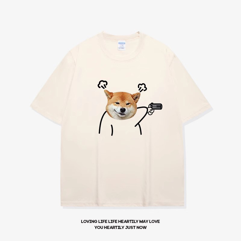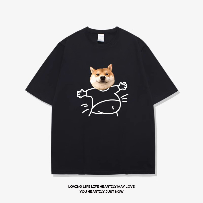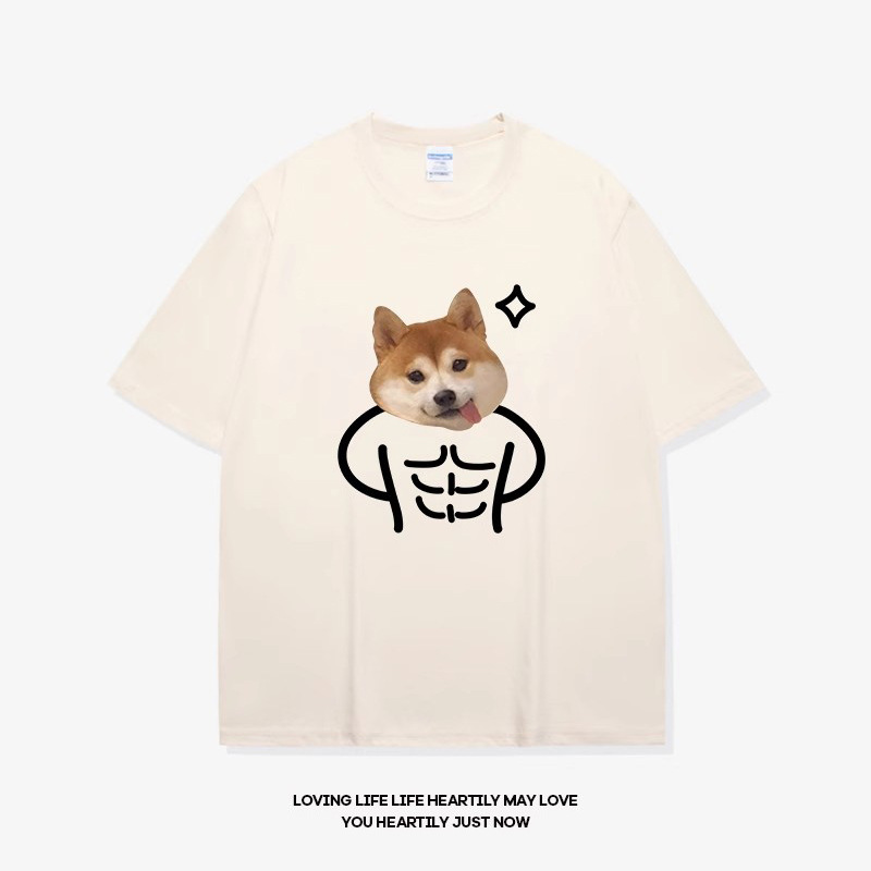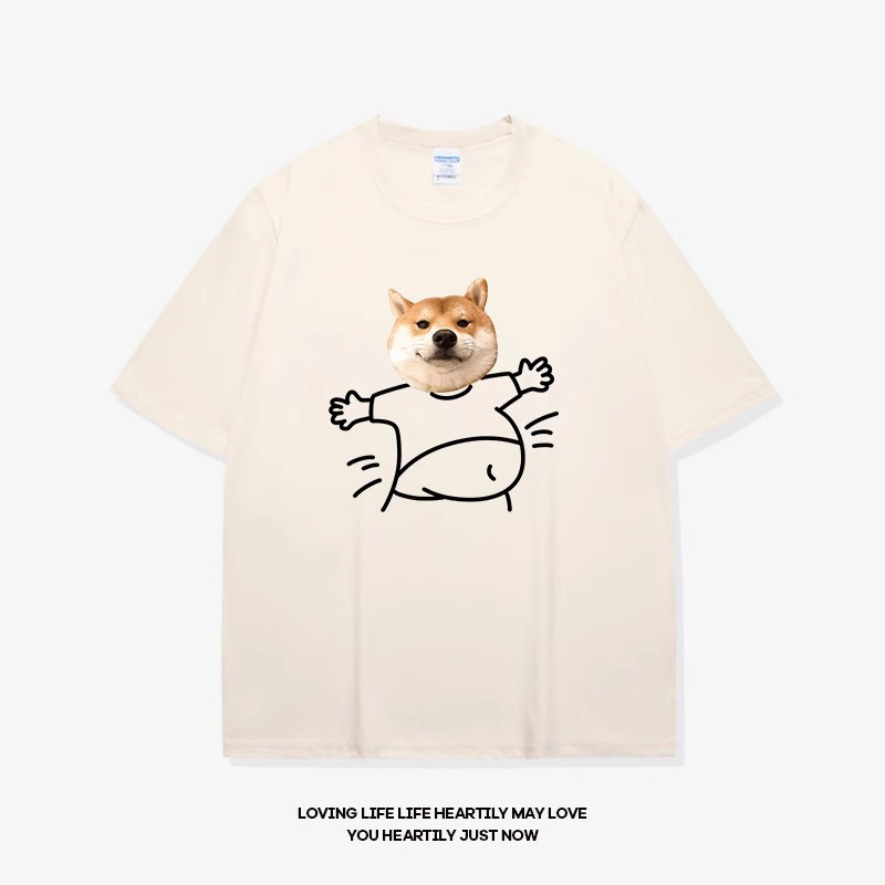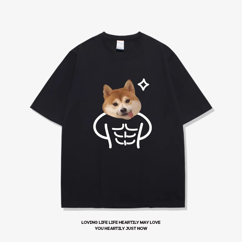 • 반소매 베이지 큰 배 시바견 블랙