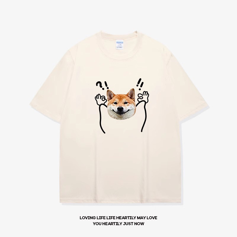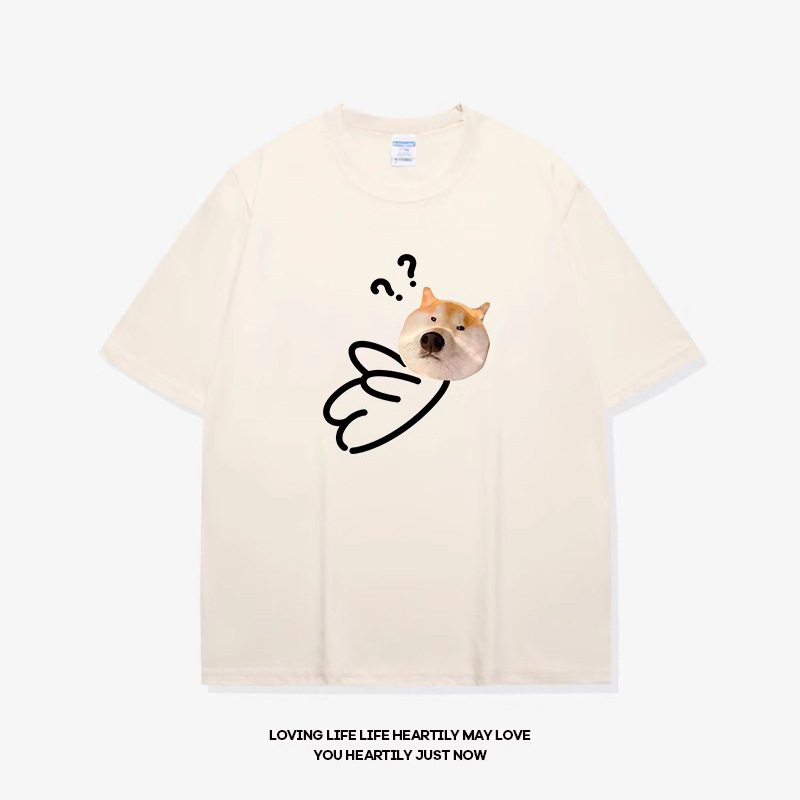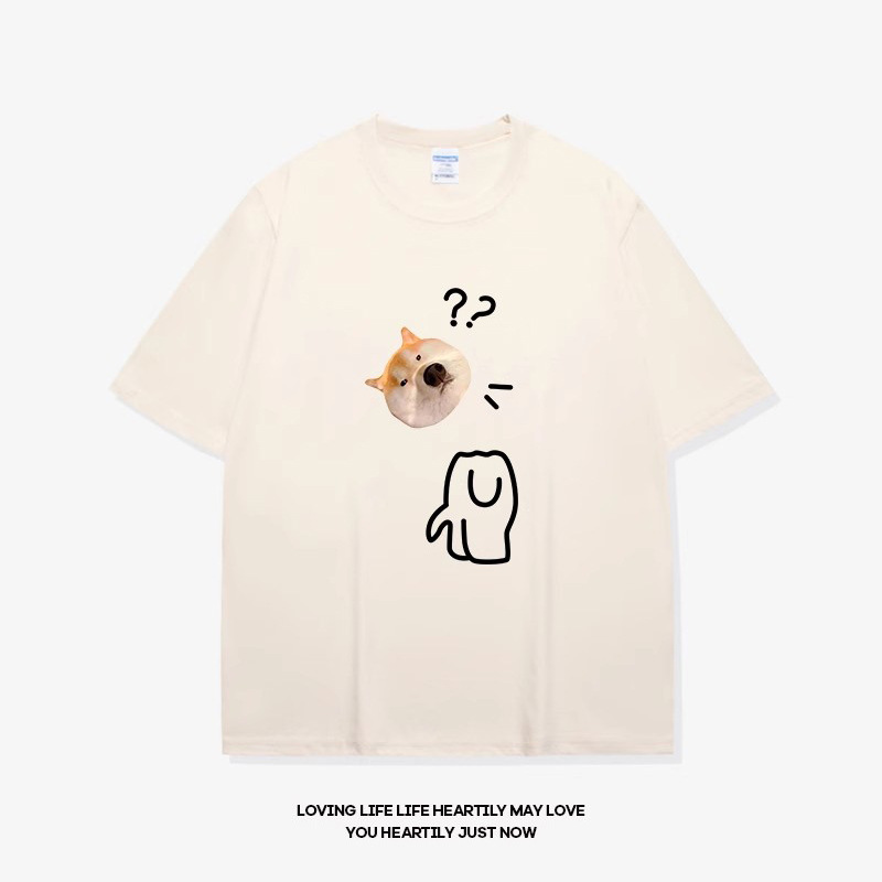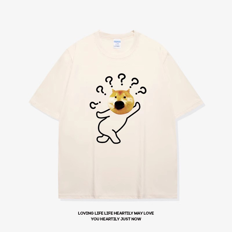 • 반팔 미색 물음표 개 머리 검정색