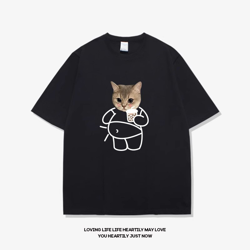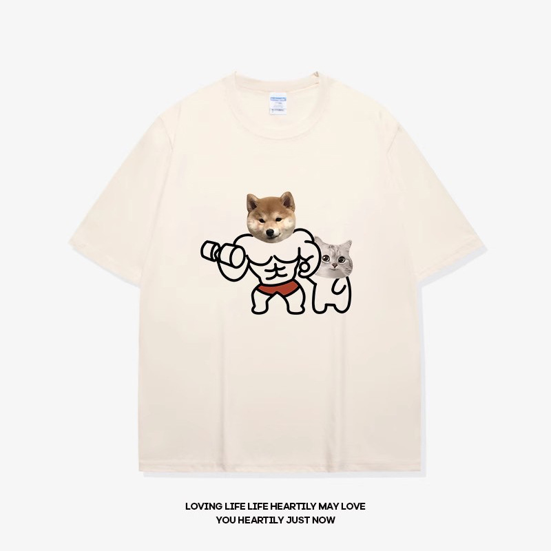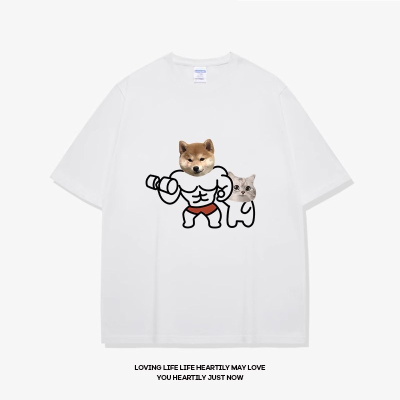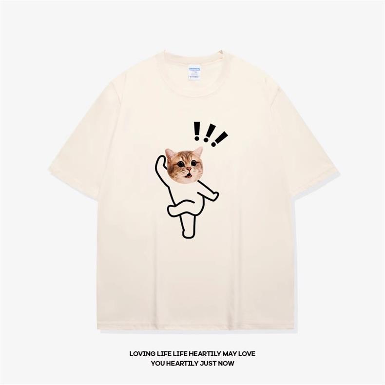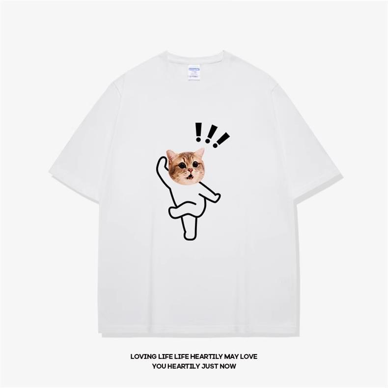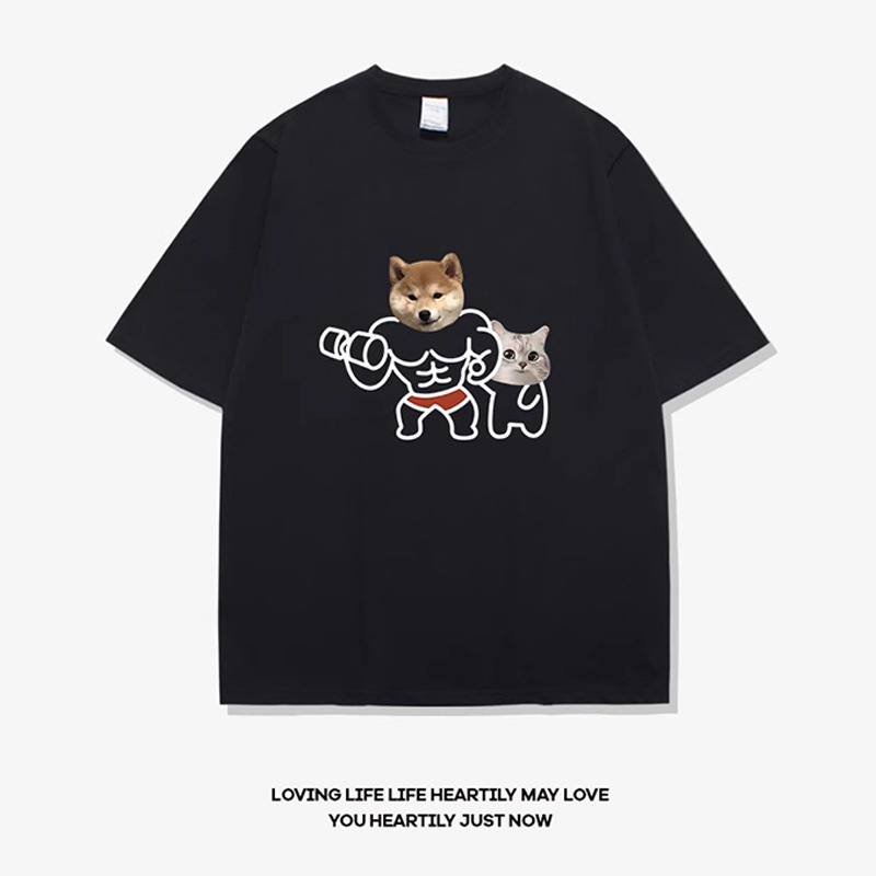 고양이와 개 창조적 인 재미있는 디자인 재미있는 커플 짧은 소매 여름 새로운 느슨한 티셔츠 남자의 반 소매스토어 가기