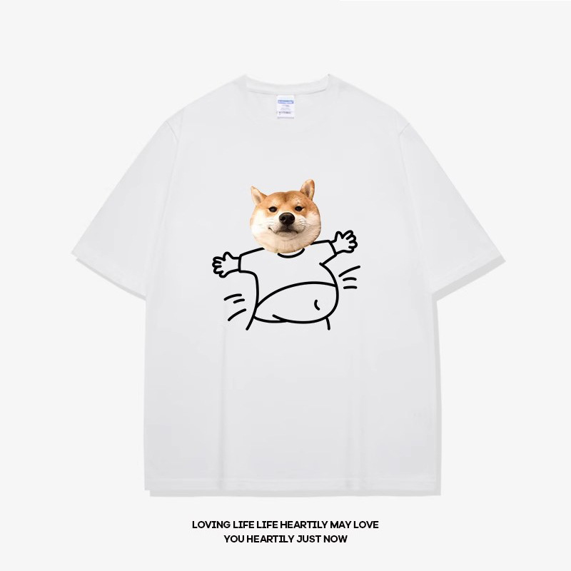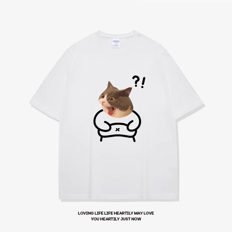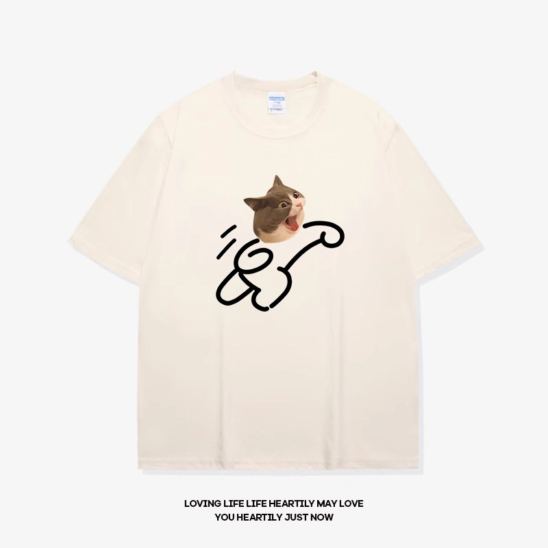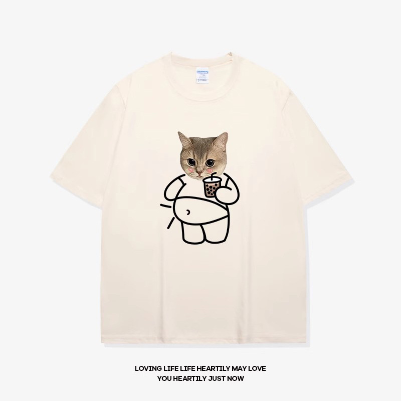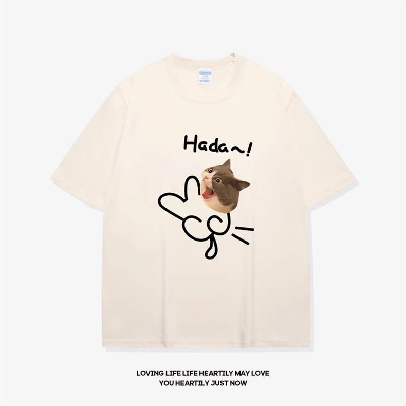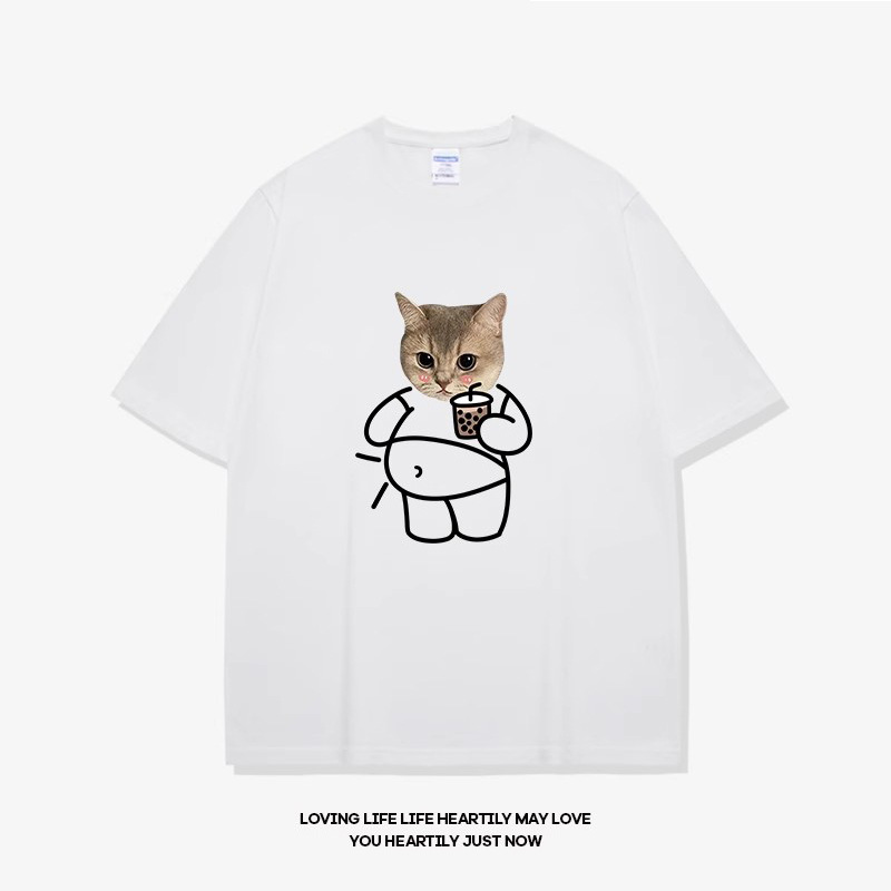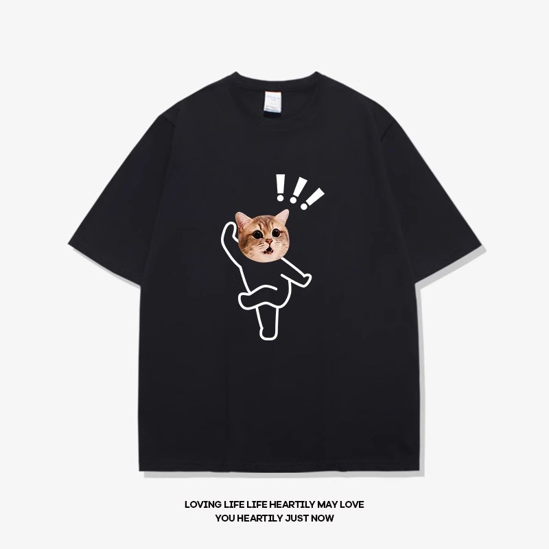 고양이와 개 창조적 인 재미있는 디자인 재미있는 커플 짧은 소매 여름 새로운 느슨한 티셔츠 남자의 반 소매스토어 가기