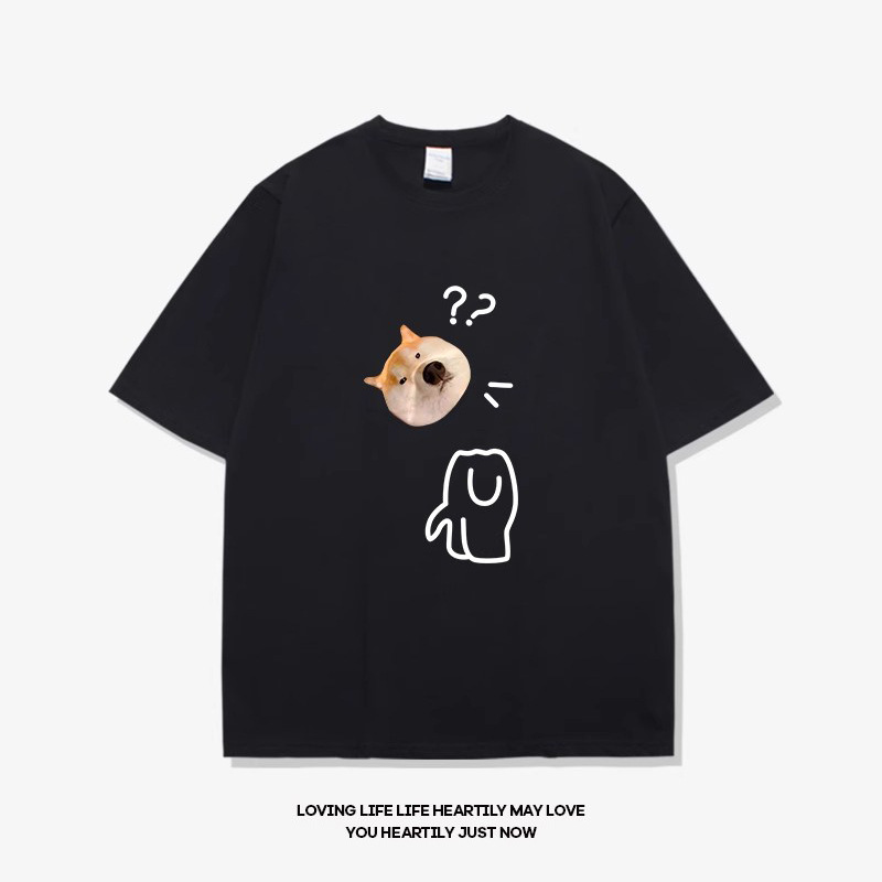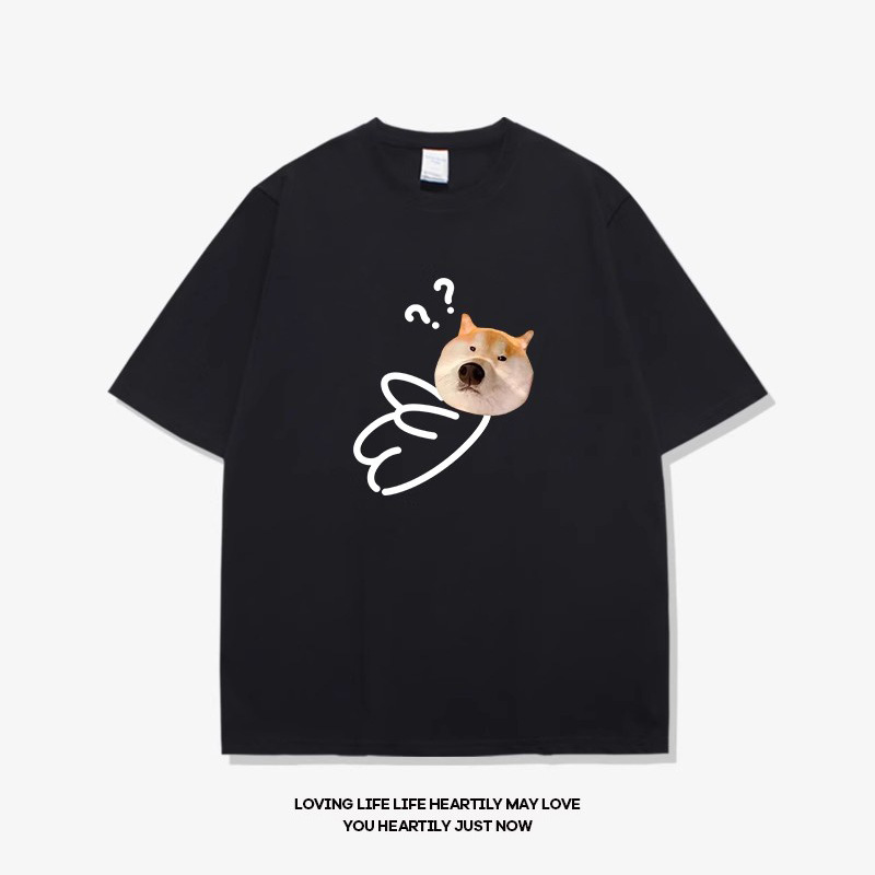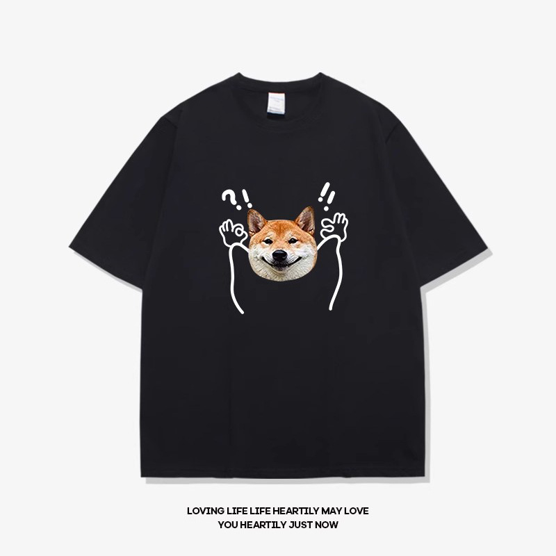 • 반팔 검정색 물음표 개 머리 흰색