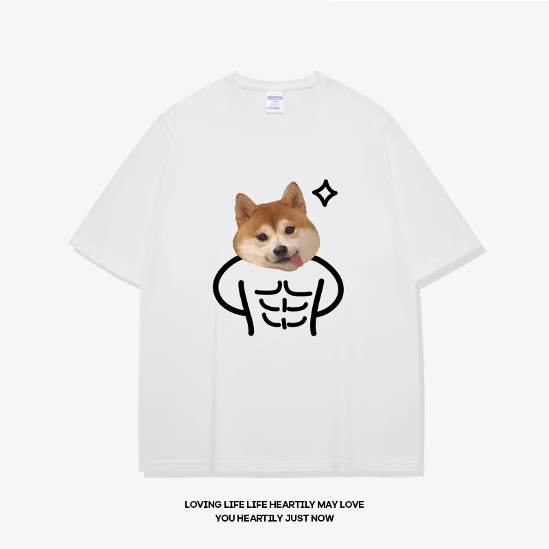 • 반팔 검정 복근 개 흰색