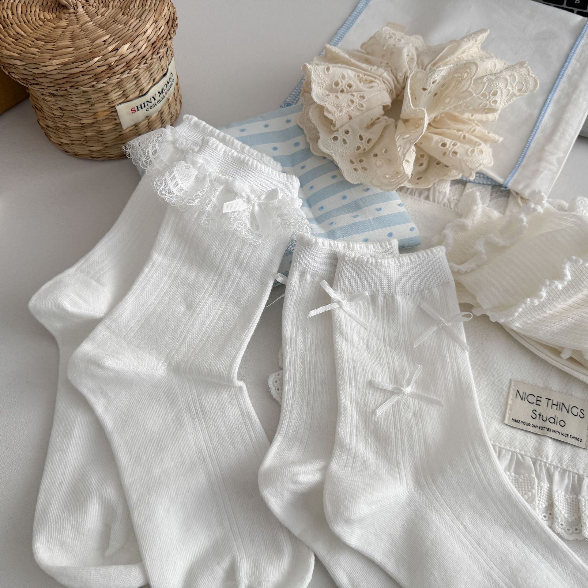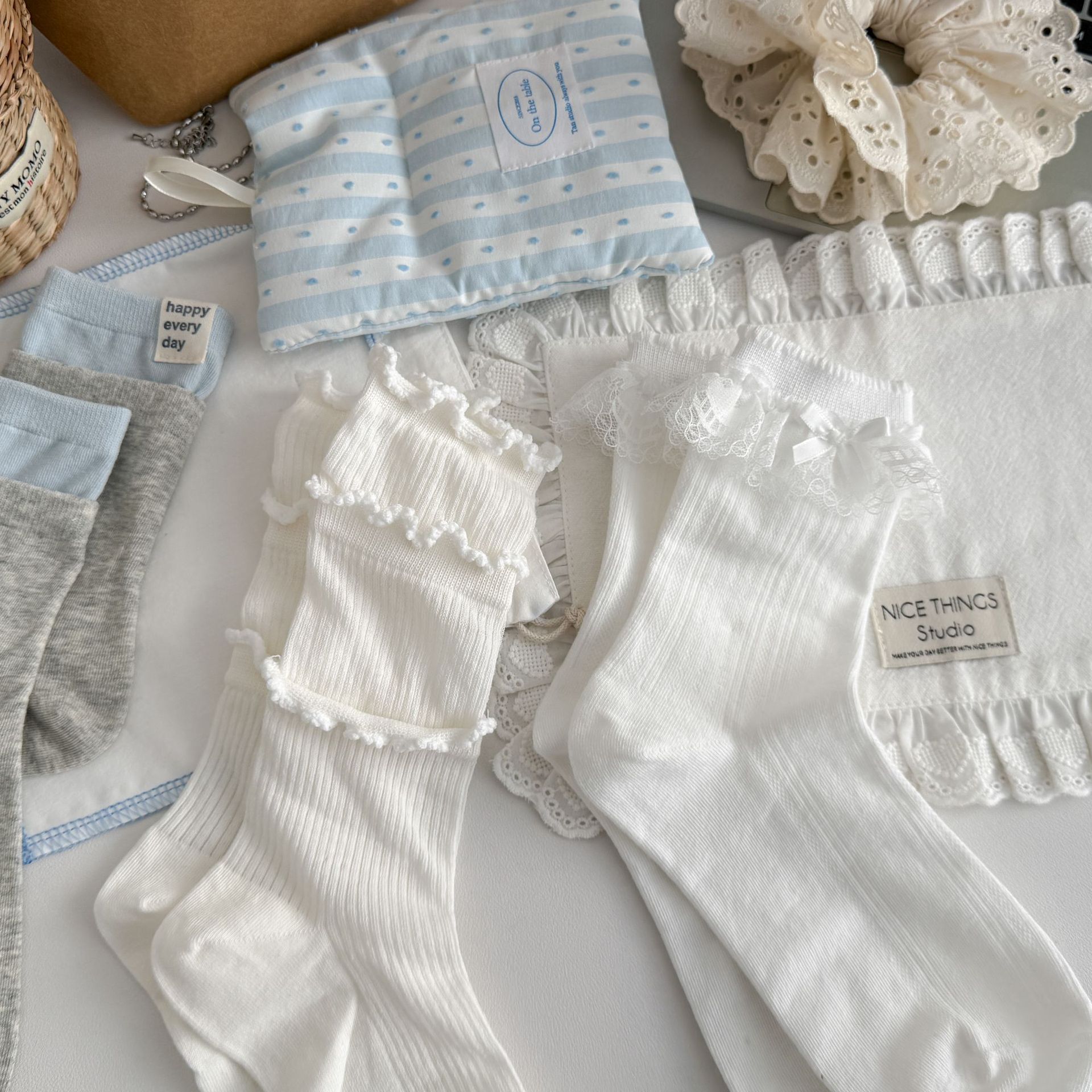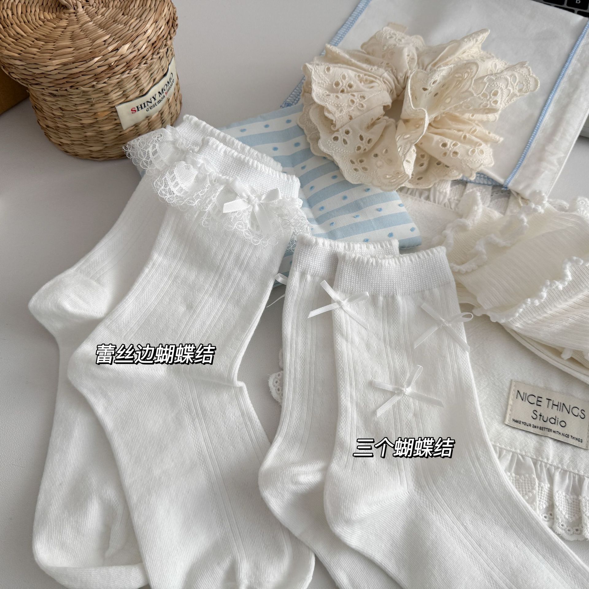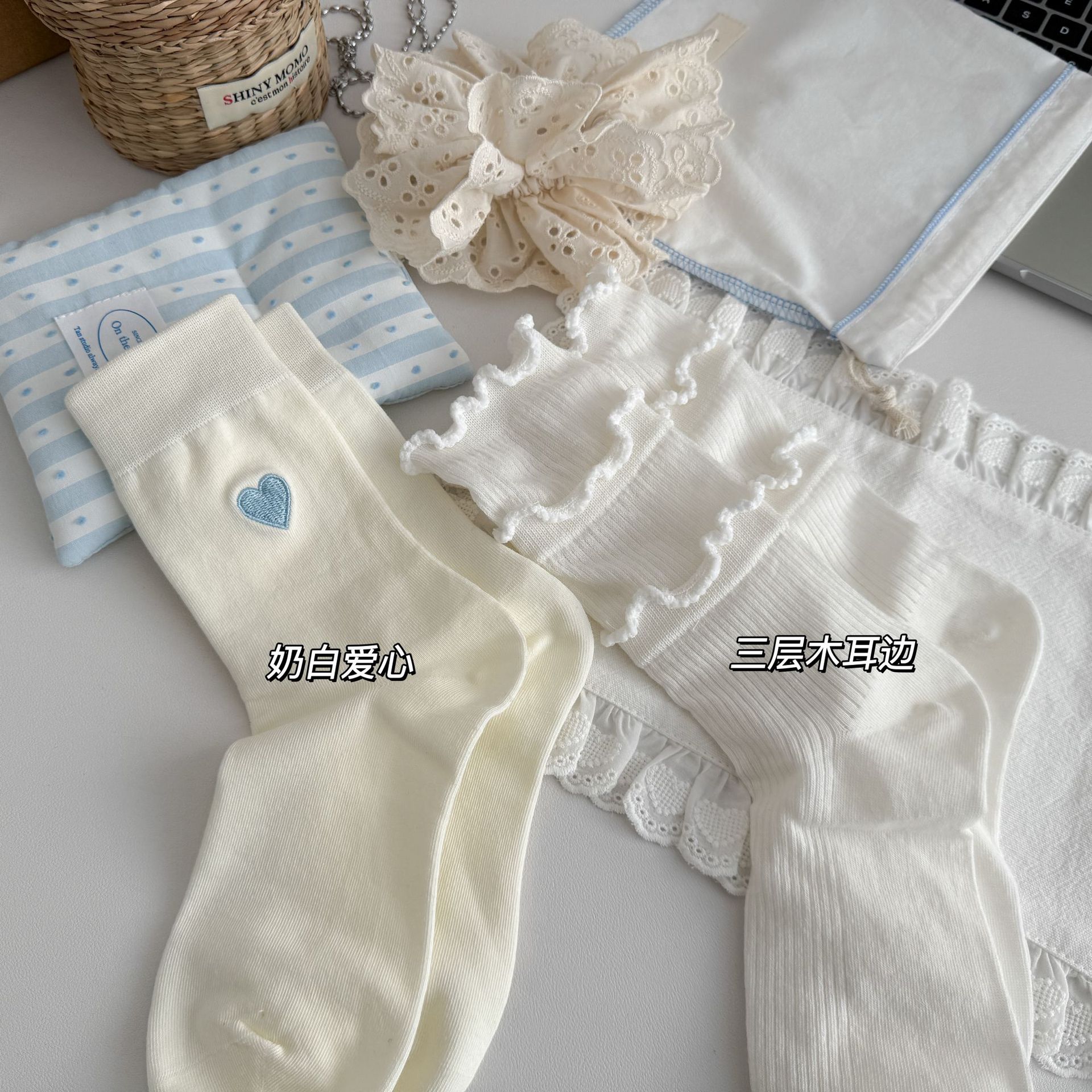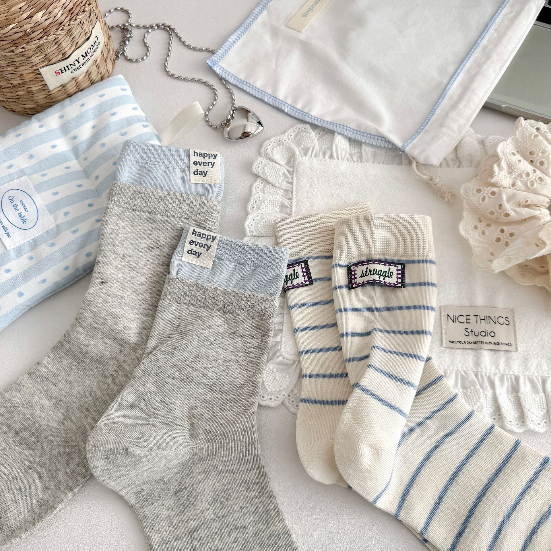 봄과 여름 새로운 한국 스타일 화이트 블루 자수 활 여름 얇은 양말 중간 양말 달콤한 통기성 여성 양말스토어 가기